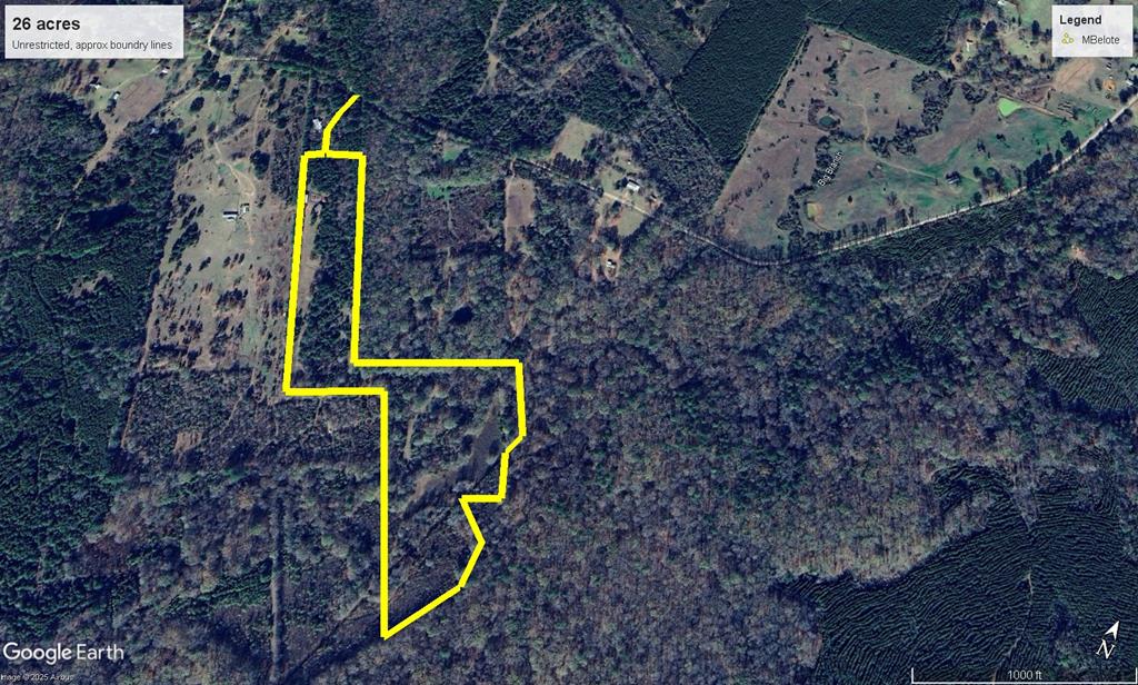 Nestled in nature's tender embrace, this 26+/-acre haven unfolds like a living sonnet. Rolling pastures, lush and sun-dappled, invite dreams of grazing herds or wildflower-strewn picnics. Among them, mixed timber weaves a woodland tapestry: ancient oaks with twisted limbs, shagbark hickory, and steadfast pines filtering sunlight into golden mosaics on fern-laced floors. Wildlife poets roam freely—deer gliding at dawn, turkeys parading meadows, foxes slipping slyly through shadows, owls serenading starry nights. Songbirds lace the air with melody, a symphony of untamed grace. A cozy 3-bed, 2-bath mobile home offers sunlit rooms and a covered front and rear porch for dawn brews. An RV cover awaits, hookups for utilities are in place and its own septic-a mobile sanctuary in the wild. Ample parking! 2 deer stands and feeders on site. Here, time dissolves into peace, rooted in eternal beauty! Utter privacy reigns; no eyes intrude, only leaves rustling and streams murmuring.