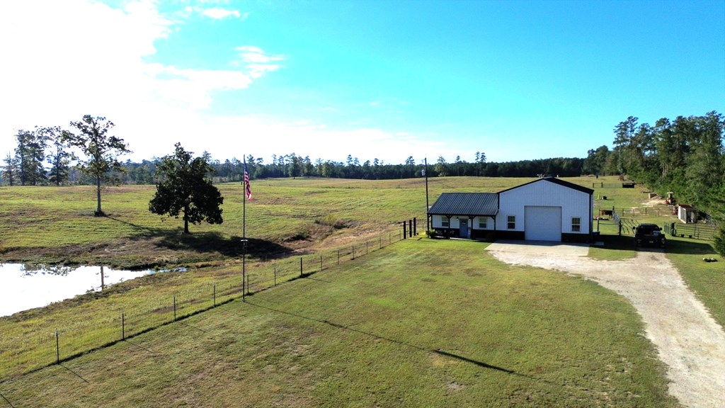 Don't miss this Beautiful Homestead in Holly Springs! Like-new 1BR/1BA barndominium with an attached shop on approx. 34 acres of fully fenced, livestock-ready pastures. Gorgeous rolling hills, a peaceful pond, and wide-open sunrises/sunsets set the scene for quiet country living just minutes from town. Property is unrestricted and borders timberland for privacy and room to roam. The barndo offers open living/kitchen, easy-care finishes, and great storage; the connected shop adds parking, workspace, and equipment/ATV bays. A newer hay/equipment barn sits nearby, and a prepared house pad is in place for future expansion—build your main home and keep the barndo as a guest house, studio, or workshop. Ideal for cattle/horses, hobby farm, or a weekend retreat. Come enjoy the views, the space, and the freedom to use it your way.