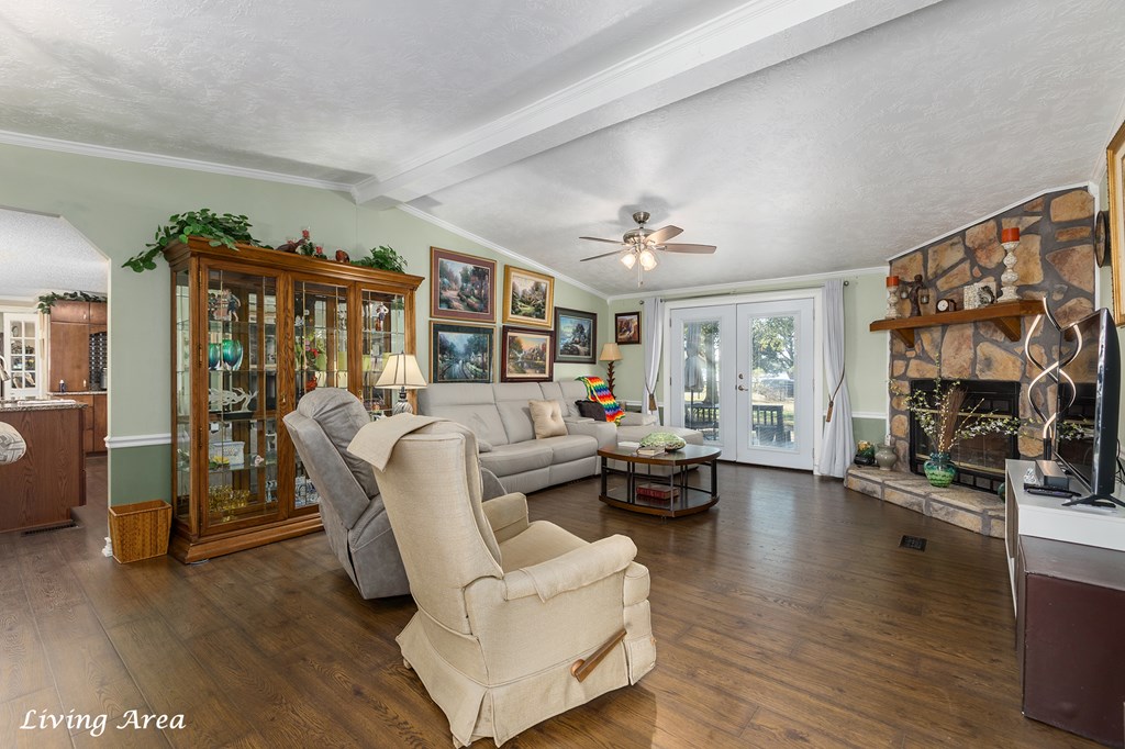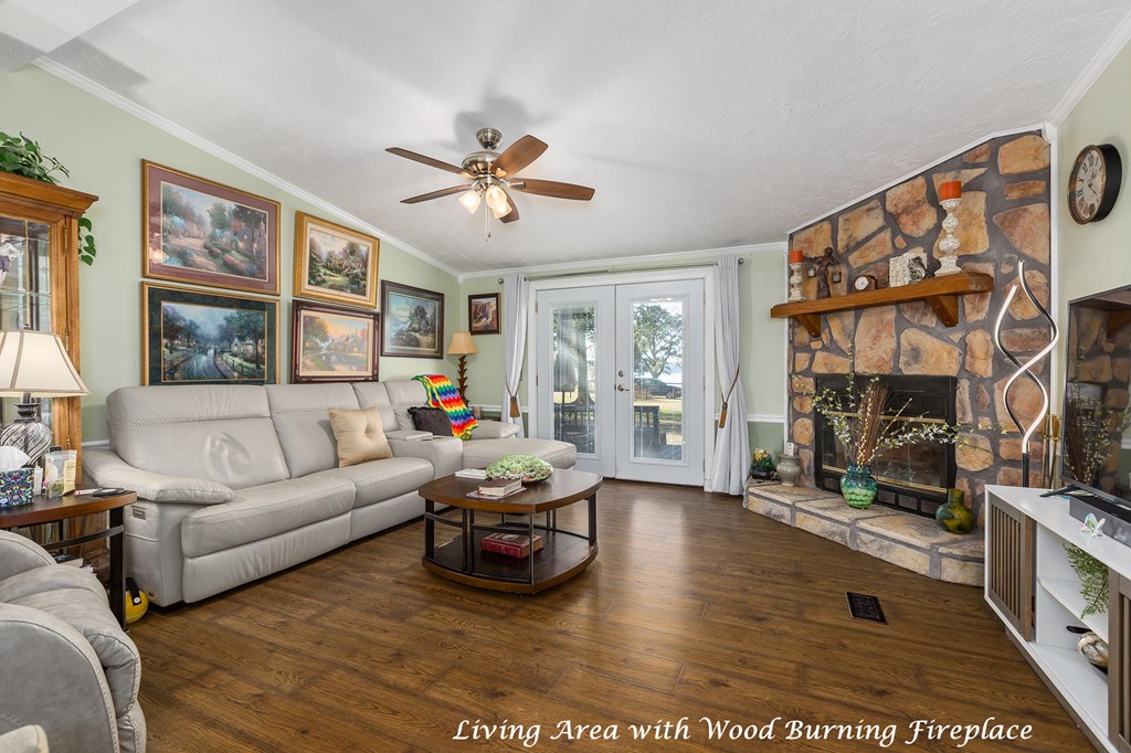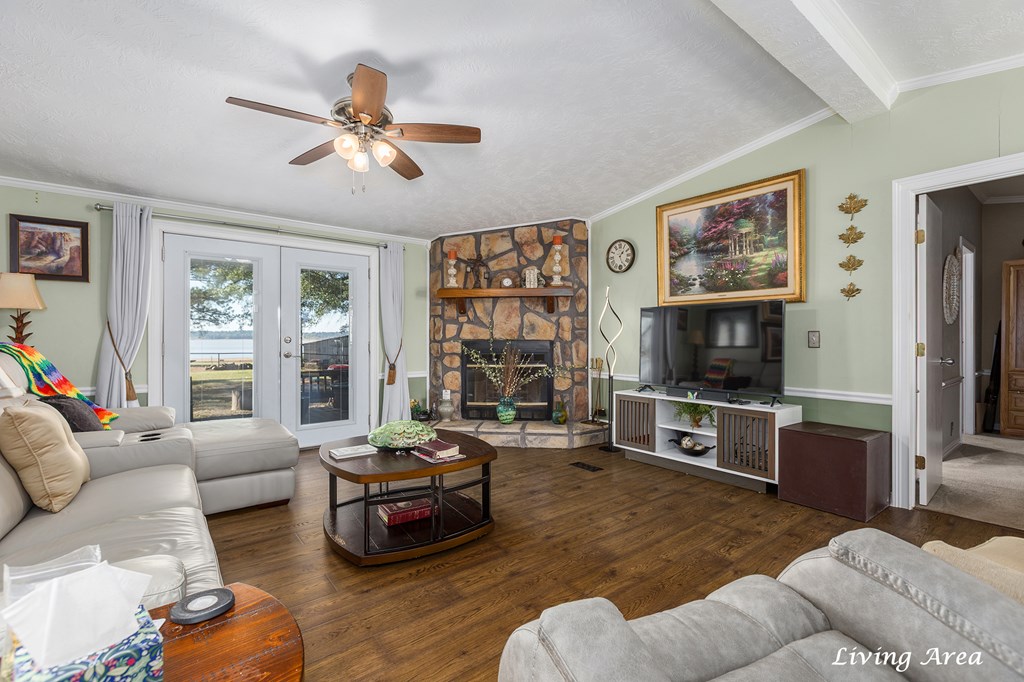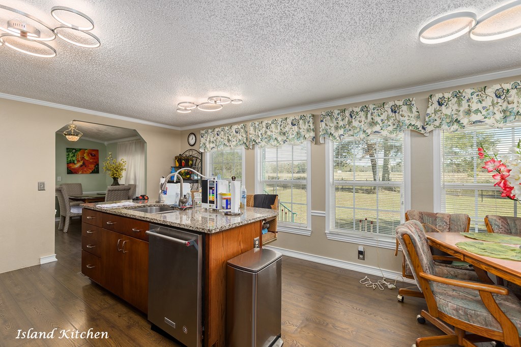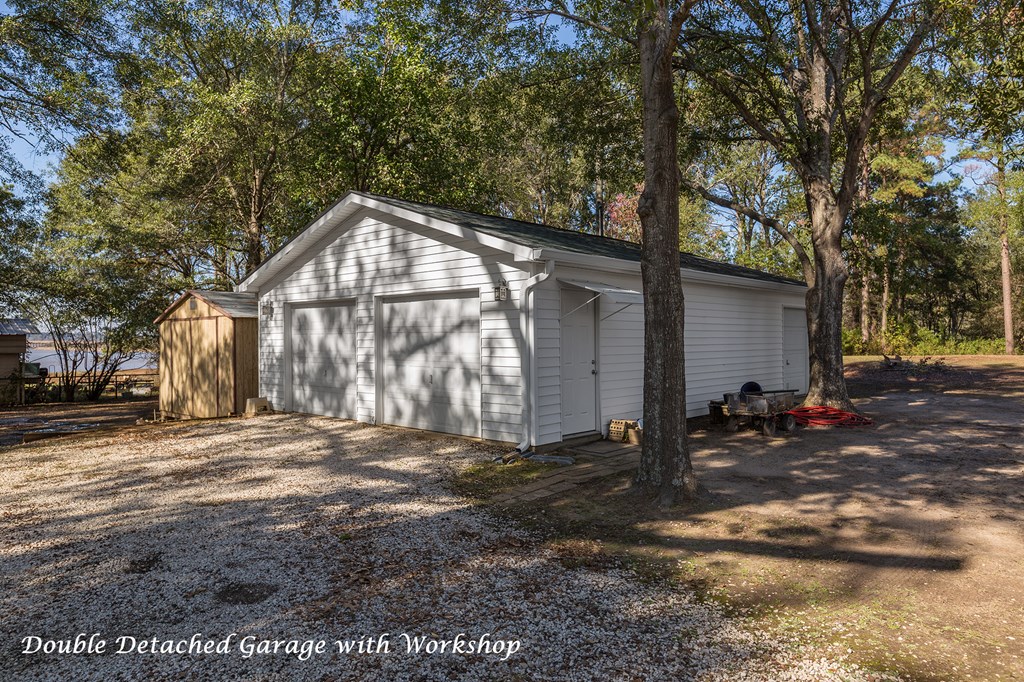 Welcome to peaceful lake living in Etoile with a Beautiful Water View of Lake Sam Rayburn! This well-maintained 3 Bedroom, 2 Bath home sits high on almost 2 acres of land fully fenced with a high quality metal fence, an electric gated entrance, and a great view of the water from the back deck. The home has been thoughtfully updated over the years, including a newer roof, new HVAC, new windows, and a fully renovated island kitchen with granite counters, custom cabinets, and newer appliances. The primary bathroom has been fully updated and all new modern lighting has been added throughout. The floor plan includes a large pantry, generous storage spaces throughout, walk-in closets, and a cozy wood-burning fireplace in the spacious living area. Outside, you'll love the large covered front porch and spacious deck overlooking the lake. The property also includes a detached double garage with a workshop on slab, a full house natural gas Generac generator, and a full water filtration system.