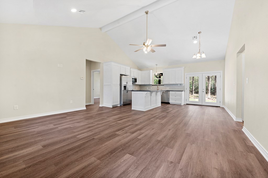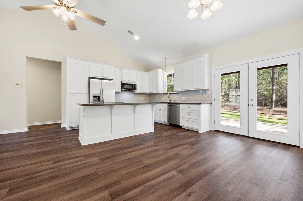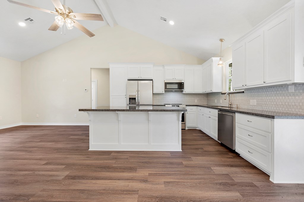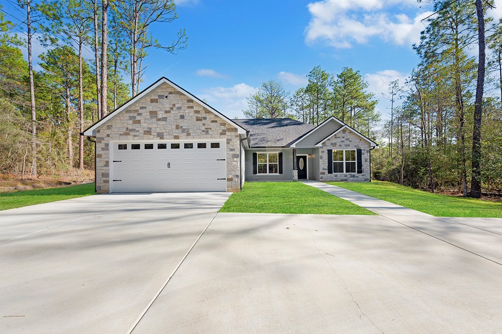 Welcome to your brand-new dream home featuring an open-concept design with a split floor plan for added privacy. This 3bd, 2ba gem boasts vaulted ceilings and a spacious layout perfect for both everyday living and entertaining. The luxurious primary suite includes a generous walk-in closet and a spa-like bathroom complete with a custom tile shower and soaking tub. The kitchen and living areas flow seamlessly together, highlighted by modern finishes and plenty of natural light. The kitchen has new stainless steel appliances and a large island. Outside, enjoy a large covered back porch overlooking a spacious yard—ideal for relaxing or entertaining guests. The oversized garage offers room for both a vehicle and a boat, with a convenient circle drive for easy parking and maneuvering. Located just minutes from beautiful Lake Sam Rayburn and Rayburn Country Club, you'll have access to fine dining, golf, and a host of resort-style amenities. This is more than a home—it's a lifestyle.
