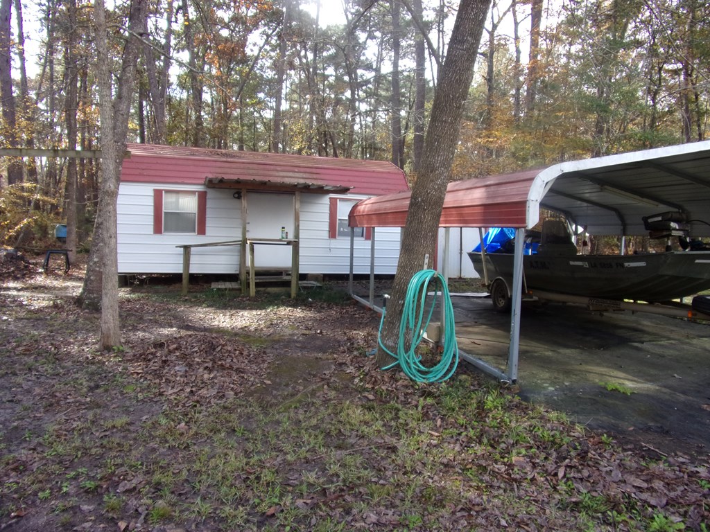 1981 Sundance Mobile Home right at the Six Mile Bridge (one of the hottest and most popular fishing areas of Toledo Bend Lake). Sitting on two nice lots, backing up to the National Forest, convenient to all amenities, this 2 bedroom, 1.5 bath home is clean, well kept, completely furnished, large storage house out back in great condition with storage on and above the flooring, double car carport, two boat ramps - 1 for residents and the other for public, overlaid roof for extra protection, central elec. air; central heat propane - spacious screened porch on front, handicap accessible ramp to inside, lawn mower stays, freezer in shed stays, 18' Duracraft Boat w/90 HP Mercury Optimax and all aluminum trailer for sell. Price Reduced. Motivated Seller!