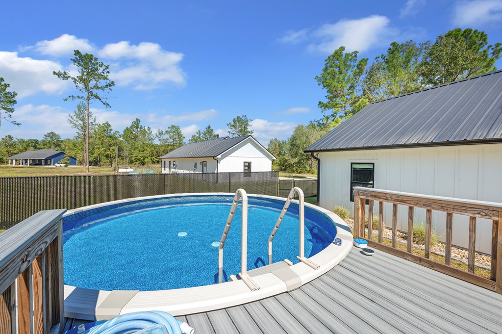 Where luxury meets country living! Built in 2023 and perfectly dialed-in, this custom home sits on 1.11 acres with every upgrade you could dream of! Lush landscaping, fenced front and back yard, above-ground pool with a trex deck, and a brand-new 30x20 shop with a 12-ft roll-up door that's ready for your toys, tools, or weekend projects. Inside, you'll find 3 beds, 2 baths, and an open-concept layout with soaring vaulted ceilings, an electric fireplace, and a kitchen made for gatherings - granite, huge island, stainless appliances, and a wine fridge. The primary suite feels like a retreat with a walk-in shower, soaker tub, double vanities, and AMPLE closet space. Step outside and unwind by the custom-built stone fire pit lounge or relax near the tranquil stone waterfall feature that brings peaceful charm to the landscaped yard. Kick back on the covered porch, dive into the pool, or work from your dream shop. Tucked outside city limits but close enough to everything that matters.