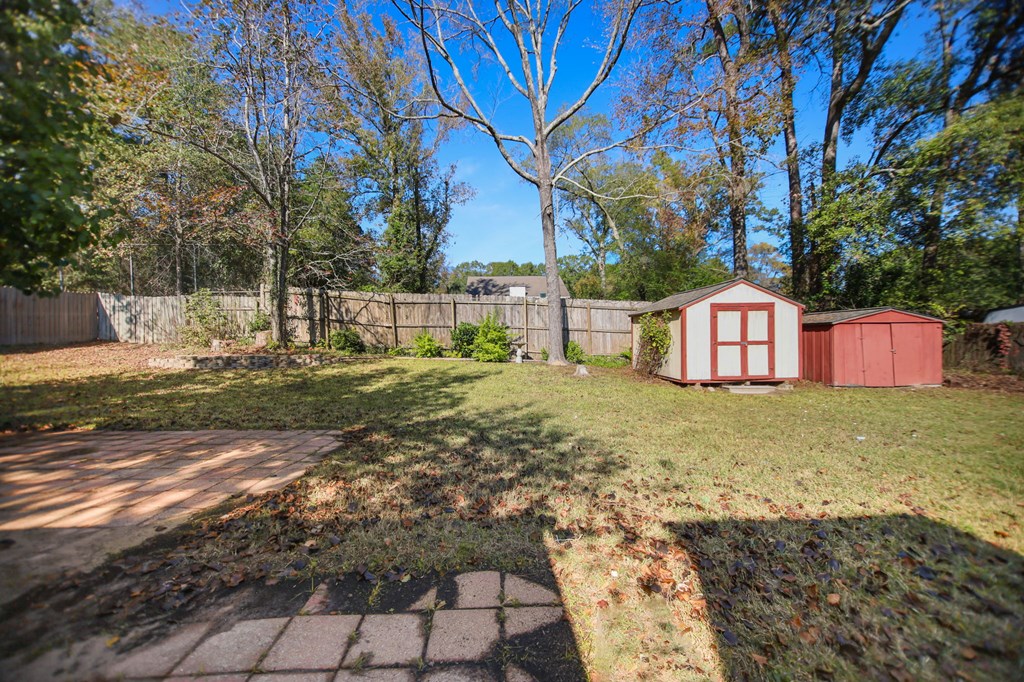 Covered Front Porch, Fenced Yard, Portable Outbuilding, Storage Shed