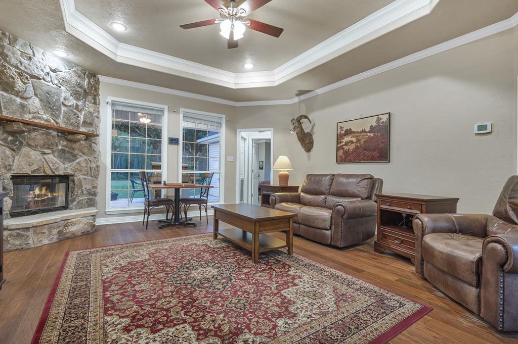 Smoke Detector, Ceiling Fan(s), Alarm System, Cathedral Ceilings, Vaulted Ceilings, Island Kitchen, Woodburning Fireplace, Gas Starter Fireplace, Master - Lower Level, Boxed Ceiling, Blinds