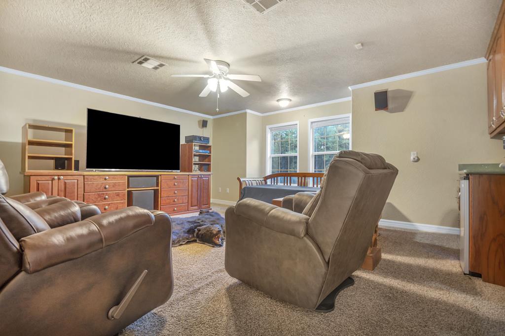 UNRESTRICTED! Sprawling across 11.9 acres of pure opulence, this luxurious estate stands as a testament to grandeur and exclusivity. With 4br, 3 full ba, and 1 half ba, this unrestricted paradise sits majestically just across the road from the serene Lake Sam Rayburn. Boasting a 2-car garage and a spacious 40X60 shop with bath facilities plus RV and motorhome carport. The property is fenced with a gated entrance for ultimate privacy. Inside, be greeted by soaring ceilings that elevate the ambiance to new heights. The master suite downstairs provides a luxurious retreat, complete with a spa-like en-suite bathroom. An enticing second-floor bonus room awaits your pleasure complete with a convenient kitchenette for added functionality. Enjoy panoramic views from the expansive windows that flood the home with natural light. Additional land available for purchase.