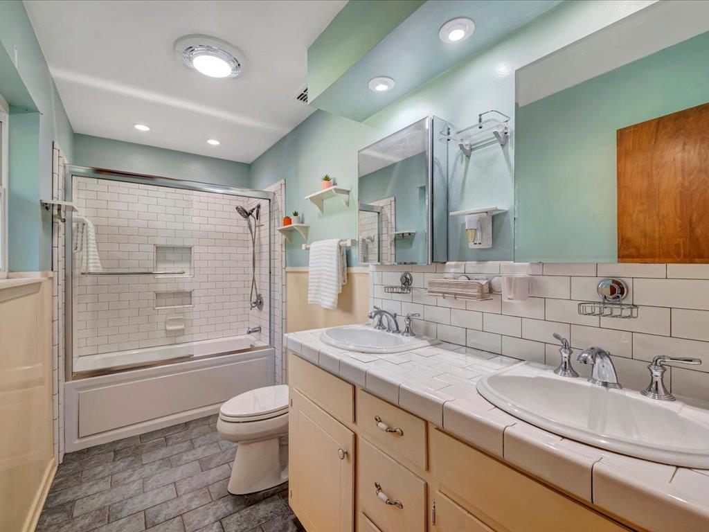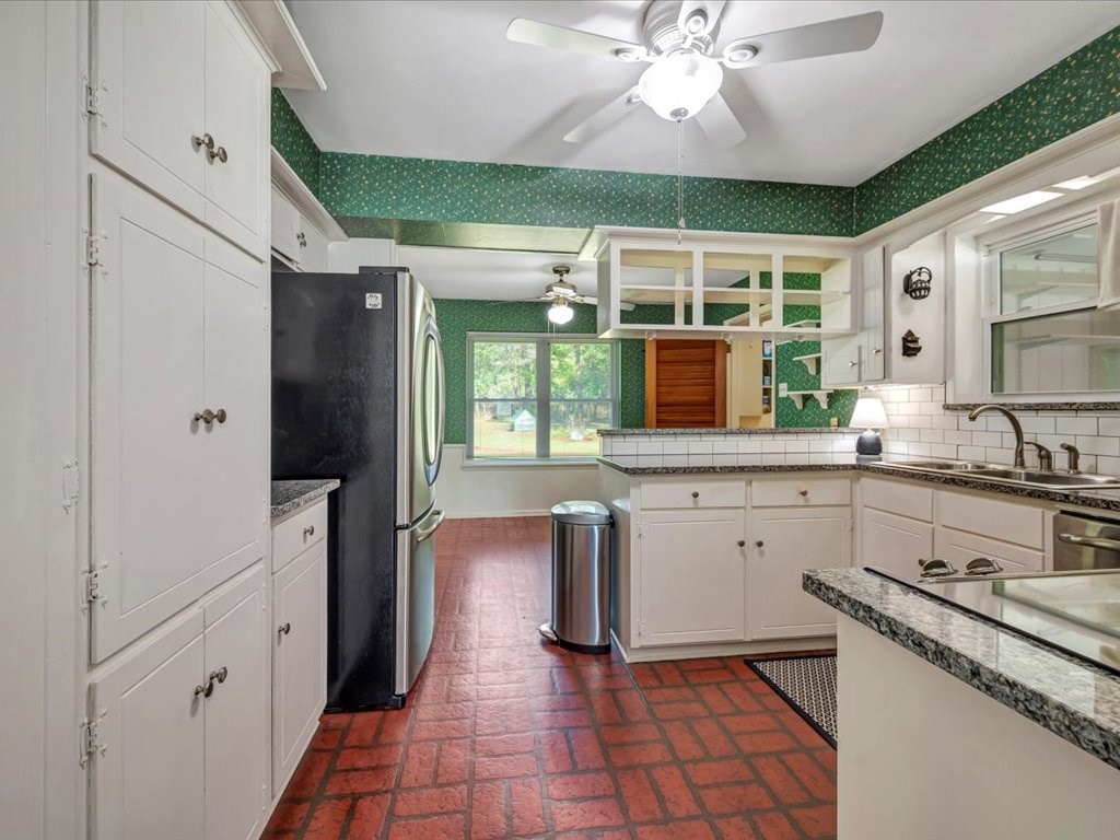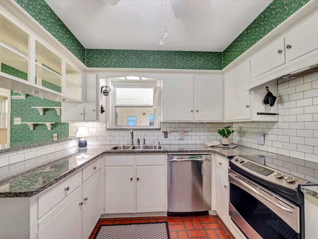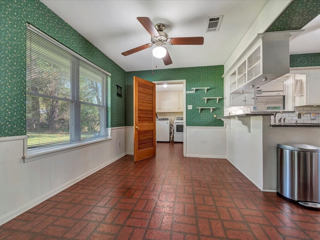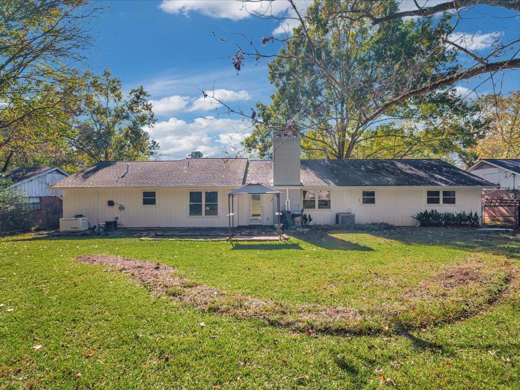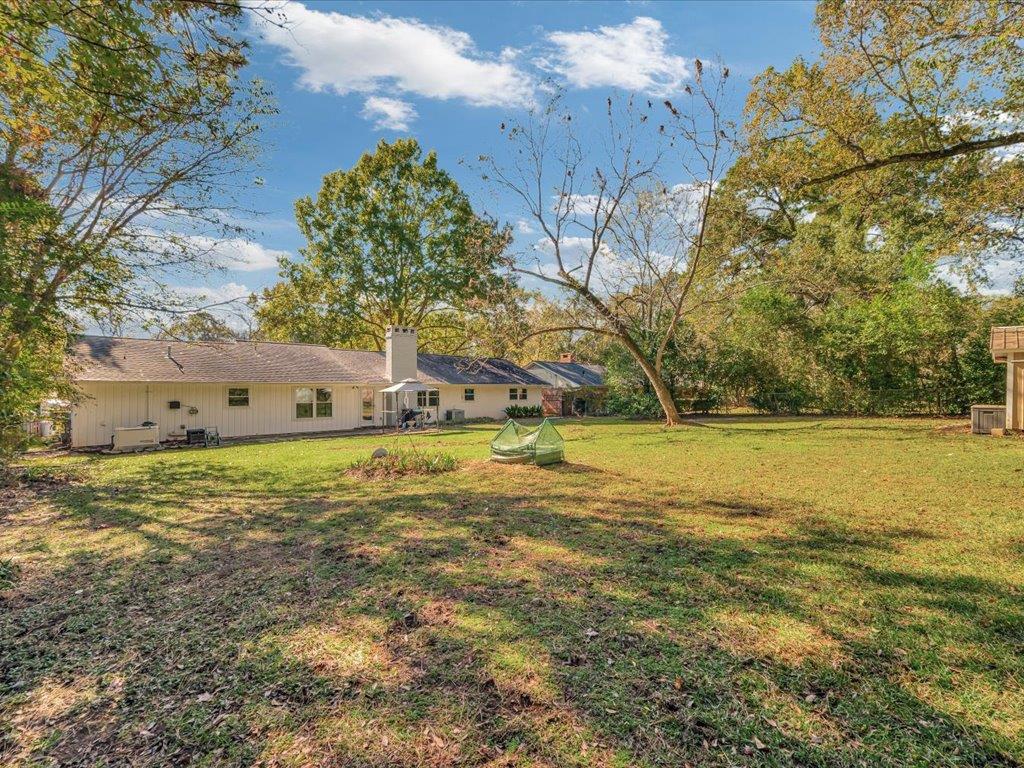 Tucked away on a quiet cul-de-sac in northeast Nacogdoches, this charming 1,713 sq ft, 1970s ranch feels like a private garden retreat. The single-story home backs up to a larger agricultural-use property, offering tranquil rural views just minutes from city conveniences. Inside, the thoughtful 3-bedroom, 2-full-bath layout centers around a cozy den with a wood-burning fireplace and hardwood floors throughout. The front-facing formal living room is perfect as a home office or sunlit reading room. The kitchen and baths have been updated with contemporary finishes, and all three bedrooms feature walk-in closets. Energy-smart touches include a whole-home generator, a Tesla charging plug, and solar panels. A lush, plant-filled yard invites outdoor living and gardening in a friendly, serene neighborhood, while still being close to schools, shopping, and dining—with room for entertaining, a garden, and future expansions.
