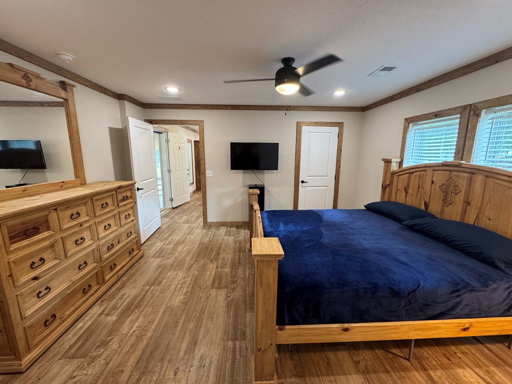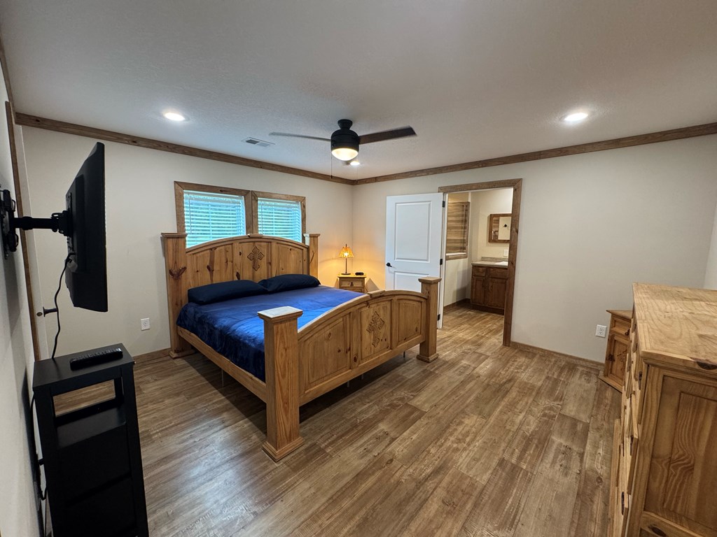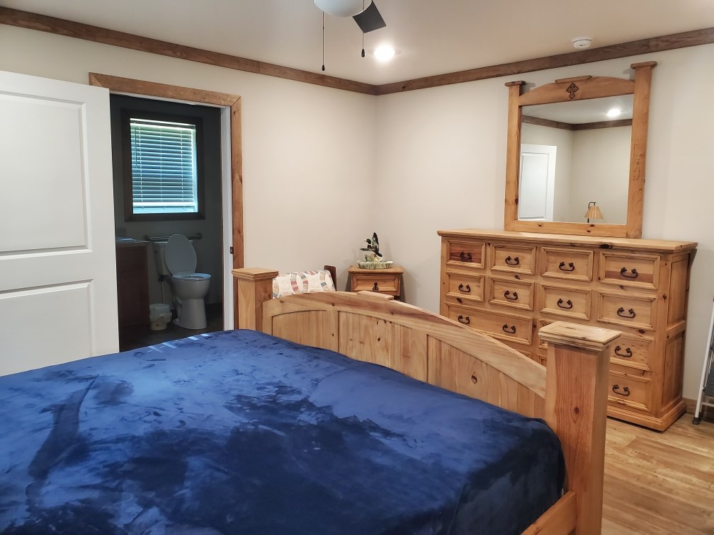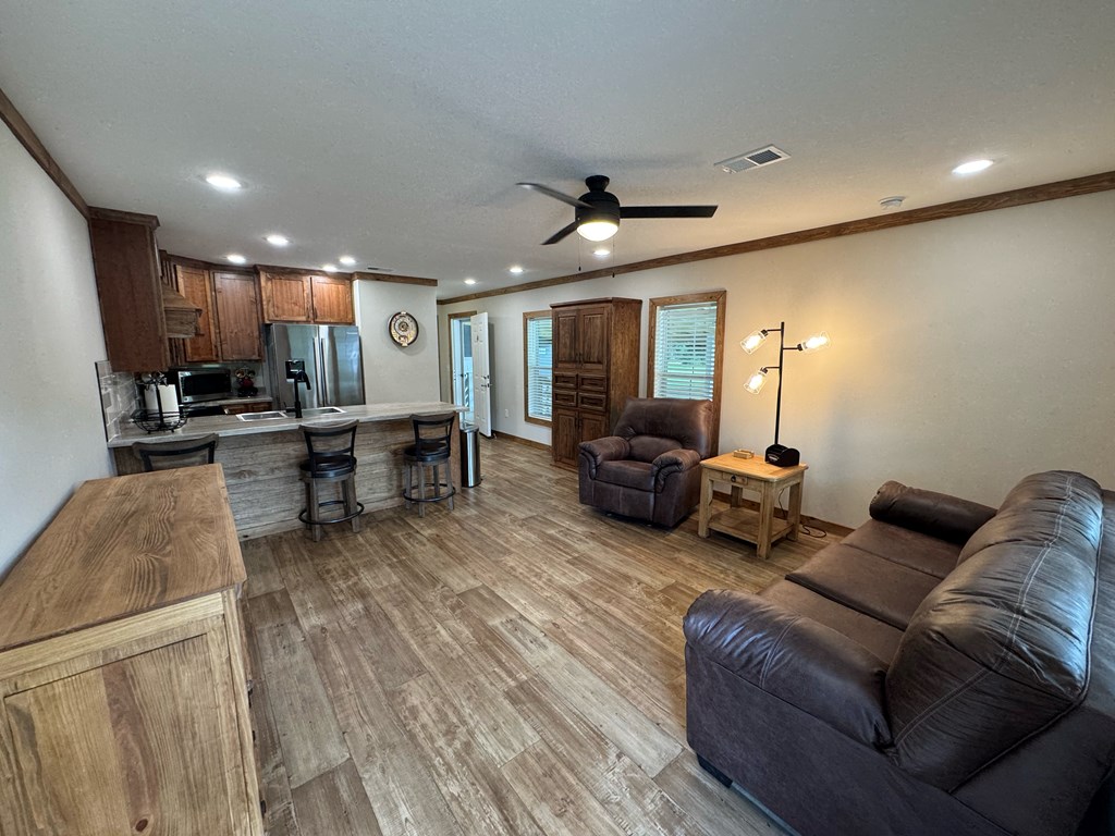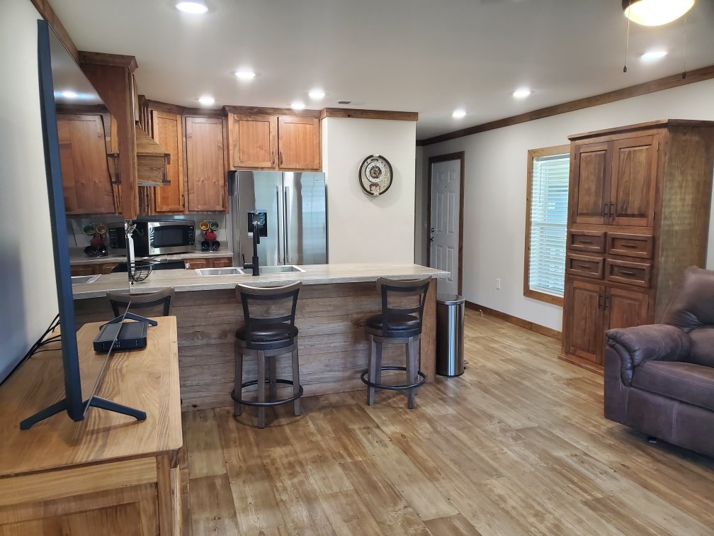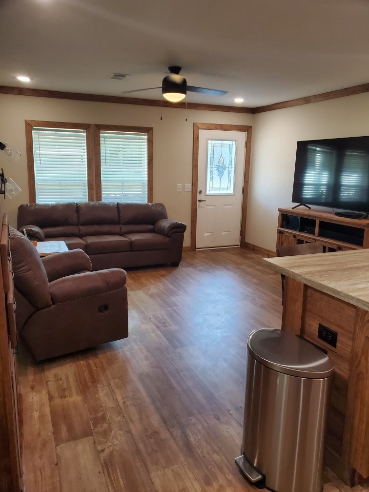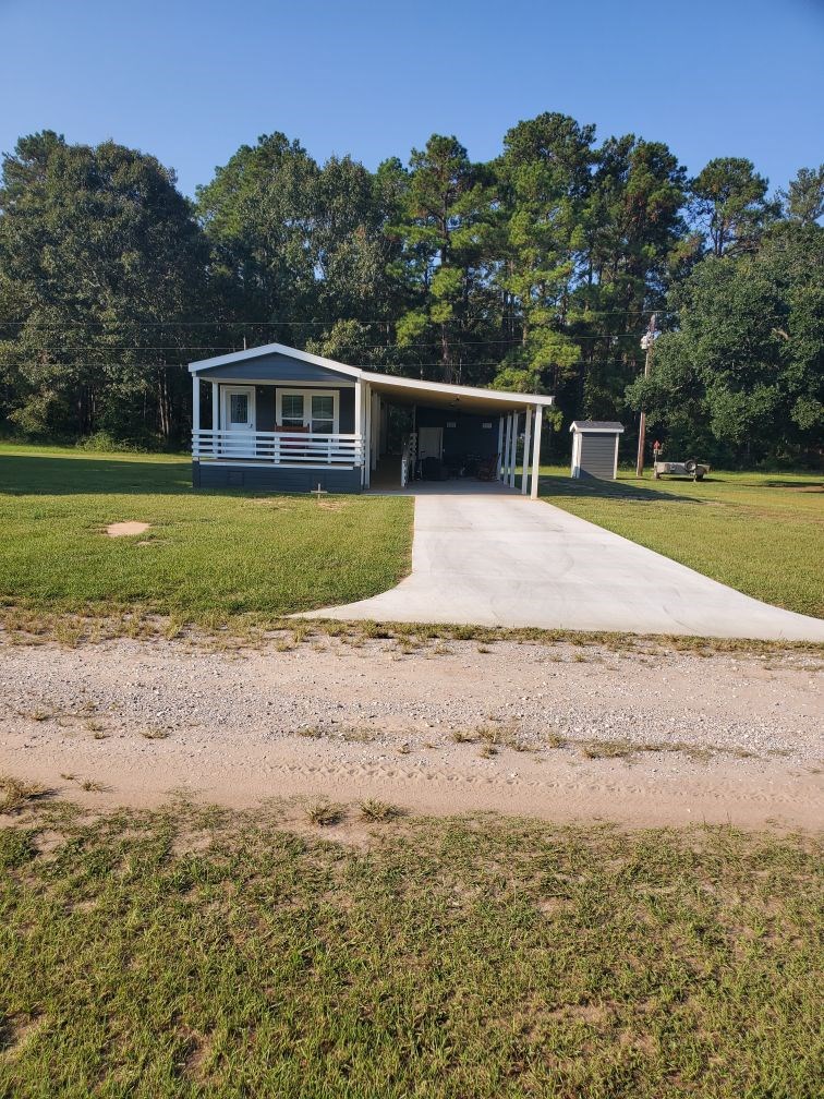 Built in 2025, this darling home sits on acre just minutes from Lake Sam Rayburn boat ramps and a short drive to Rayburn Country Resort. Offering handicap accessibility, this 1-bedroom, 1-bath residence features an oversized bedroom with walk-in closet, a tiled double-headed walk-in shower, and a spacious layout throughout. Interior highlights include vinyl flooring, real wood trim, Bosch refrigerator, stove, and dishwasher, plus Maytag washer and dryer. The property is equipped with a new well, new septic system, enclosed pump house, carport, porch with wheelchair ramp, and portable generator connection. An enclosed shed under the porch provides additional storage. This home is being offered fully furnished, providing a move-in ready opportunity close to the lake and resort amenities!