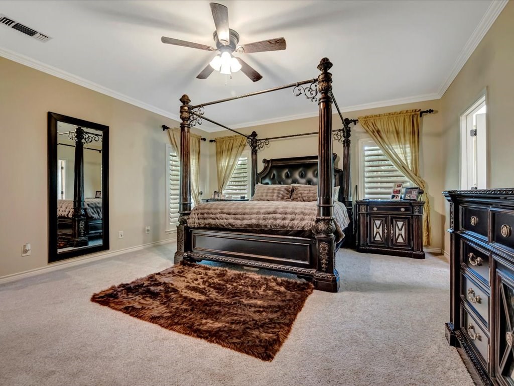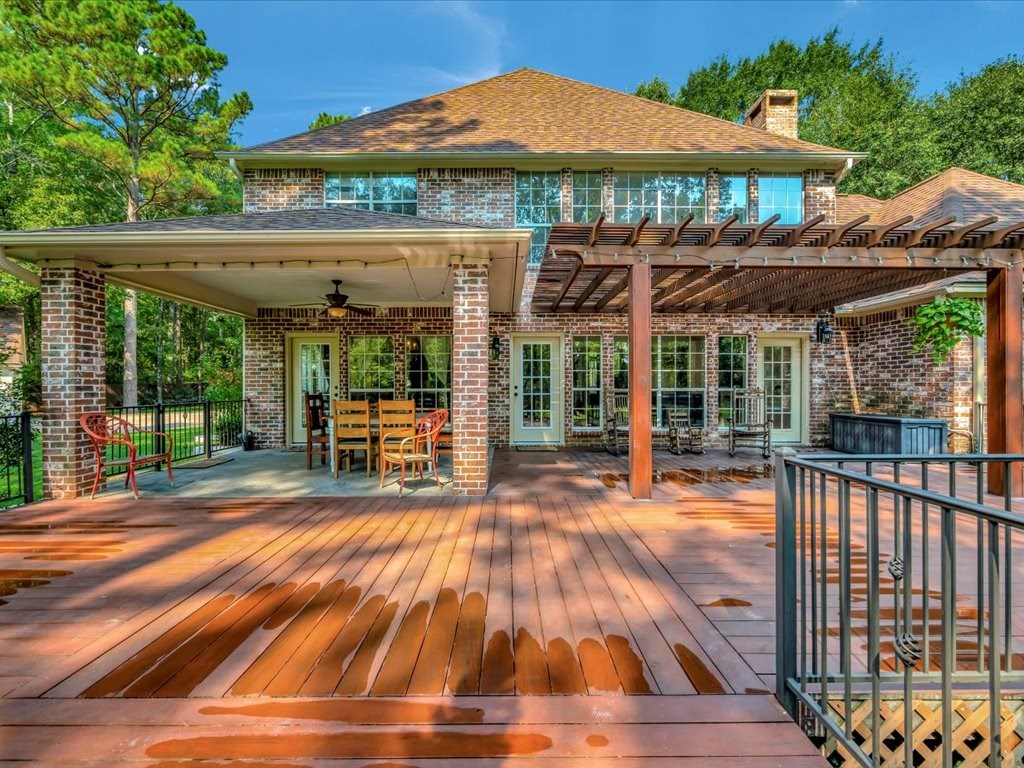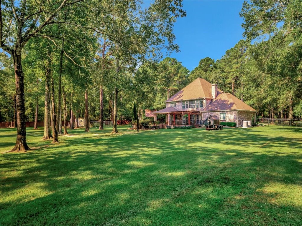 This beautiful, classic 4 bedroom, 3.5 bath home sits on almost 4 acres of manicured lawn. It offers the perfect blend of elegance and comfort. Designed with abundant natural light, this home boasts an open concept layout, soaring ceilings, and a spacious family room that flows seamlessly into the chef inspired kitchen complete with a double oven and pantry. The dedicated office space provides a quite area to work from home. The family room boast a wood burning fireplace, tall ceilings that open to the catwalk above. Seating will not be a problem with the dining room and breakfast area right beside the kitchen. Primary suite is oversized and relaxing with separate tub, double vanity and large shower. Laundry room is near an exterior door for convenience. Guest rooms are of great size. Relax and watch the wildlife roam on your large back deck. Stand alone carport would make for a great hangout spot. Completely fenced in back yard! Amazing location.