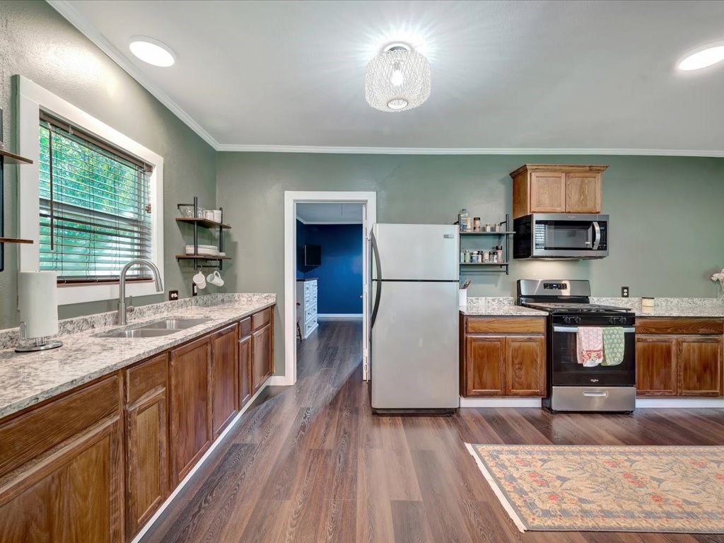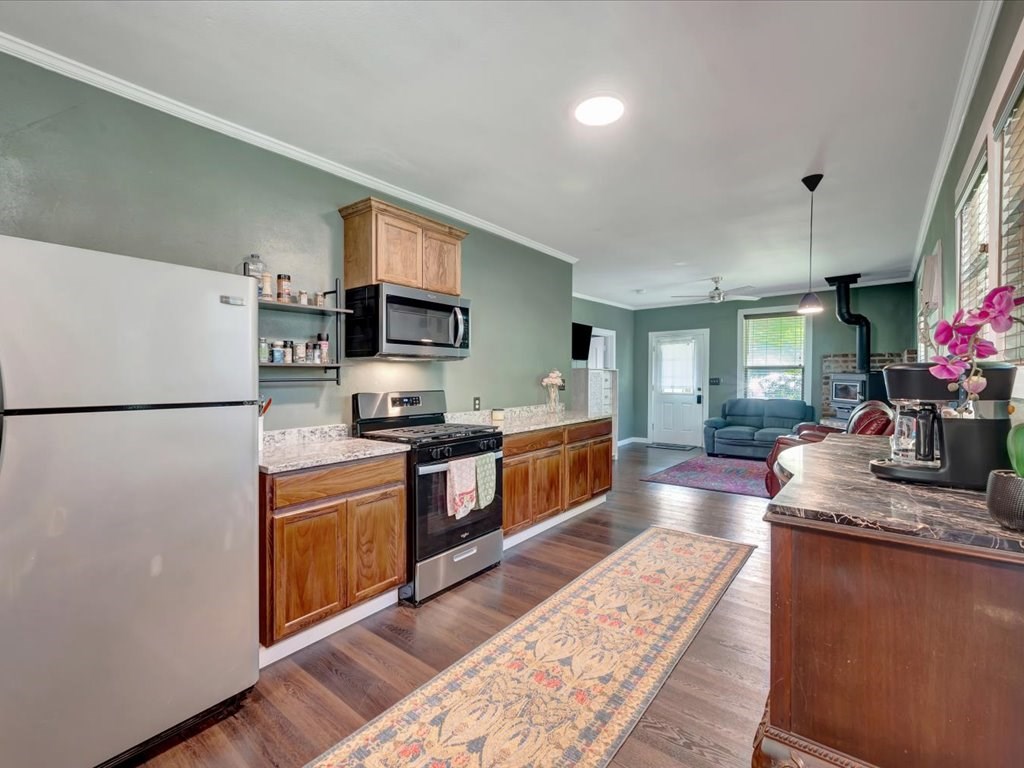 Welcome to your dream investment property in historic downtown Nacogdoches! This enchanting two-bedroom, two-bathroom Craftsman-style home seamlessly blends vintage charm with modern upgrades, making it an ideal choice for Airbnb enthusiasts or those seeking a cozy retreat in a vibrant community. Just steps from Festival Park, prepare to be captivated by the inviting covered front porch that pays homage to a bygone era. Inside, discover a beautifully upgraded interior that exudes warmth and character. The spacious living area features a stunning wood-burning stove and is open to the fully equipped kitchen and dining area. Both bedrooms provide ample space to spread out for short term or long-term rental and both bathrooms are easy to access from the bedrooms and common areas. This property comes fully furnished, fully fenced, and has been a successful Airbnb rental, making it a turnkey investment opportunity. A survey is already on file, ensuring a smooth transition for new owners.