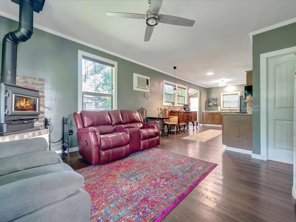 Interior Features Smoke Detector, Ceiling Fan(s), Woodburning Fireplace, Blinds