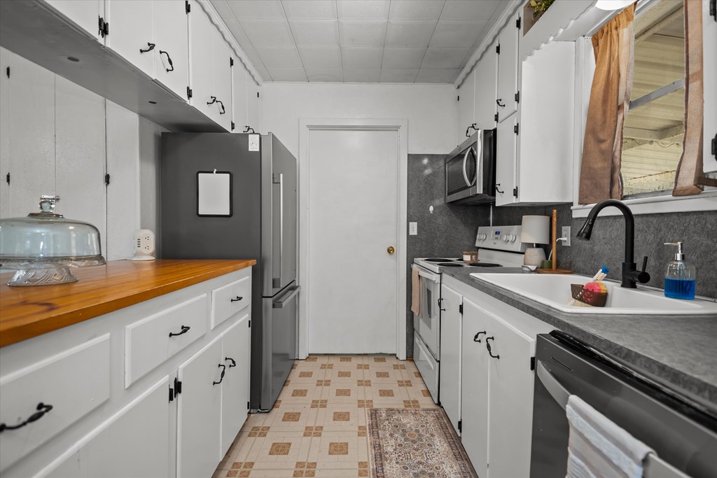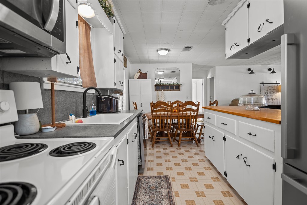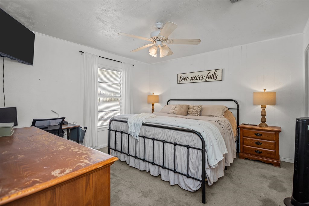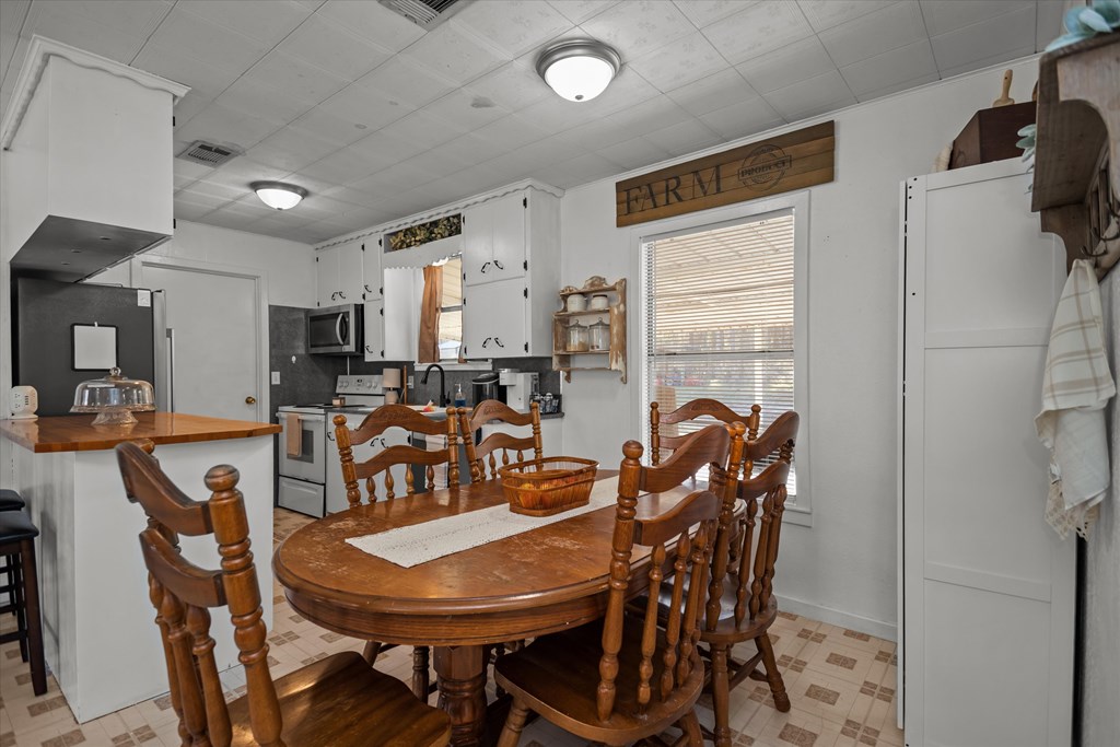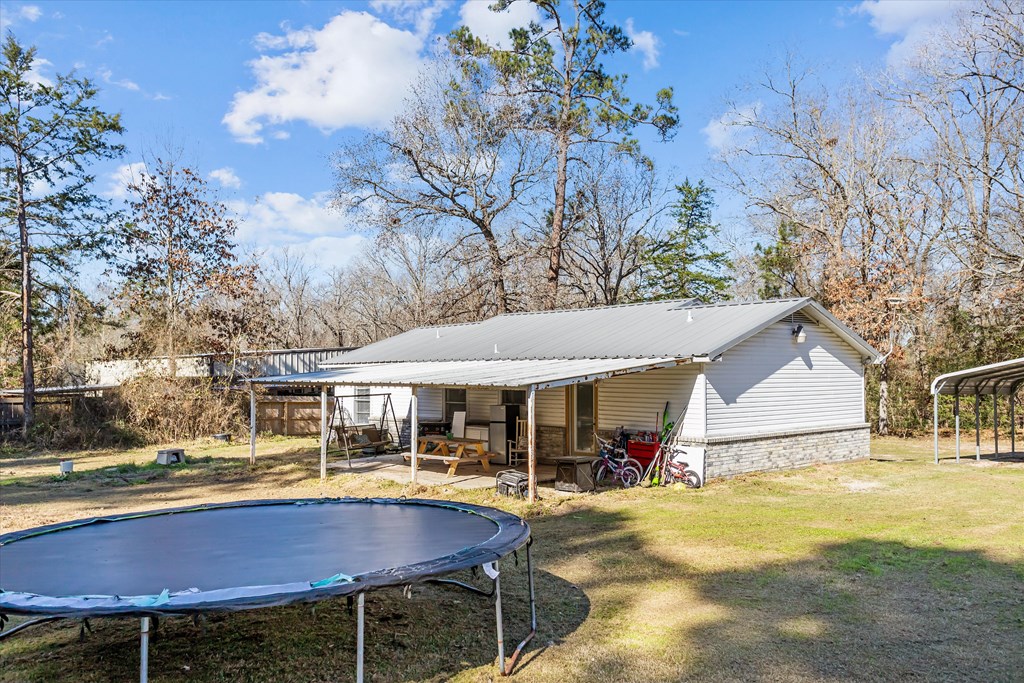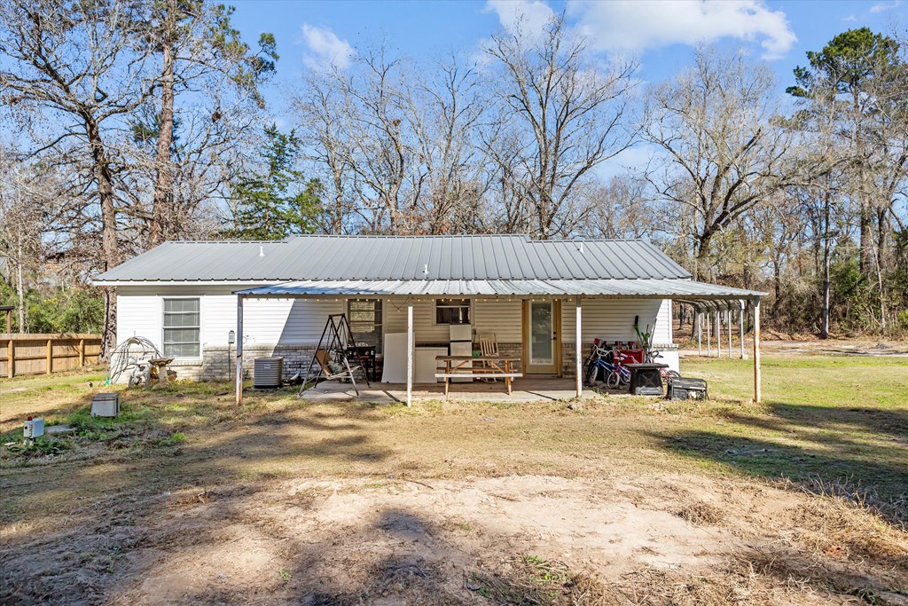 Cute as a button and full of charm, this quaint farmhouse-style home sits on .68 acres in a peaceful rural setting within Central ISD. The inviting interior offers an open-concept living and dining area paired with a functional galley-style kitchen, creating a comfortable and efficient layout. The split floor plan provides added privacy, with the primary suite tucked away for a quiet retreat. The laundry room is conveniently located at the back entrance, leading out to a spacious, scovered deck - perfect for enjoying the outdoors. Outside, you'll find a storage shed, chicken coop, and a carport for covered parking. Plus, the durable metal roof adds long-term peace of mind! This charming property is ready to be loved -- schedule your showing today!