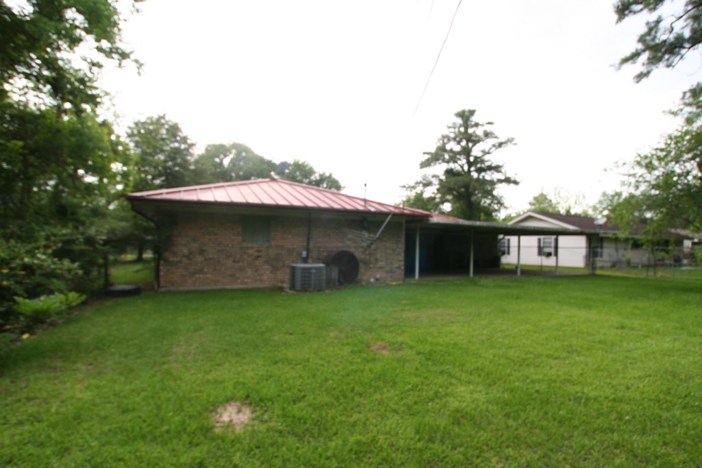 3/2/2 on 2 lots in the heart of Evadale. Large rooms with lots of space to remodel and make it our own. Metal roof installed in 2005. Extralarge covered patio across the back looking into a fenced back yard. Side entry for back yard access. Extra lot with access off CR 861included in sale (can be divided later and sold separately). Natural gas for central heat and water heater. Large den/dining just off kitchen with wood burning corner fireplace & formal living could be used as study. Paneling in rooms was installed over sheetrock walls. Original owner.