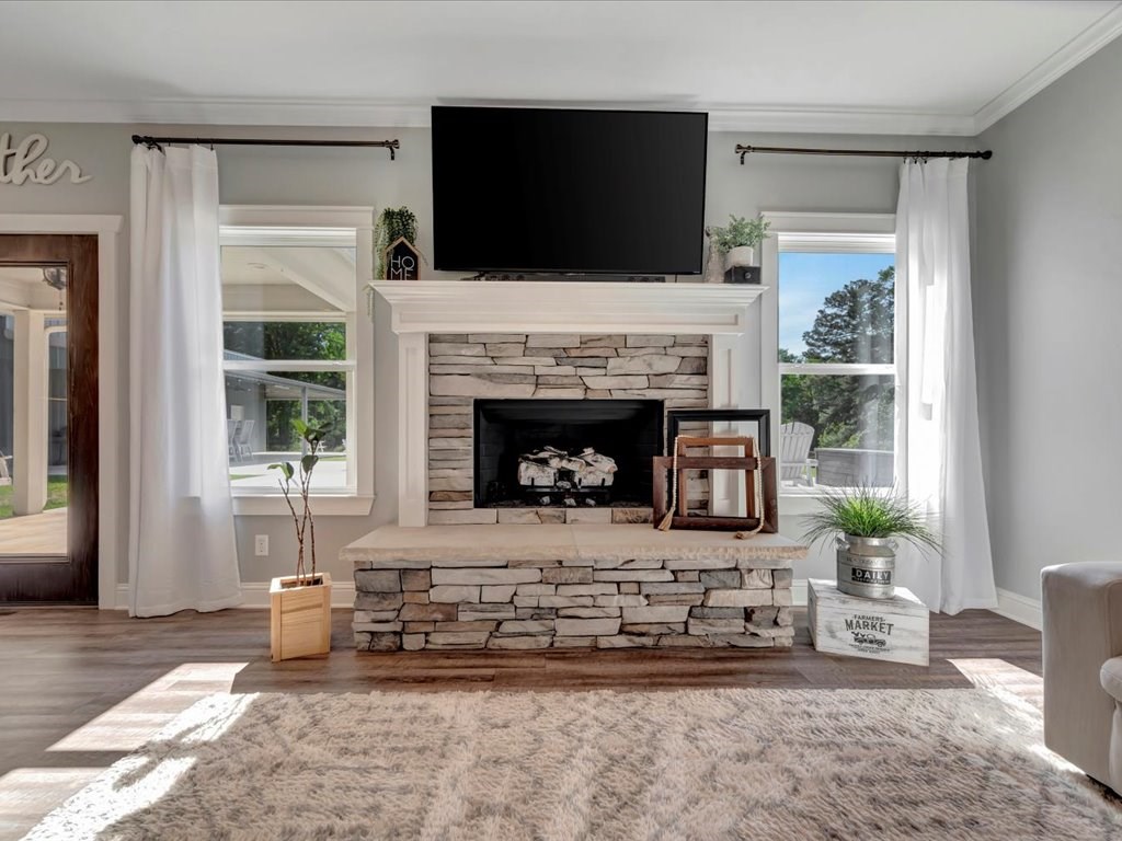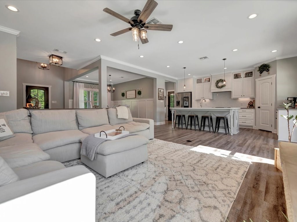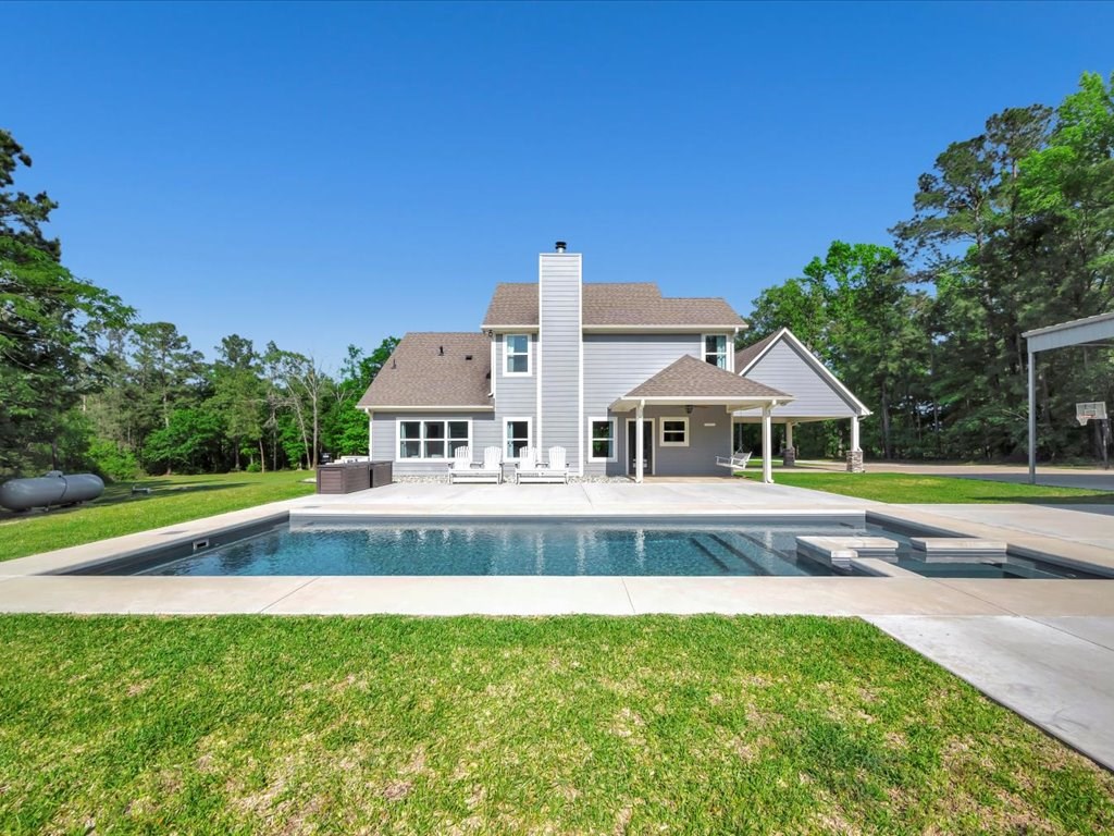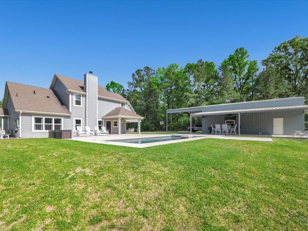 Experience country living at its finest in this stunning craftsman style home nestled on over 12 picturesque acres. The open concept floor plans offers a spacious family room with a cozy fireplace, a formal dining area, a dedicated office space and an oversized kitchen bar perfect for gathering. The private primary suite is filled with natural light, while the spa like bath features a standalone soaking tub and separate shower. Generously sized guest rooms, a well-appointed laundry room and thoughtful design details make this home functional as it is beautiful. Step outside to enjoy a sparkling pool and a pond for fishing. Designed for entertaining, the versatile shop is complete with an outdoor kitchen, a loft for storage and would easily convert into a guest apartment. Never be without power with the whole home 26kw generator! Plenty of space for your boat and toys, the property is ideal for anyone wanting to get closer to the lake! All of this in the amazing Huntington ISD!