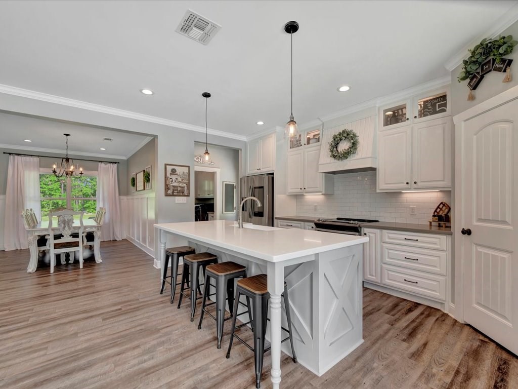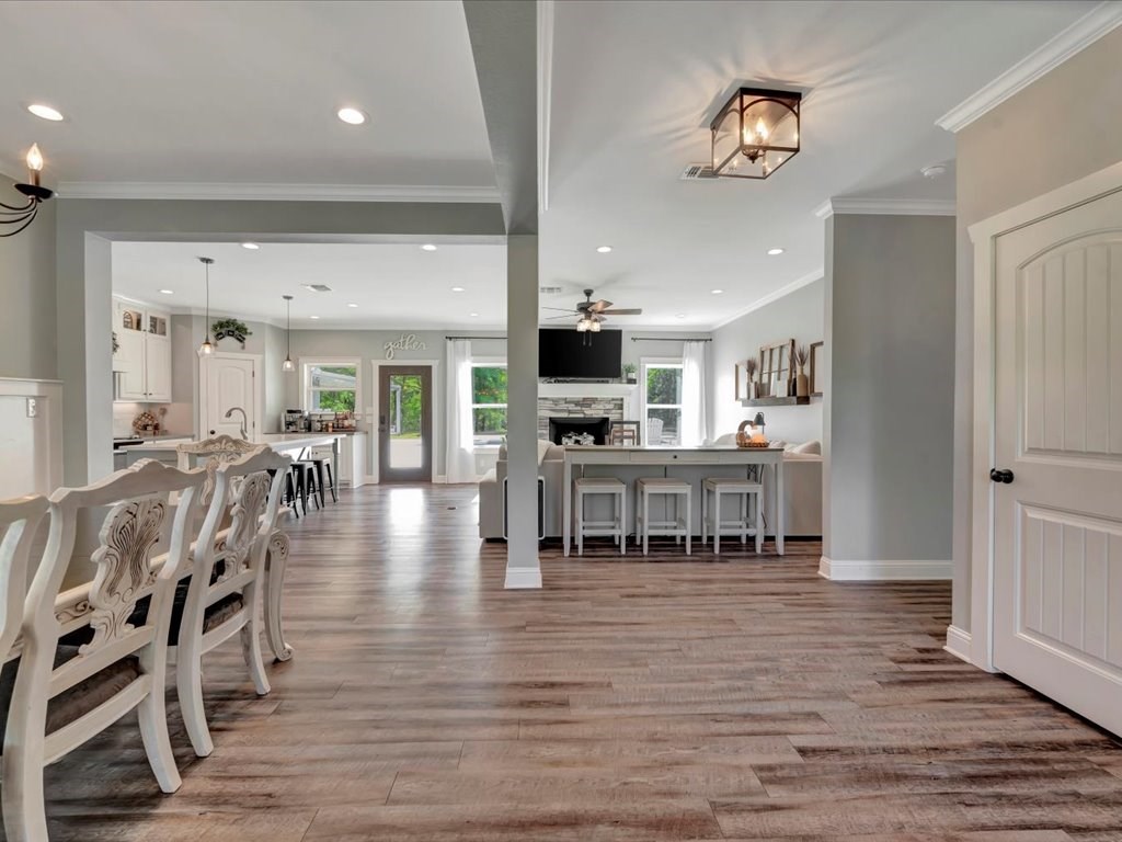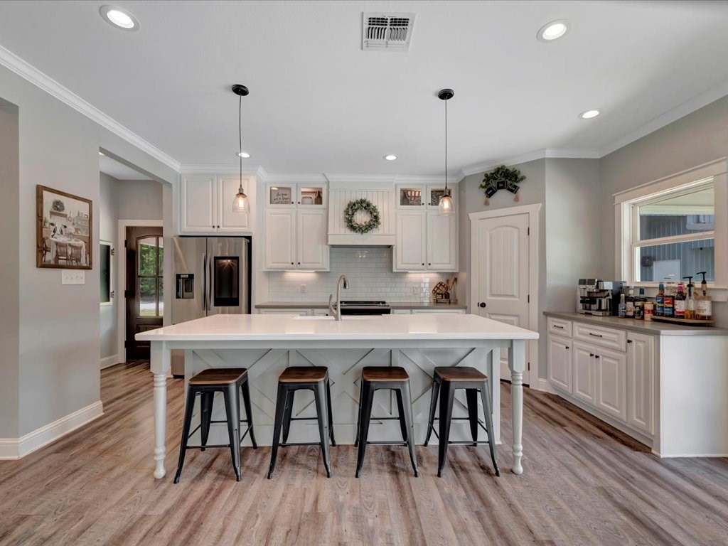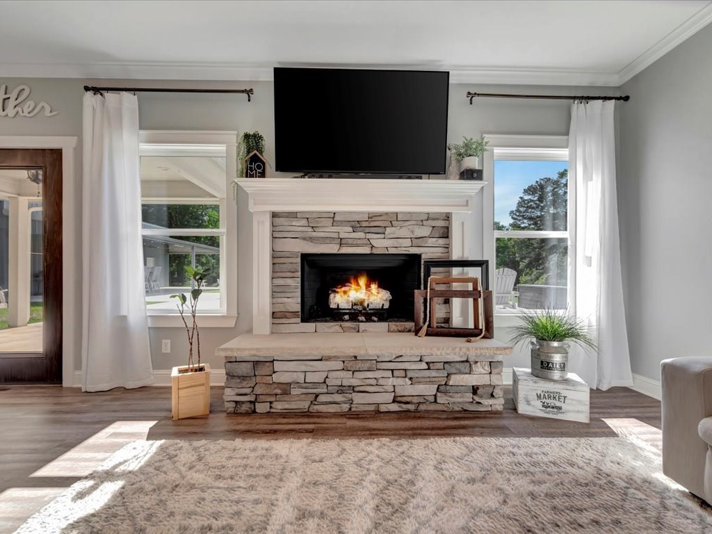 Experience country living at its finest in this stunning craftsman style home nestled on over 12 picturesque acres. The open concept floor plans offers a spacious family room with a cozy fireplace, a formal dining area, a dedicated office space and an oversized kitchen bar perfect for gathering. The private primary suite is filled with natural light, while the spa like bath features a standalone soaking tub and separate shower. Generously sized guest rooms, a well-appointed laundry room and thoughtful design details make this home functional as it is beautiful. Step outside to enjoy a sparkling pool and a pond for fishing. Designed for entertaining, the versatile shop is complete with an outdoor kitchen, a loft for storage and would easily convert into a guest apartment. Never be without power with the whole home 26kw generator! Plenty of space for your boat and toys, the property is ideal for anyone wanting to get closer to the lake! All of this in the amazing Huntington ISD!