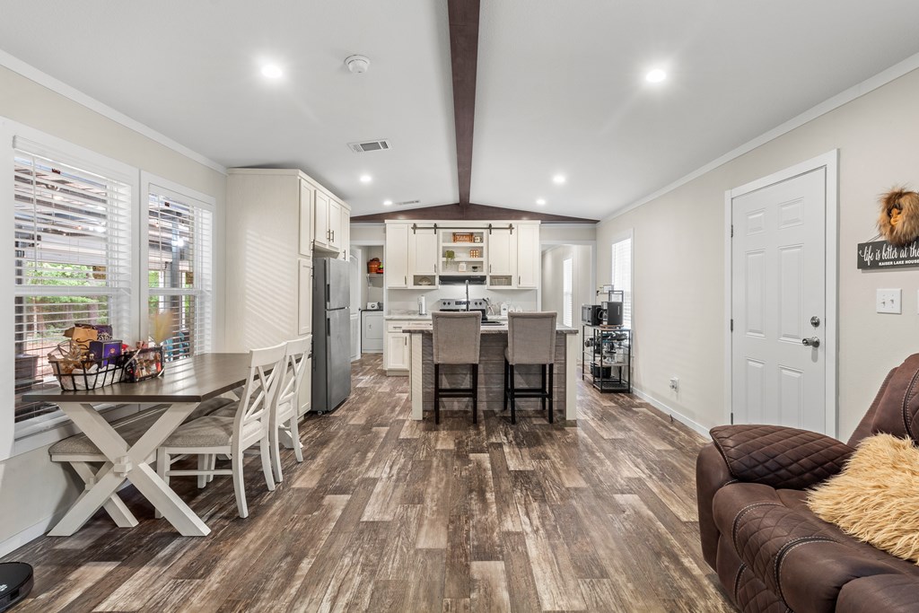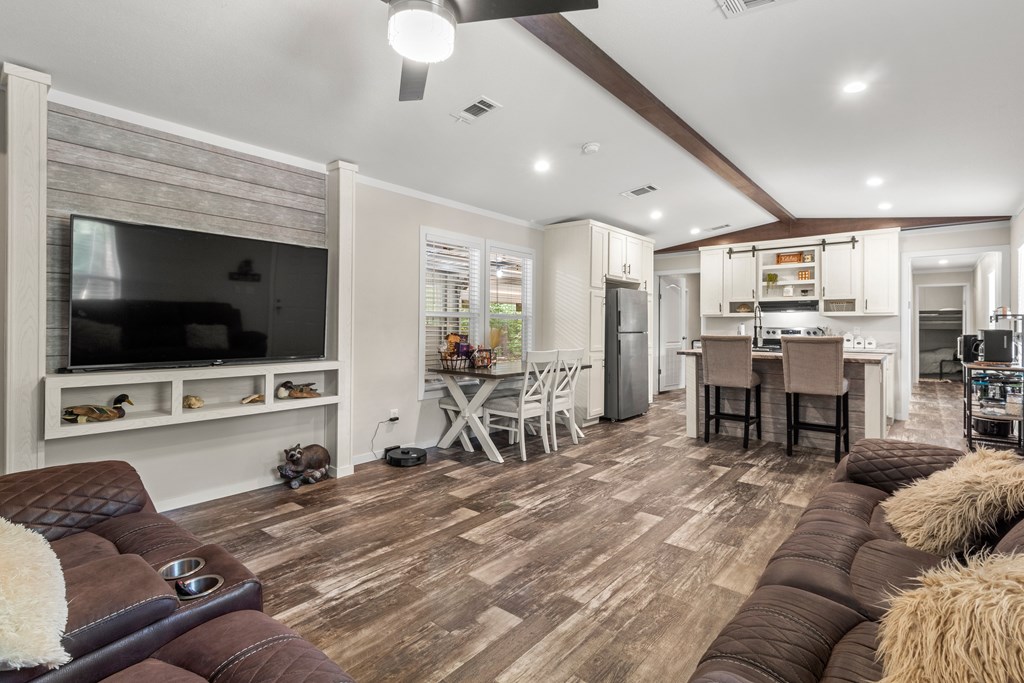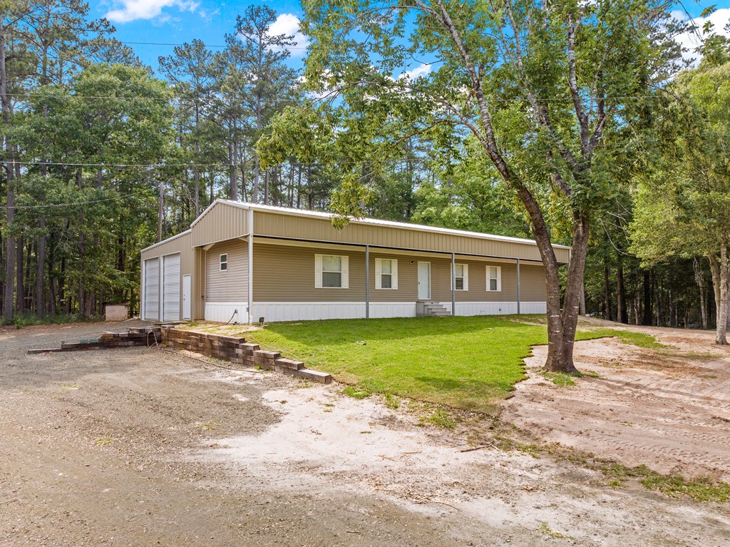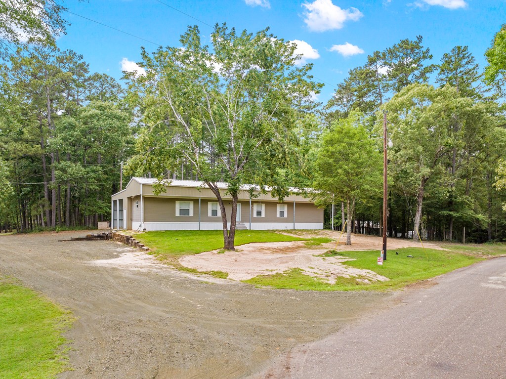 Nestled near the serene waters of the Angelina River & Lake Sam Rayburn, this charming manufactured home, offers a peaceful retreat with easy access to nature's beauty. Situated on a spacious 0.32-acre lot, this property provides ample room to enjoy the outdoors while embracing East Texas living. The home features 3 bedrooms, 2 bathrooms, a bright & open interior with a modern kitchen, a cozy dining area, & a comfortable living space, all accented with a touch of rustic charm. A standout feature is the unique outdoor living space, accessible through large roll-up doors that provide easy close-up & storage to protect your lake toys and outdoor essentials. The covered patio area is perfect for entertaining or relaxing. Ideal for a weekend getaway or full-time residence, this property's proximity to boating, fishing, & outdoor recreation makes it a great choice. A convenient RV connection. Nestled near the beloved waters of the Angelina River, Lake Sam Rayburn & Angelina National Forest!