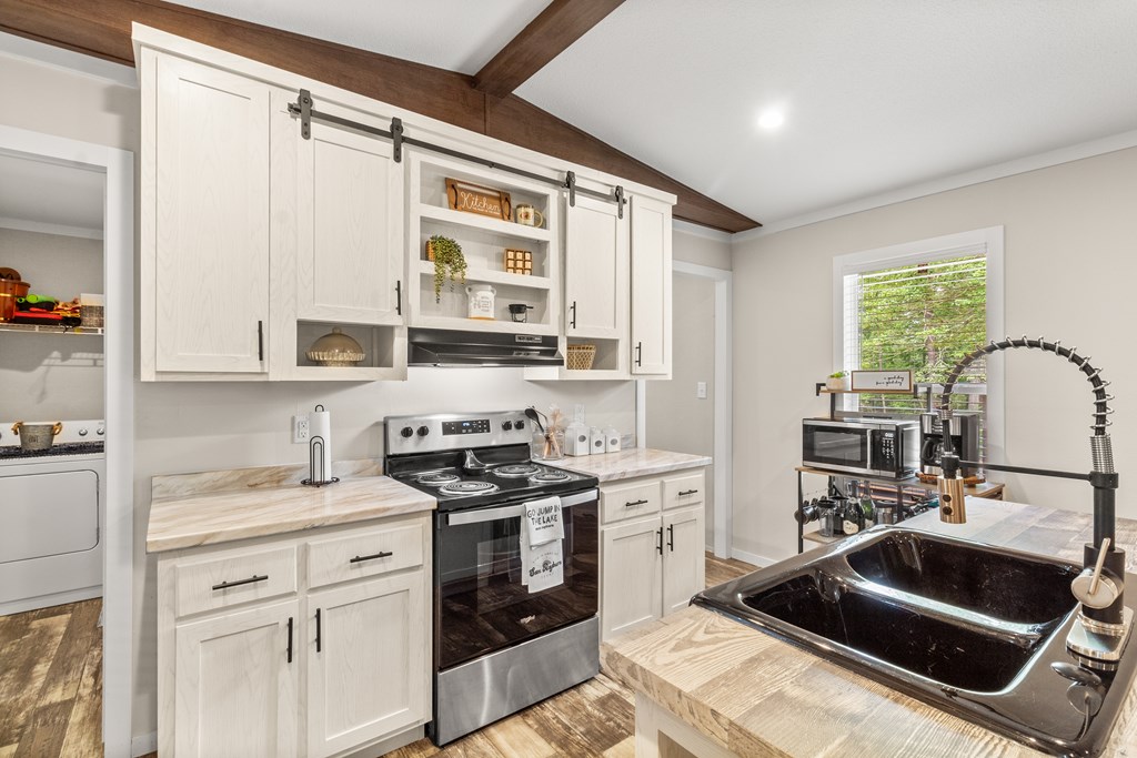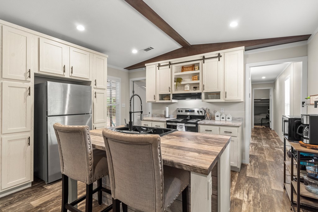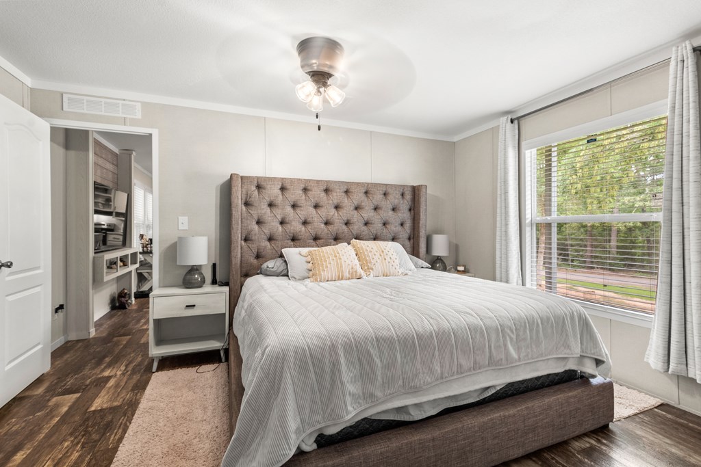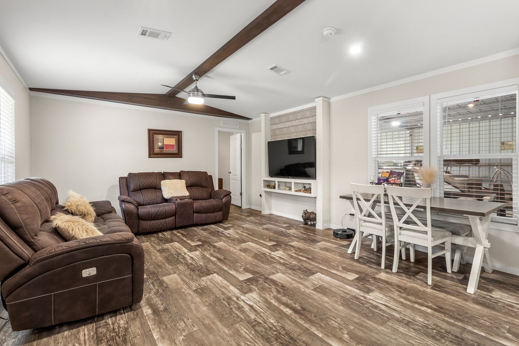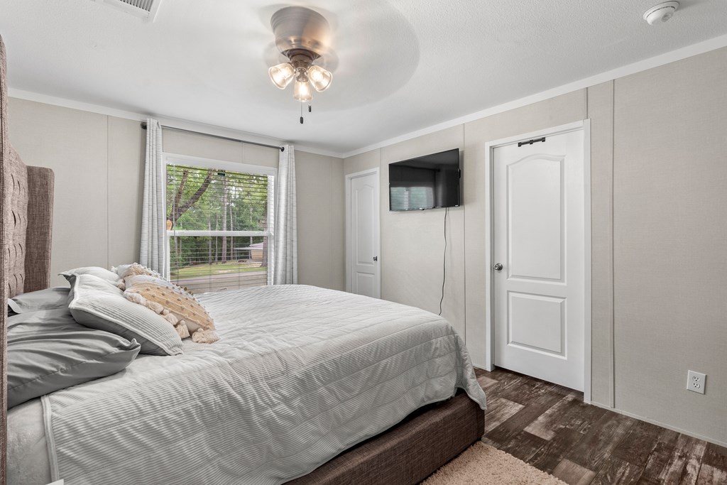 Nestled near the serene waters of the Angelina River & Lake Sam Rayburn, this charming manufactured home, offers a peaceful retreat with easy access to nature's beauty. Situated on a spacious 0.32-acre lot, this property provides ample room to enjoy the outdoors while embracing East Texas living. The home features 3 bedrooms, 2 bathrooms, a bright & open interior with a modern kitchen, a cozy dining area, & a comfortable living space, all accented with a touch of rustic charm. A standout feature is the unique outdoor living space, accessible through large roll-up doors that provide easy close-up & storage to protect your lake toys and outdoor essentials. The covered patio area is perfect for entertaining or relaxing. Ideal for a weekend getaway or full-time residence, this property's proximity to boating, fishing, & outdoor recreation makes it a great choice. A convenient RV connection. Nestled near the beloved waters of the Angelina River, Lake Sam Rayburn & Angelina National Forest!