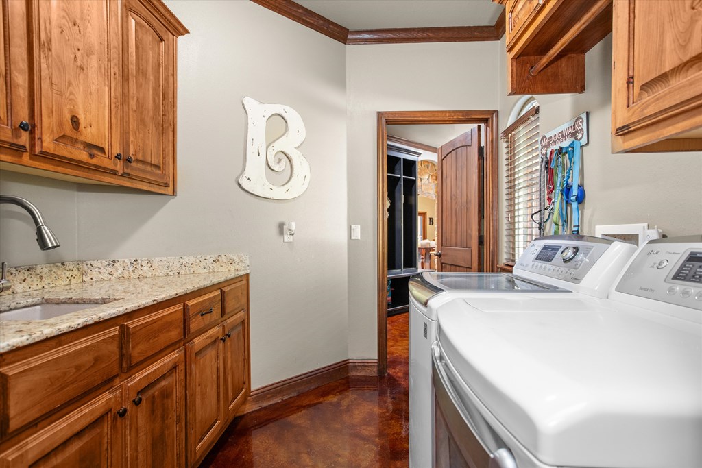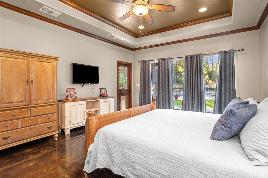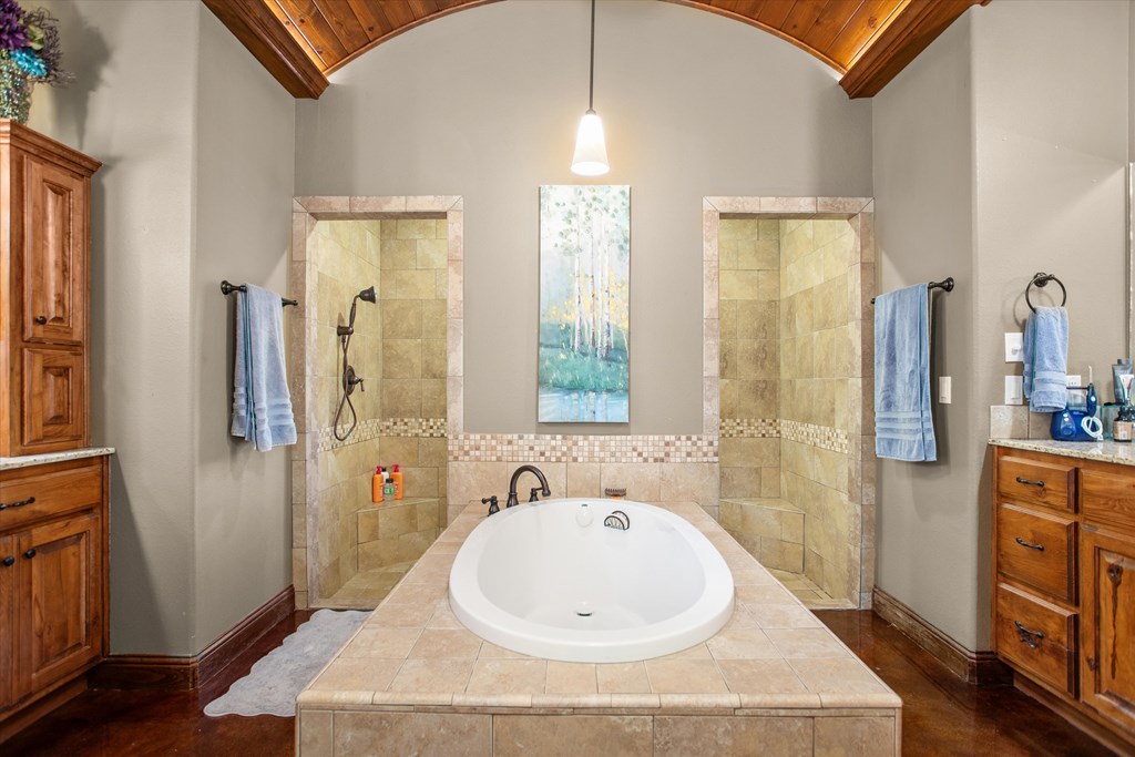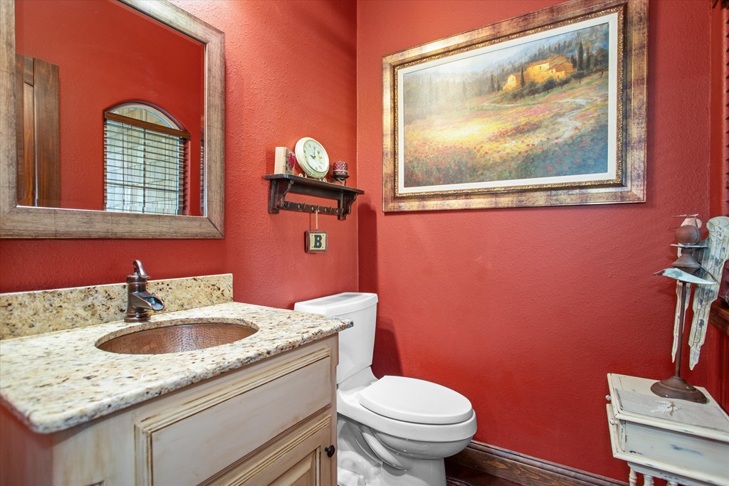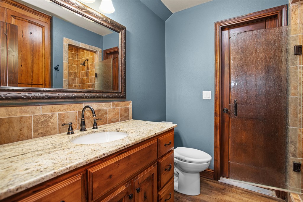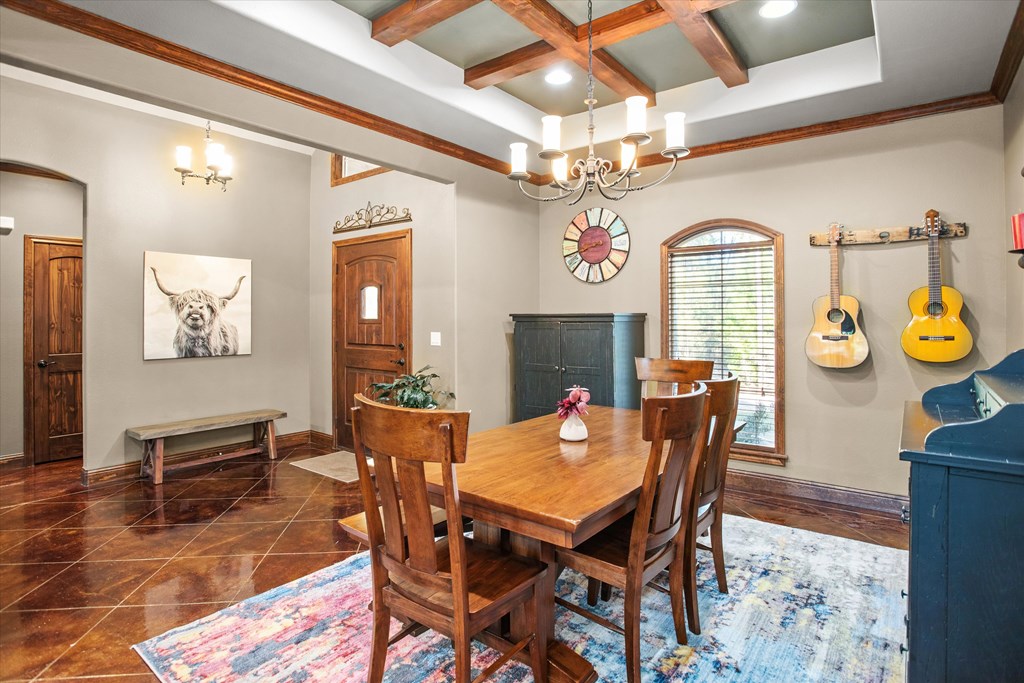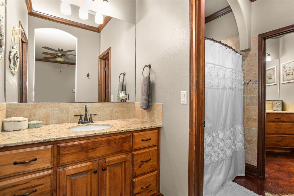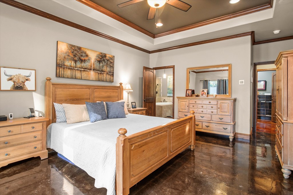 This beautiful custom-built 4-bedroom, 3.5-bath residence offers space and style in every detail. The heart of the home is an open-concept living, kitchen, and dining area that's perfect for gatherings. The kitchen is a chef's dream, featuring double islands, a large gas range, , granite countertops, a built-in ice maker, and a spacious walk-in pantry for plenty of storage. The split floor plan offers thoughtful privacy. Two bedrooms share a convenient Jack-and-Jill bathroom, while another bedroom with its own en-suite bath is located upstairs—ideal for guests or family. The spacious primary suite is a retreat of its own with a soaking tub, walk-thru shower, and generous closet space. Work from home in the dedicated office, then unwind outdoors by the sparkling pool and hot tub. The large covered patio creates the perfect setting for entertaining or relaxing year-round. A shop and private entrance add even more versatility and convenience. Located in the highly desirable Hudson ISD