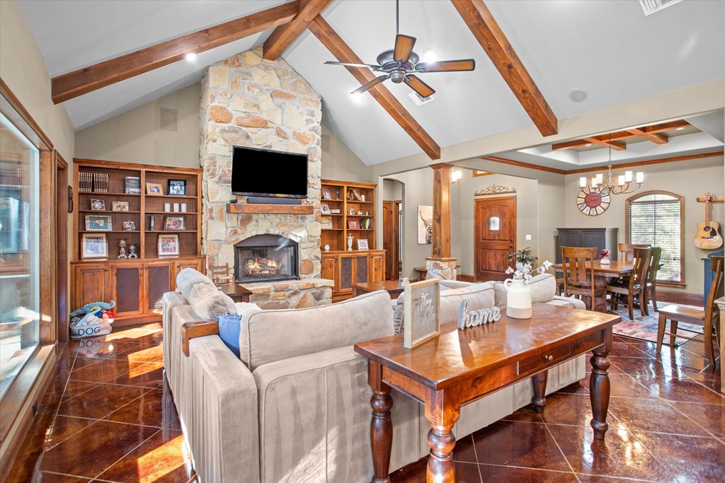 Interior Features Double Pane Windows, Ceiling Fan(s), Breakfast Bar, Cathedral Ceilings, Gas Fireplace, Boxed Ceiling, Blinds