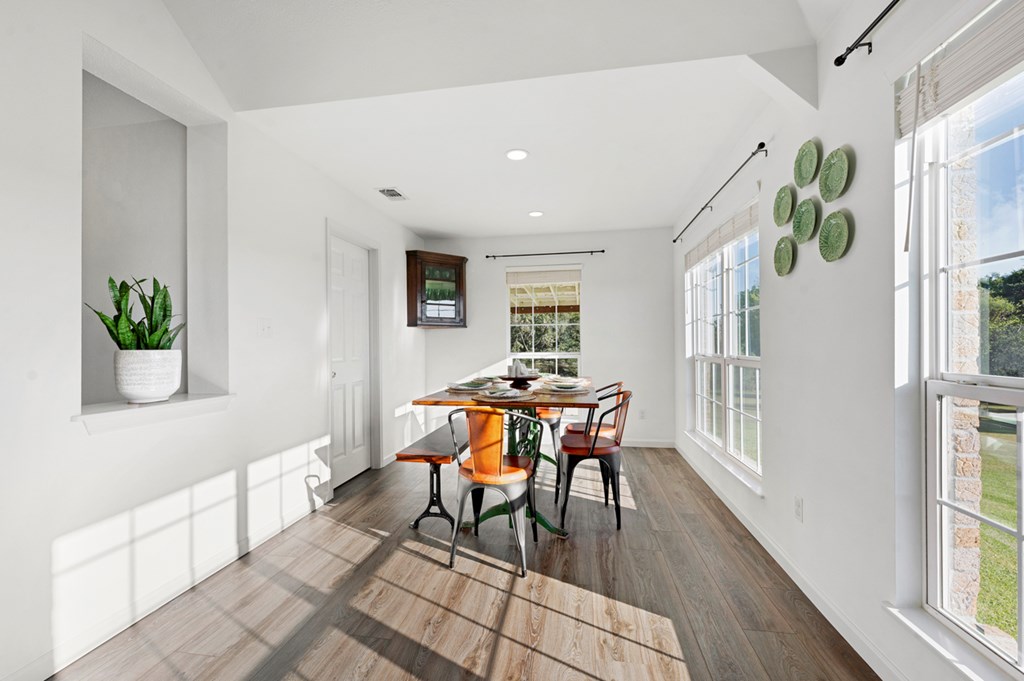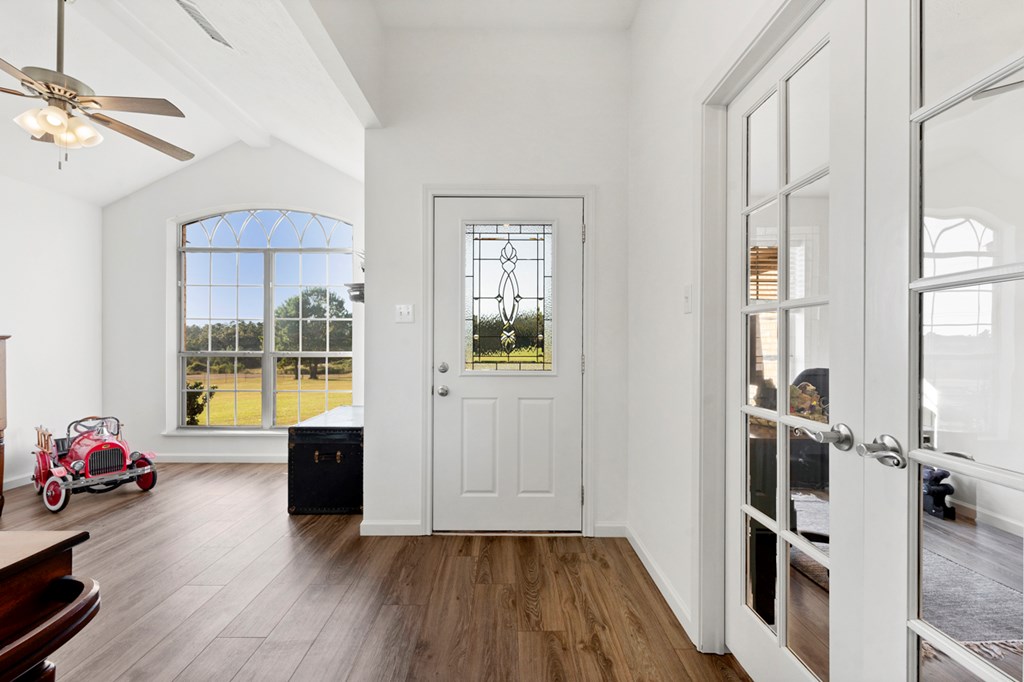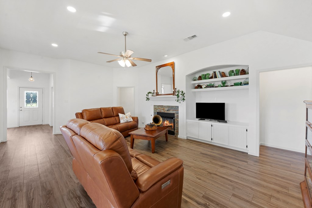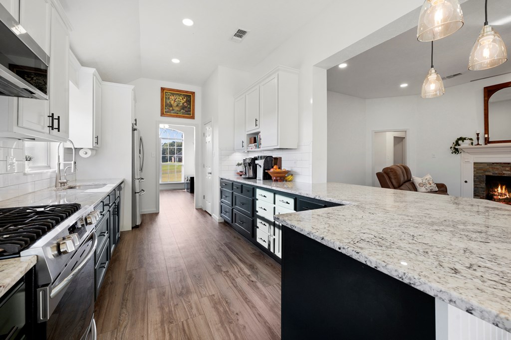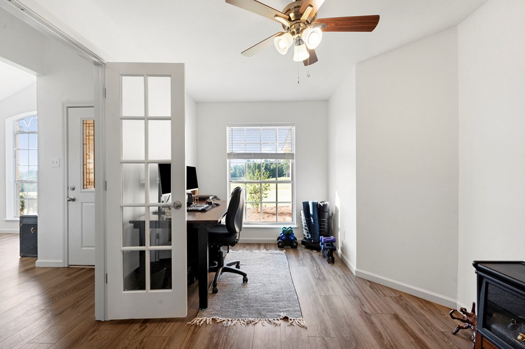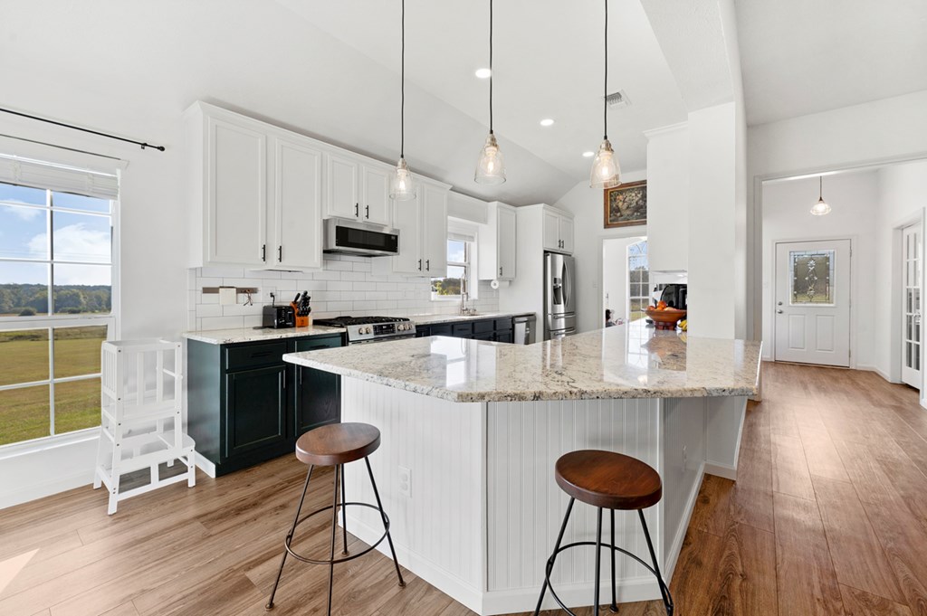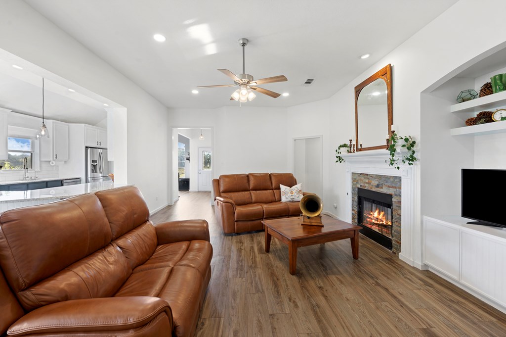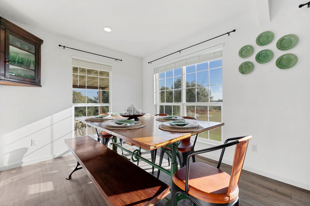 Beautifully updated and move-in ready, this 2,237 sq ft home sits on 5.27 fenced acres at the end of a quiet cul-de-sac with stunning pasture views. Featuring 3 bedrooms, 2 baths, and flexible spaces for an office or bonus room, it was fully renovated in 2020 with new roof, HVAC, and aerobic septic. The kitchen offers granite counters, gas range, and wrap-around peninsula with bar seating, opening to the living area with gas fireplace. The primary suite includes dual sinks, vanity, and a walk-in shower with dual heads. Enjoy a mudroom with built-ins, separate laundry, and a 30x30 shop on slab with half bath, finished office, and RV hookup. Experience modern comfort surrounded by breathtaking views. Seller offering 1% of sales price toward buyer's closing costs!