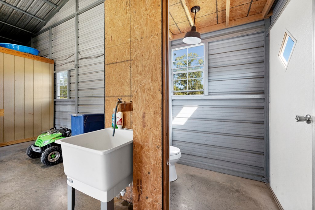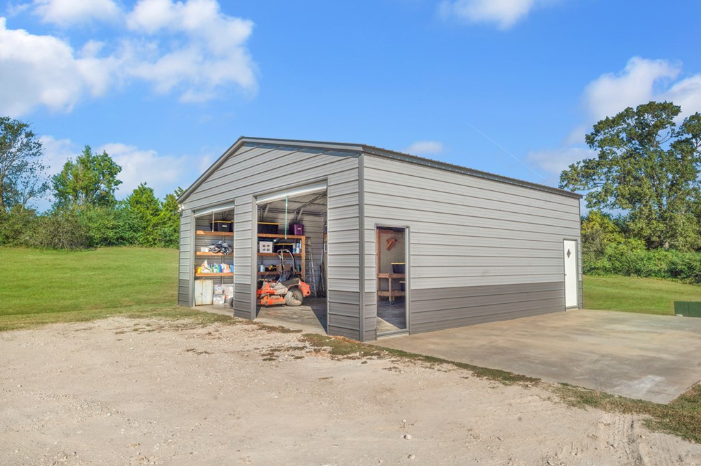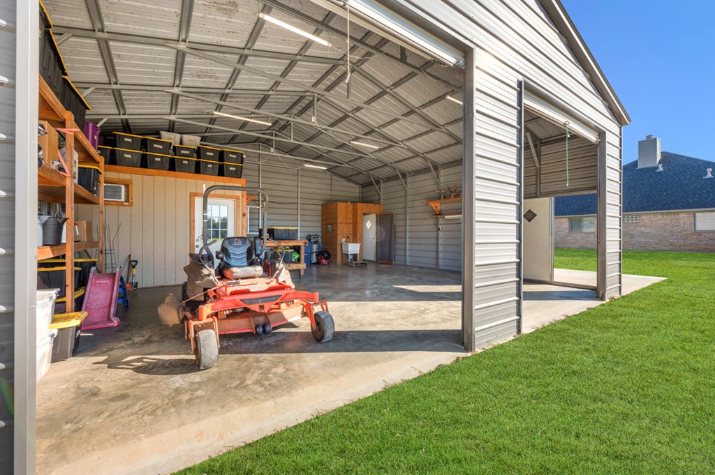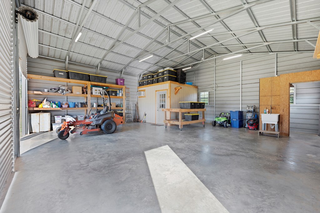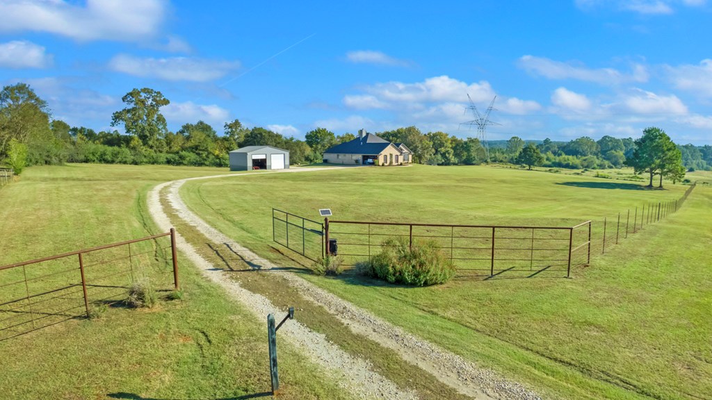 Exterior Features: Electric Gate, Covered Patio, Fenced Yard, Workshop, Metal Building, Outbuilding on Slab