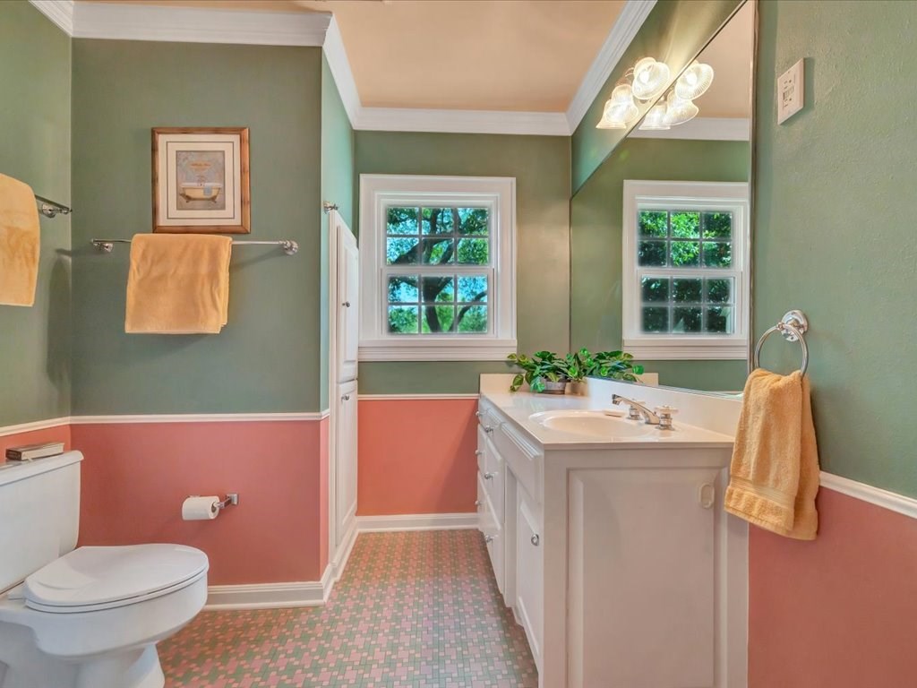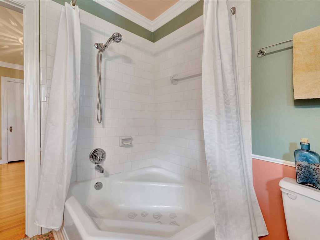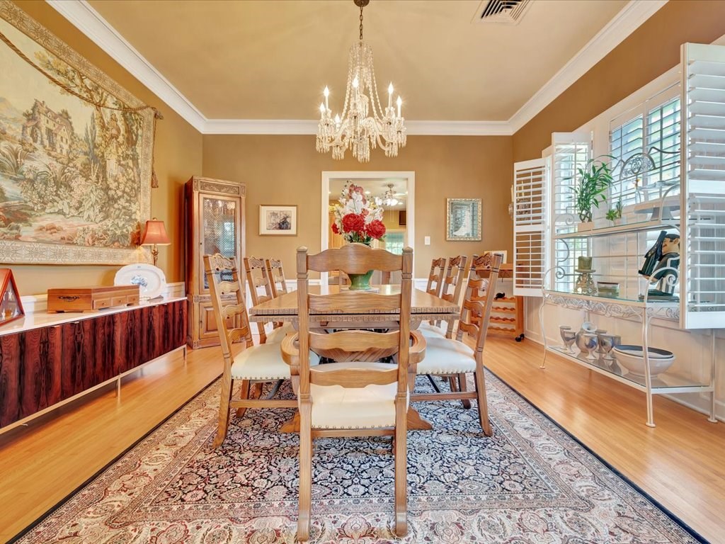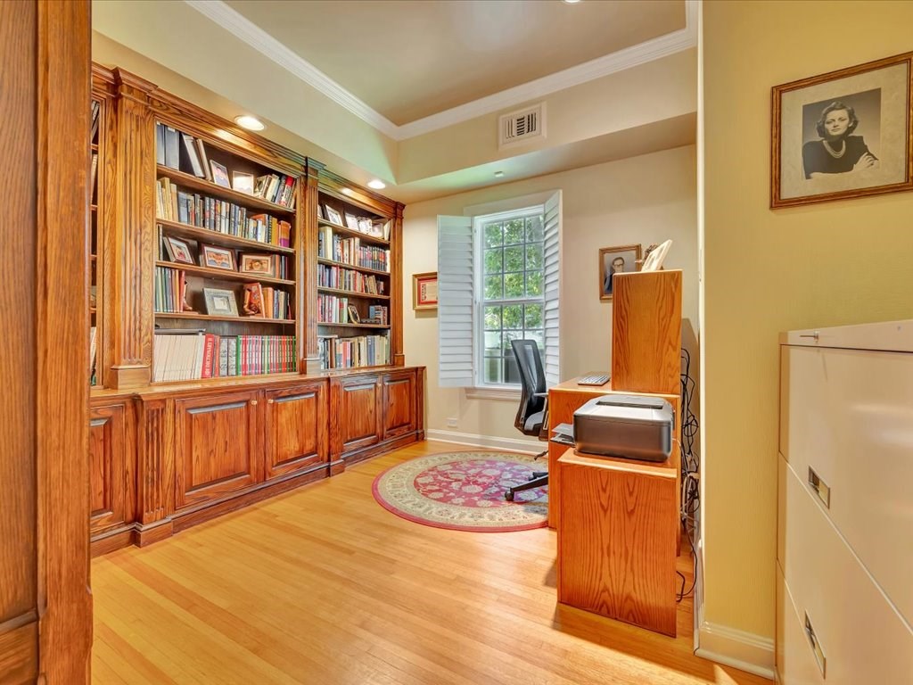 Experience timeless elegance and modern comfort in this beautifully preserved historic home on a corner lot shaded by mature oaks. Inside, 10-foot ceilings and custom-milled crown molding create a refined atmosphere. The chef's kitchen features a large island, prep sink, 5-burner gas range, double ovens, and a spacious walk-in pantry. Relax in the inviting living room with a wood-burning fireplace, hand-carved mantel, and plantation shutters. The main-level primary suite offers a walk-in shower, soaking tub, dual vanities, and a generous closet. Additional spaces include an office or optional fourth bedroom, a sunroom, and two upstairs bedrooms—one with a cozy sitting area. A decked attic provides ample storage. Outside, enjoy a detached two-car garage with upper storage, a 2020-built shed with 10-foot shelving, and a whole-house water filtration system. This exceptional home blends historic charm with modern convenience.