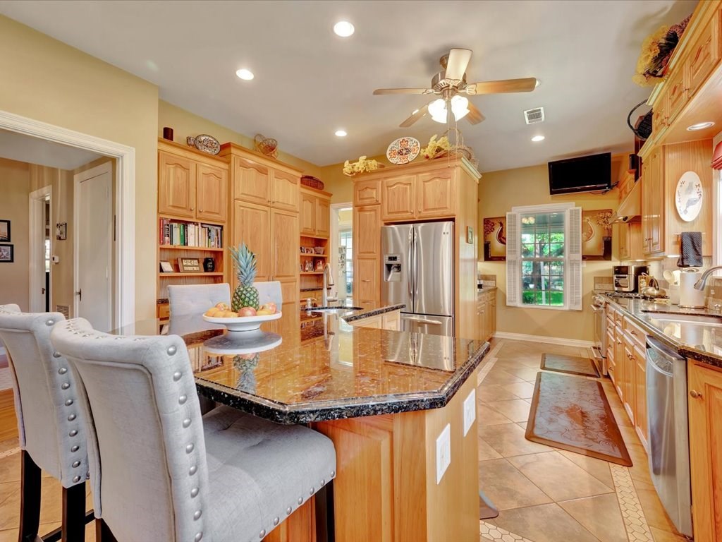 Ceiling Fan(s), Breakfast Bar, Island Kitchen, Woodburning Fireplace, Master - Lower Level, Pantry, Raised Ceiling
