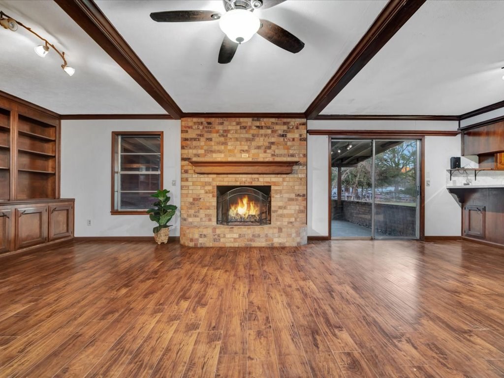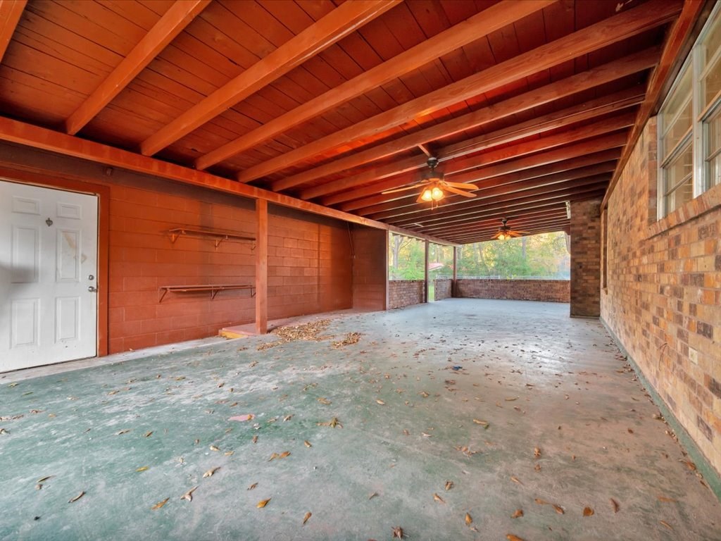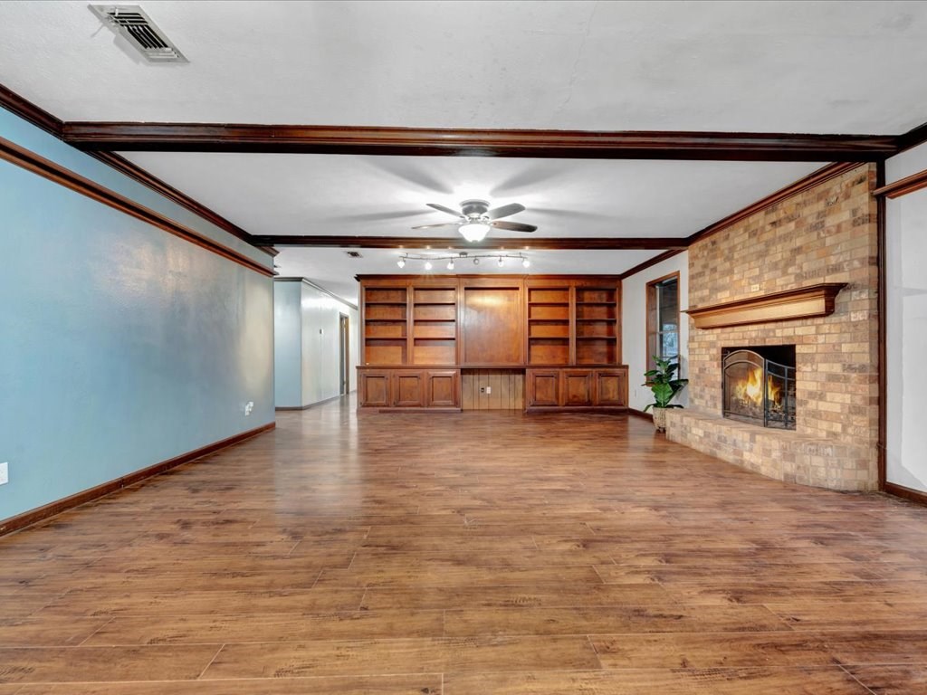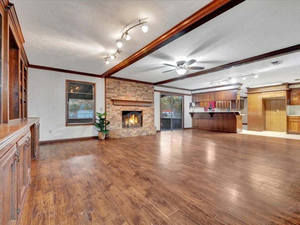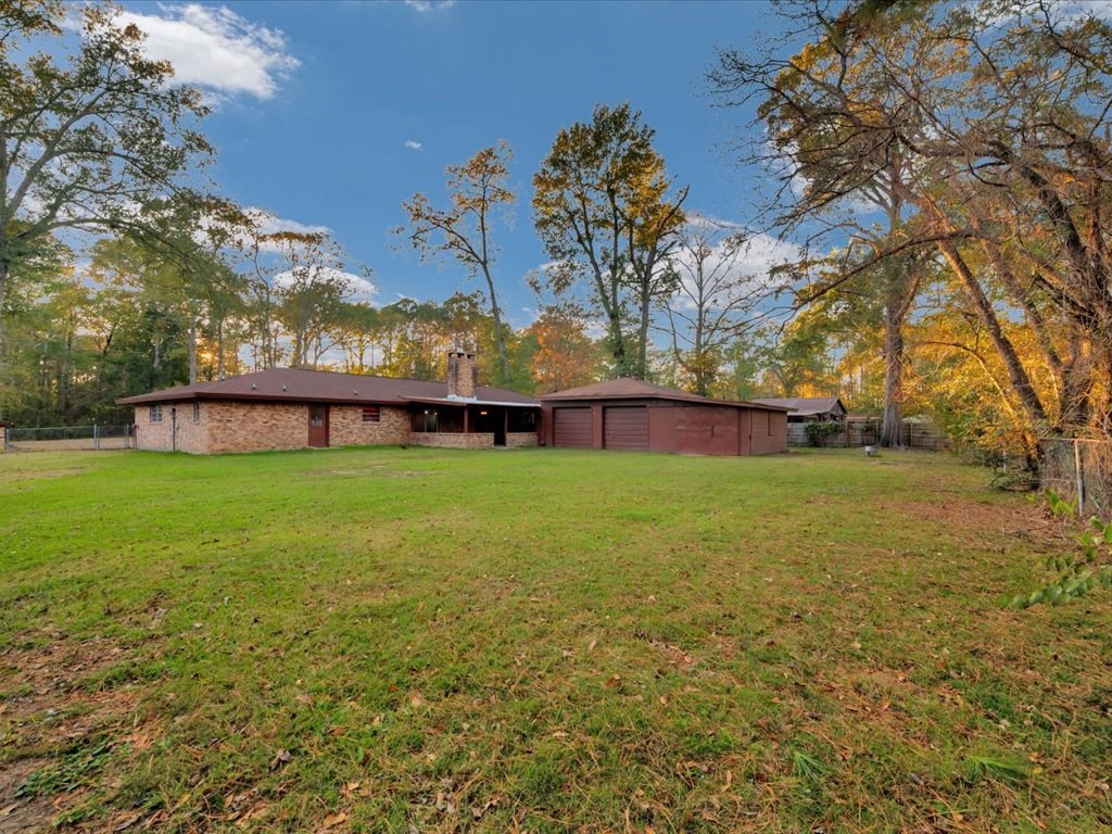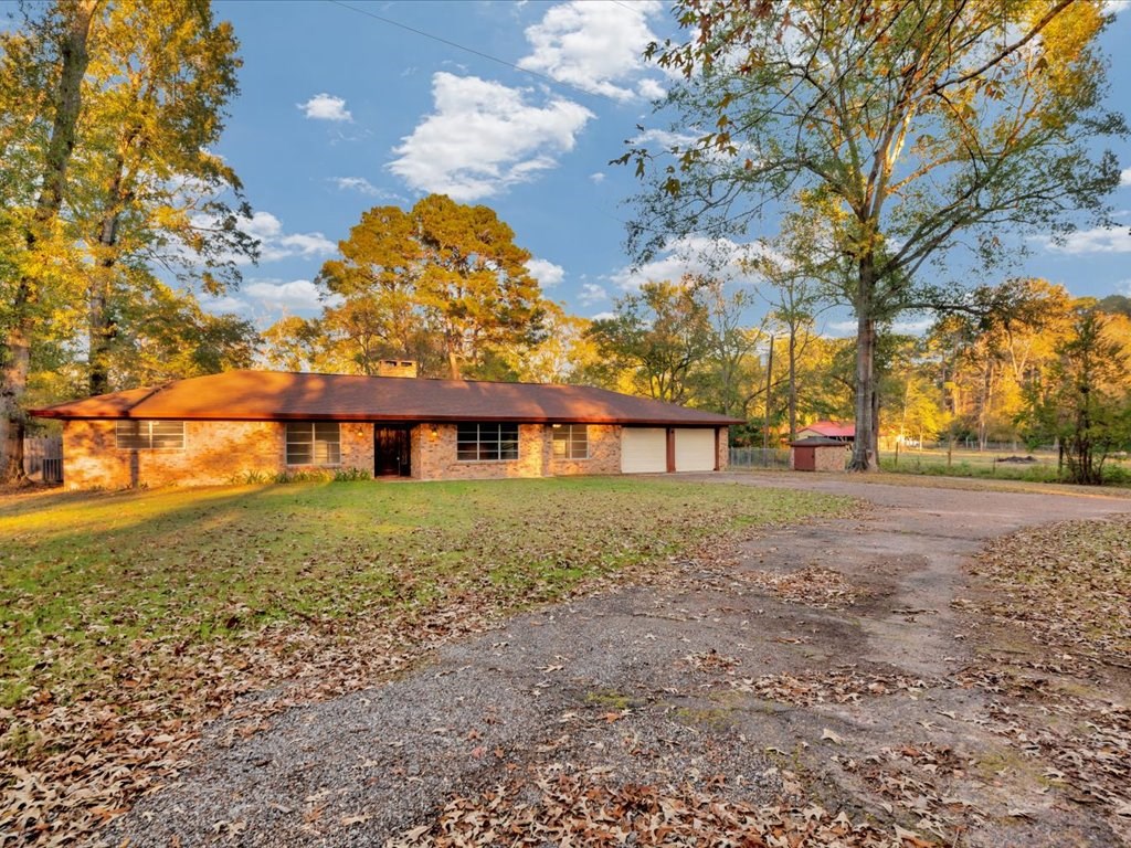 Experience true 70's charm at 407 Earl Shofner Road in Huntington, Texas, located across from Hanks Creek Park on Sam Rayburn. This inviting brick home features 3 bedrooms, 3 bathrooms, an office, and a dedicated dining room. The spacious living area showcases built-in bookcases, exposed wood beams, and a wood-burning fireplace. Enjoy classic touches like the stained-glass front door. Additional highlights include a 2-car attached garage, a detached 3-bay garage with a half bath, a large covered back patio, fenced yard, and a half-circle drive for ample parking. Roof is only 7 years old. Priced to sell and ready for your personal updates.