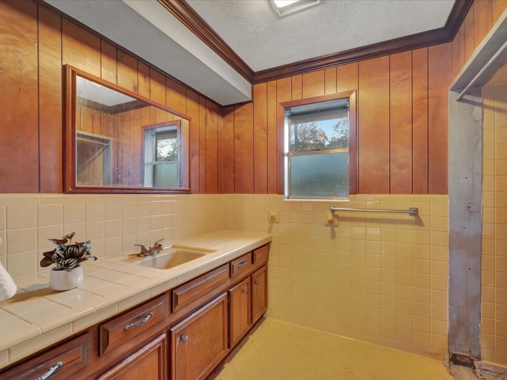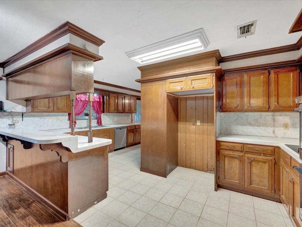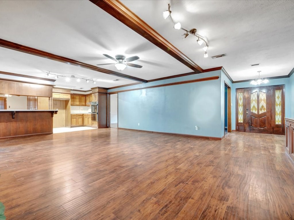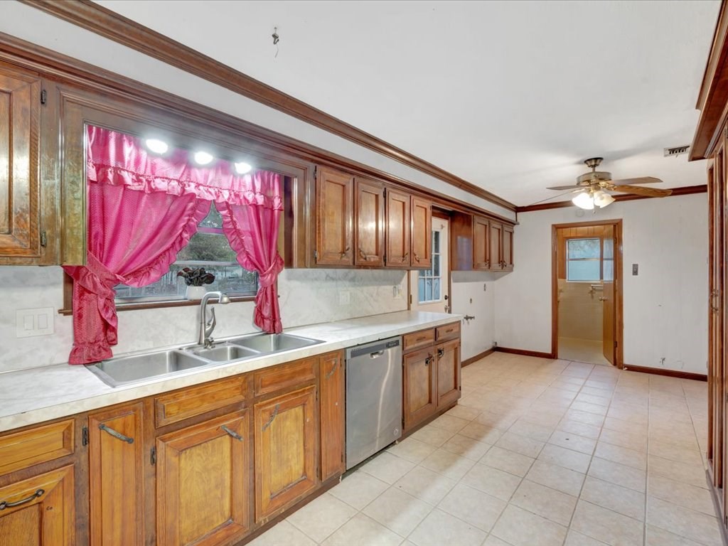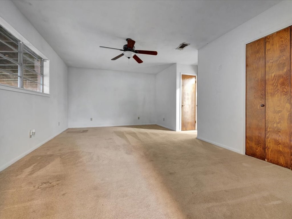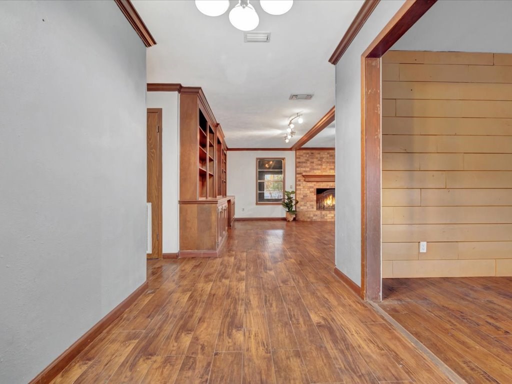 Experience true 70's charm at 407 Earl Shofner Road in Huntington, Texas, located across from Hanks Creek Park on Sam Rayburn. This inviting brick home features 3 bedrooms, 3 bathrooms, an office, and a dedicated dining room. The spacious living area showcases built-in bookcases, exposed wood beams, and a wood-burning fireplace. Enjoy classic touches like the stained-glass front door. Additional highlights include a 2-car attached garage, a detached 3-bay garage with a half bath, a large covered back patio, fenced yard, and a half-circle drive for ample parking. Roof is only 7 years old. Priced to sell and ready for your personal updates.