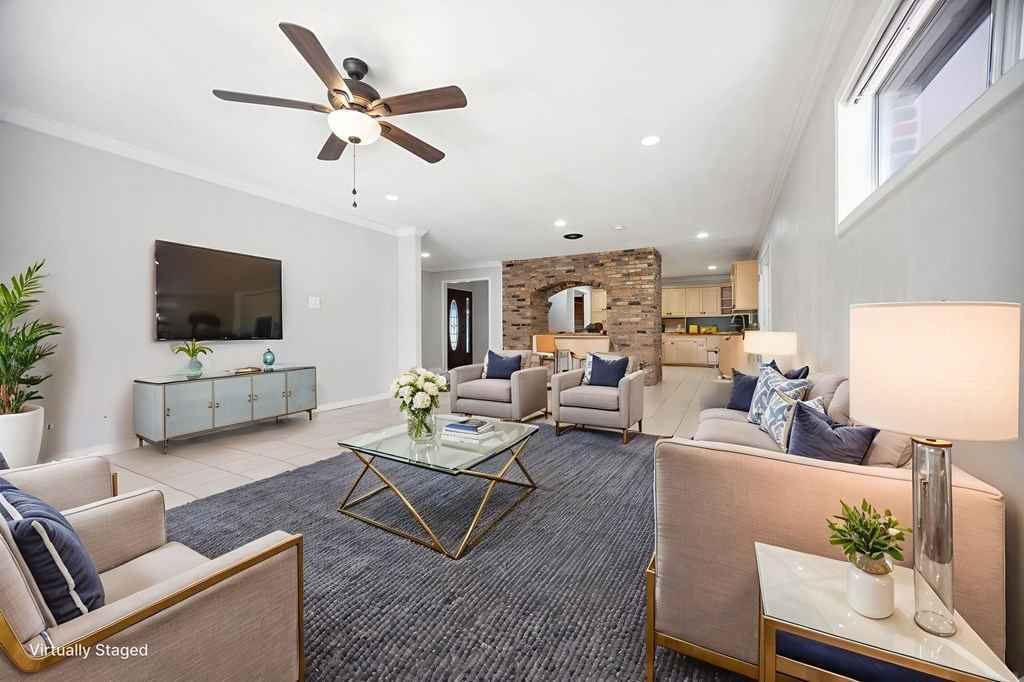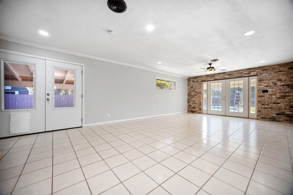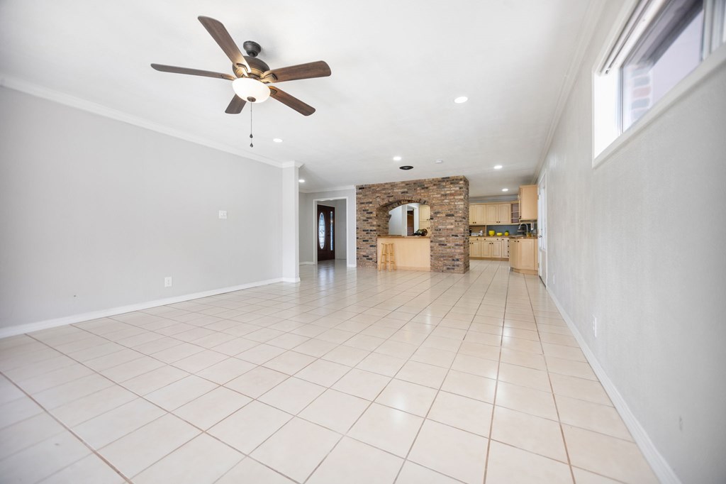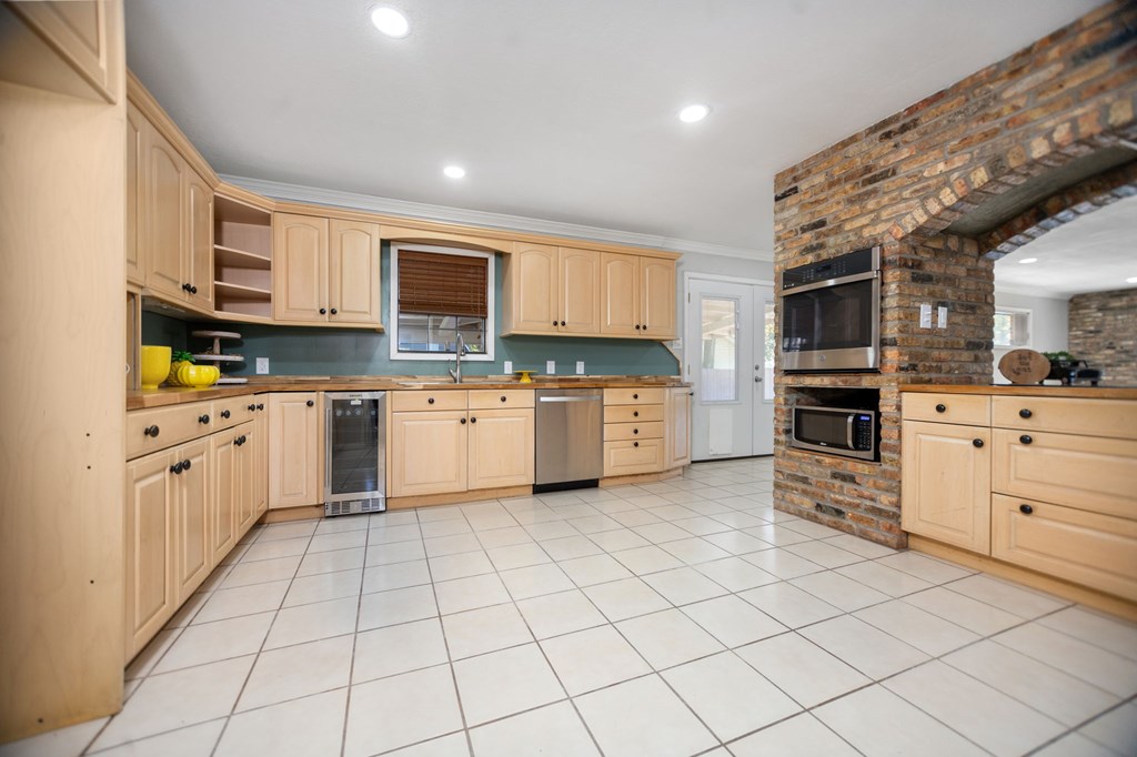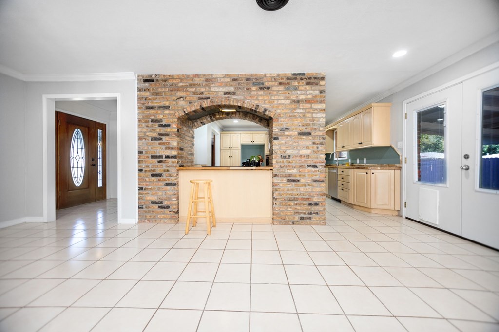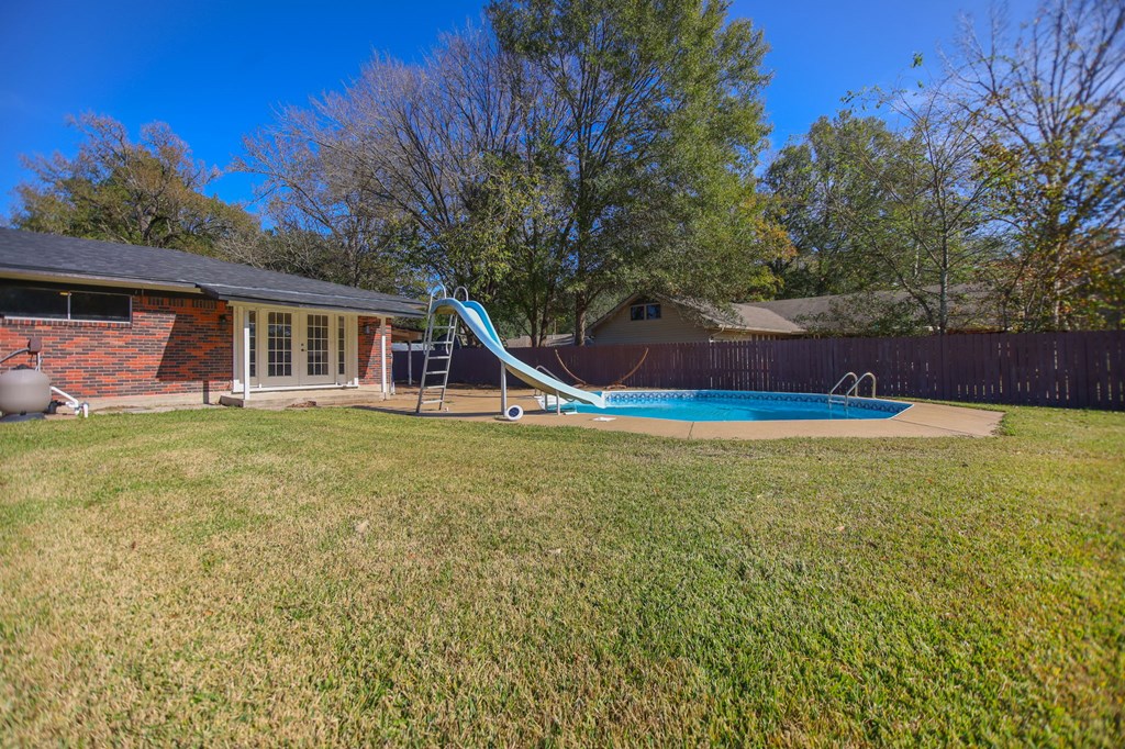 Beautifully updated 2,663 sqft home on a double lot with 4 bedrooms, 2 full baths, and an inviting open concept layout. Enjoy both a cozy living room and a large family room. The kitchen features stunning exposed arched brick, floating shelves, and new stove, oven, dishwasher, and countertops. Outdoor spaces include an in-ground pool, spacious covered patio, and a workshop on slab with electricity. Updates include a new roof, garage door, lighting with added recessed lights, ceiling fans, flooring, fresh paint. Guest bath offers new flooring, toilet, and shower/tub combo. Primary bath features a new shower, flooring, sinks, and vanity lighting. New vinyl pool pump and liner. Move-in ready with exceptional indoor and outdoor living!