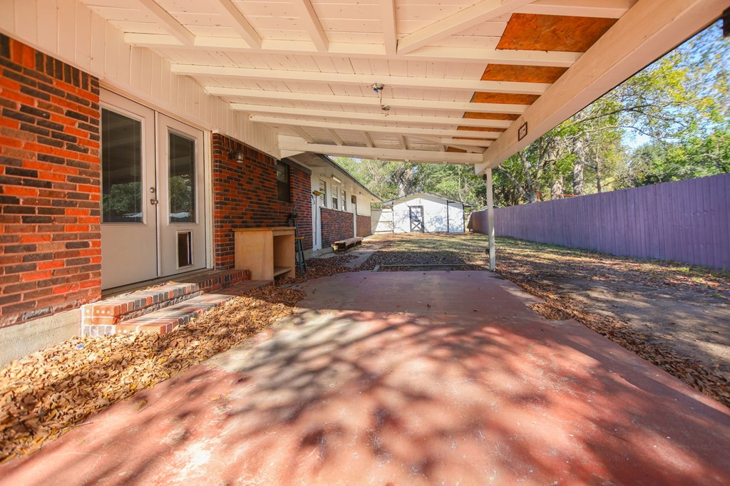 Exterior Features: Covered Patio, Workshop, Outbuilding on Slab