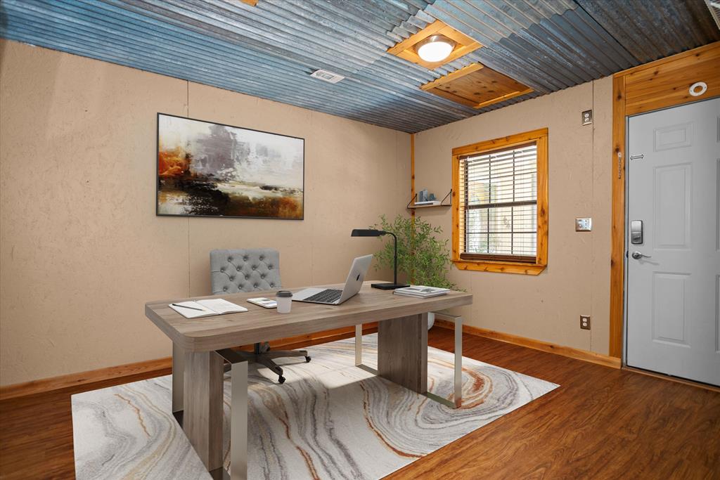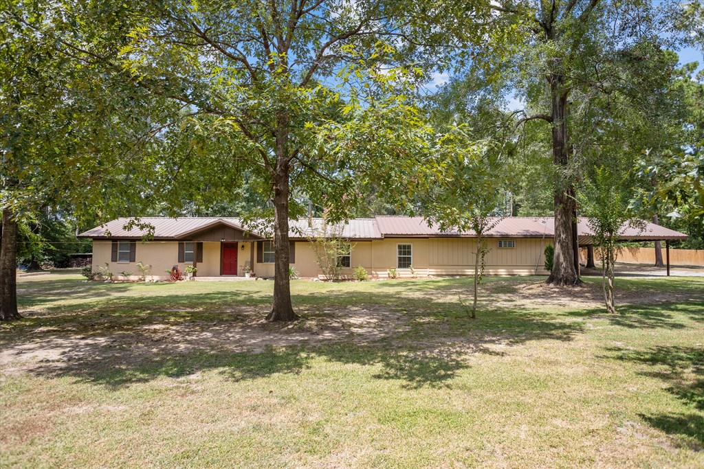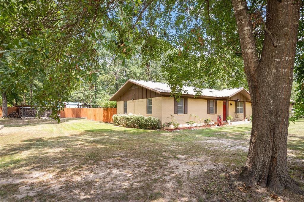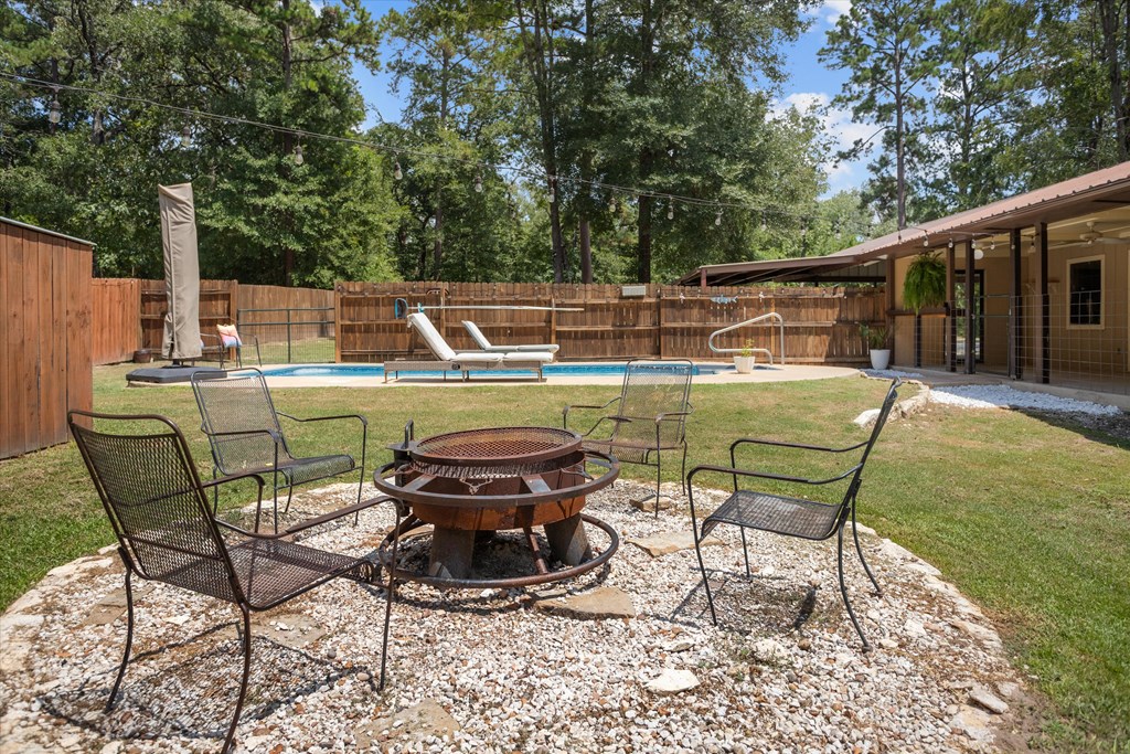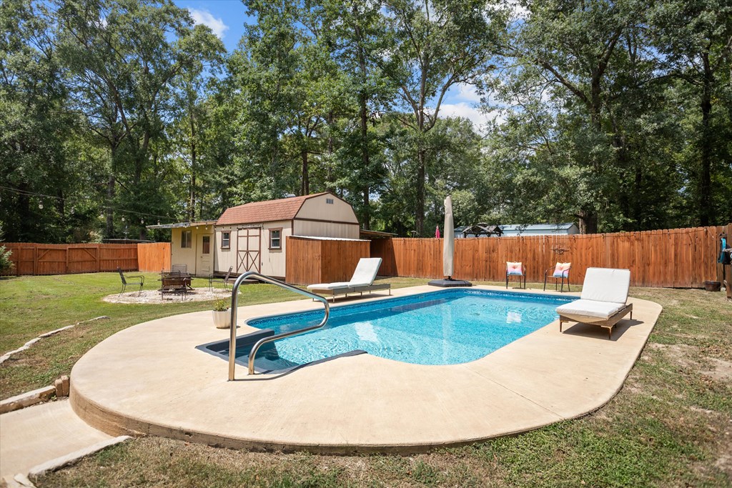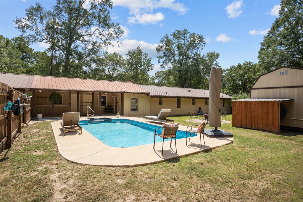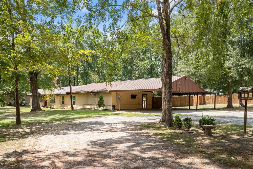 New Price! This distinctive home on 1.218 acres offers a refreshing lifestyle with its generous interior and impressive outdoor amenities. The layout includes two living and two dining areas, with a wood-burning stove providing a comforting focal point. The true highlight is the outdoor haven, accessed conveniently from the attached carport to a covered patio with a built-in bar overlooking the refreshing vinyl-lined pool. A wire barrier and fencing provide enhanced security. The backyard also features a firepit patio, a workshop, and a chicken coop. A dedicated, multi-use space with two separate entrances is perfect for a home office or guest suite and includes a built-in safe. A 50-amp RV hookup under the carport and a gazebo with blooming grapevines further underscore its unique features. This is a truly distinctive home where the features and the land are the main event.