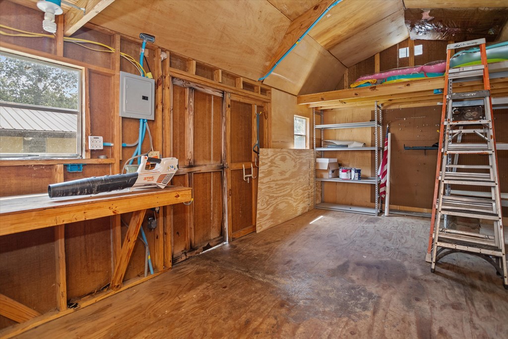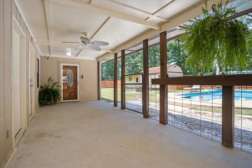 Exterior Features: Sprinkler, Patio, Covered Patio, Covered Front Porch, Pool, Fenced Yard, Workshop, Gazebo, Storage Shed