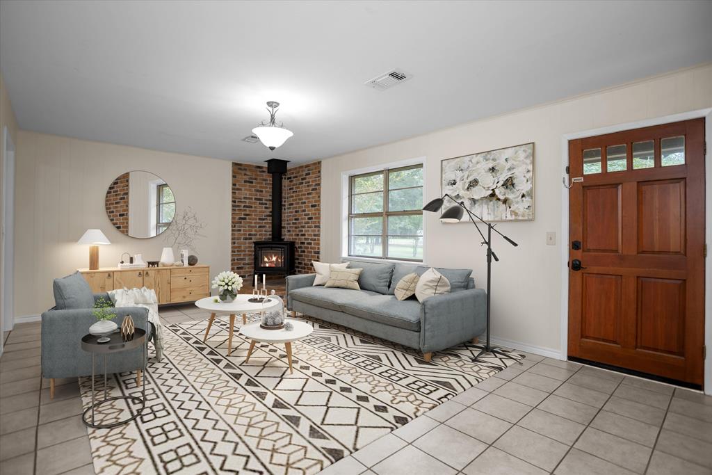 Interior Features Double Pane Windows, Smoke Detector, Indirect Lighting, Ceiling Fan(s), Woodburning Fireplace, Blinds