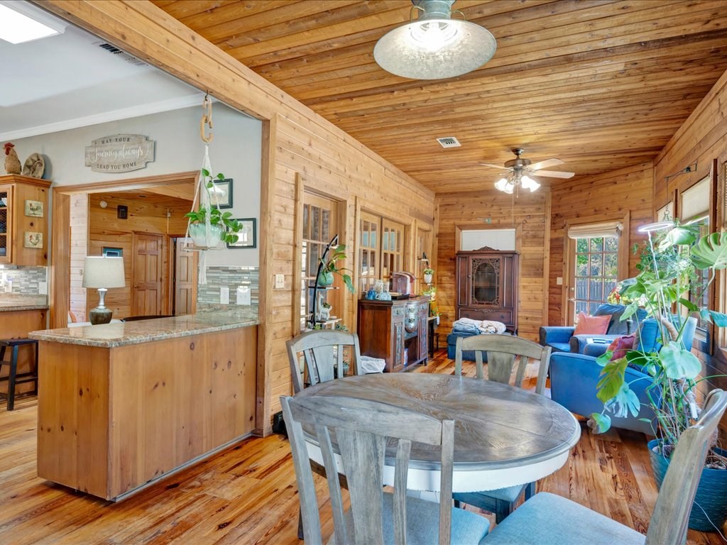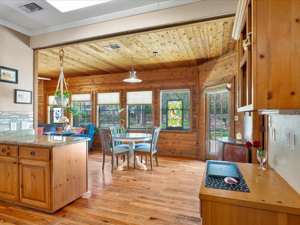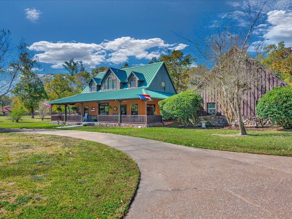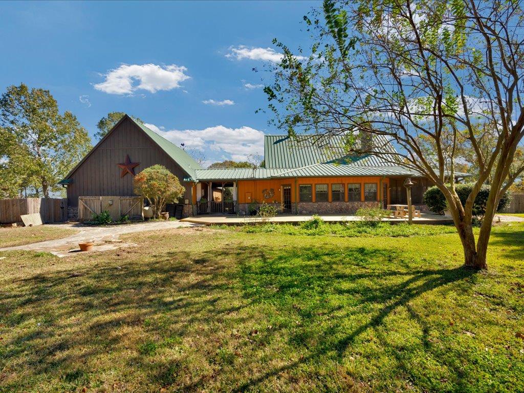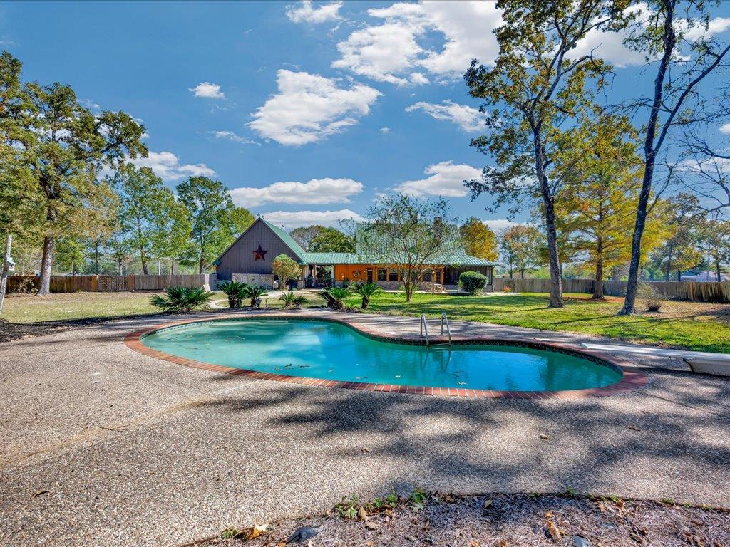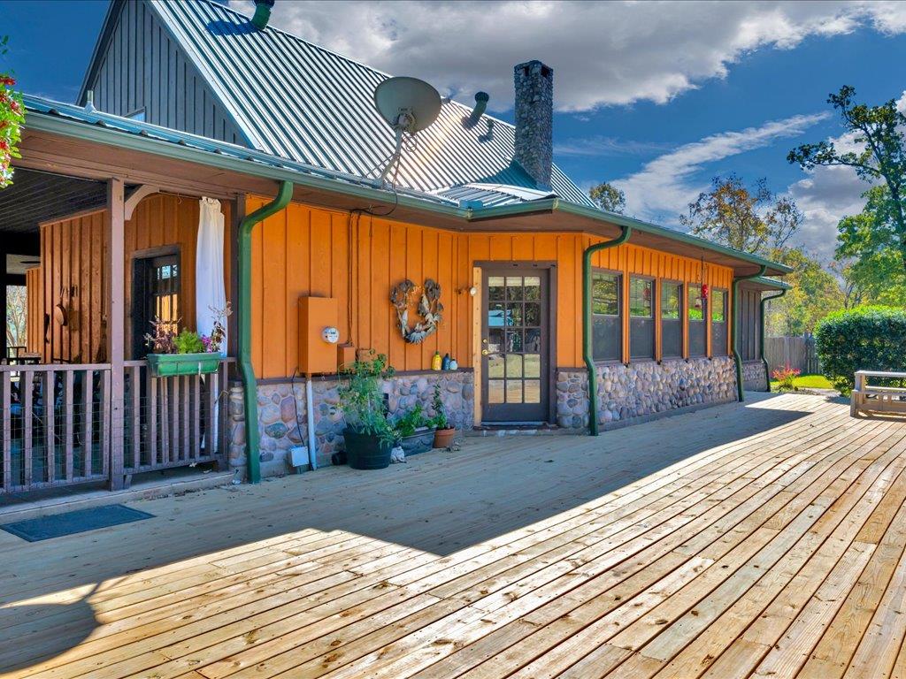 Great home on over 2 acres on S. Chestnut, this exceptional two-story rustic home blends timeless character with modern updates. It features a durable metal roof and a welcoming wraparound porch. Inside, charming built-ins and a cozy fireplace enhance the traditional appeal. The layout includes a sunroom and a deck overlooking the incredible backyard oasis, complete with a pool. A unique bonus room above the garage offers flexible space. Further expanding the possibilities, a detached storage shed is perfect for transforming into a "man cave" or "she shed." This property masterfully combines rustic tranquility with versatile living and entertaining spaces, all on a sprawling, private lot.