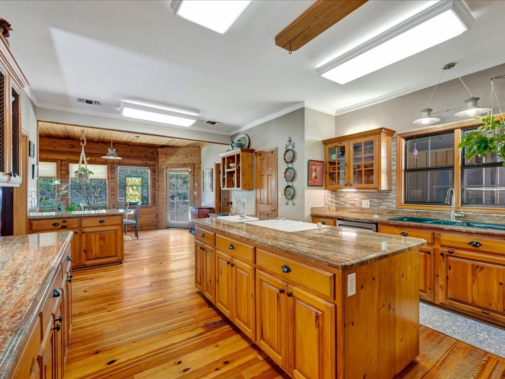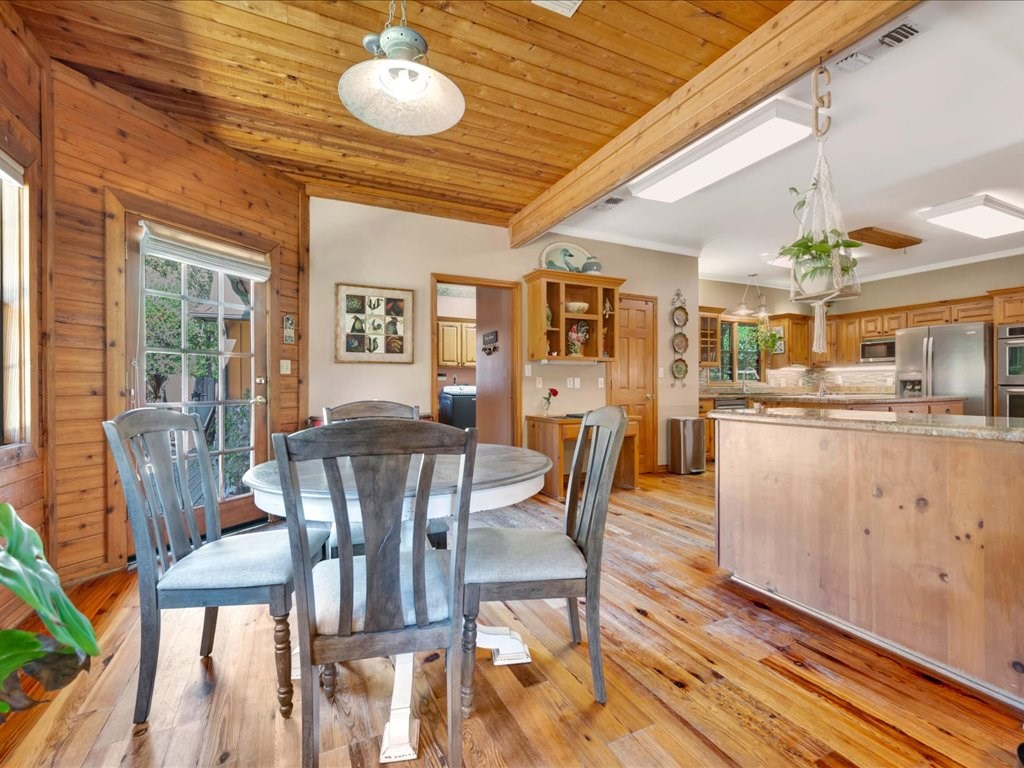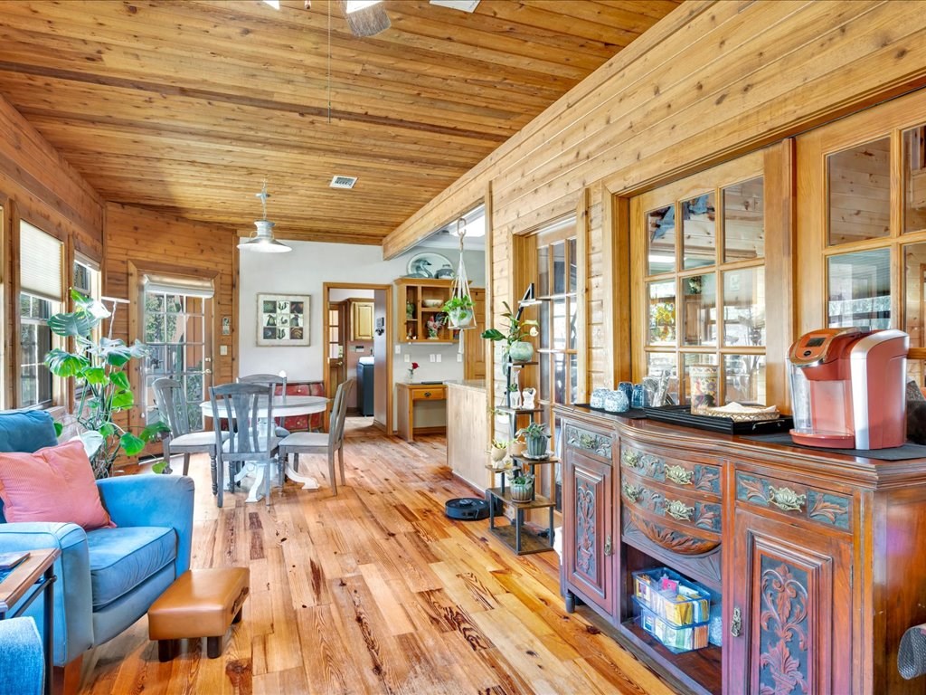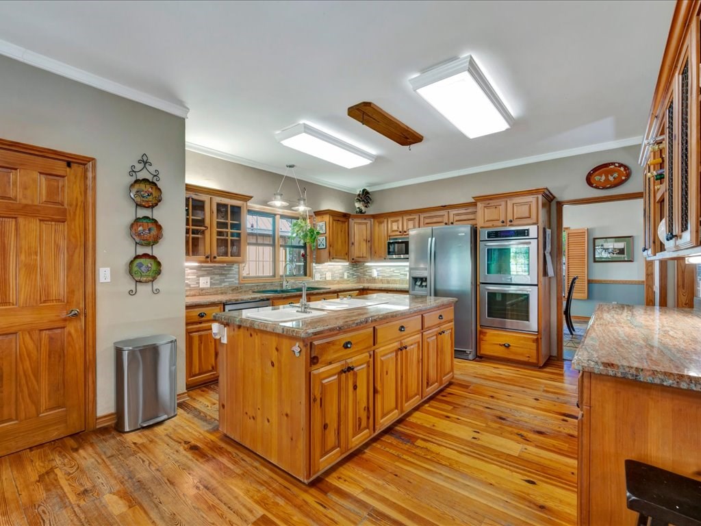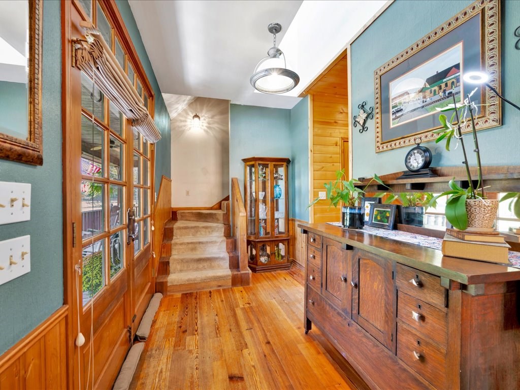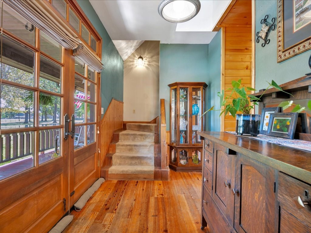 Great home on over 2 acres on S. Chestnut, this exceptional two-story rustic home blends timeless character with modern updates. It features a durable metal roof and a welcoming wraparound porch. Inside, charming built-ins and a cozy fireplace enhance the traditional appeal. The layout includes a sunroom and a deck overlooking the incredible backyard oasis, complete with a pool. A unique bonus room above the garage offers flexible space. Further expanding the possibilities, a detached storage shed is perfect for transforming into a "man cave" or "she shed." This property masterfully combines rustic tranquility with versatile living and entertaining spaces, all on a sprawling, private lot.