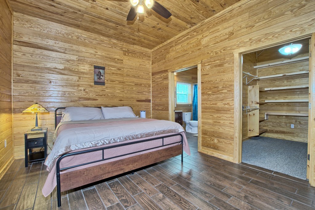 TX sized Barndo on 2.763 acres overlooking Toledo Bend Lake! If you're looking to RETIRE or INVEST, this gorgeous 3800 sq.ft. lake house is priced to sell. The home features 5B/3B plus 4 built-in twin-XL bunk beds. Spacious kitchen/dining/living area opens onto a lg covered back patio. Kitchen features beautiful quartz countertops, custom cabinets, large kitchen island, huge walk-in pantry and 2 full size ovens. Two bedroms, 2 full baths and laundry room are on 1st floor. Upstairs are 3 bedrooms, full bathroom, built-in bunk beds, lg entertainment area, 3rd floor bonus loft and lg covered deck accessed through double French doors. Outside you will enjoy panoramic lake views, picturesque skies, and eagles soaring by. The house also features a large firepit area, extra sitting deck, and large pond. The large double wide, double deep garage has attached carport and unfinished 2nd floor that can easily be transformed into additional 768 sq.ft. of living space. Furniture negotiable.