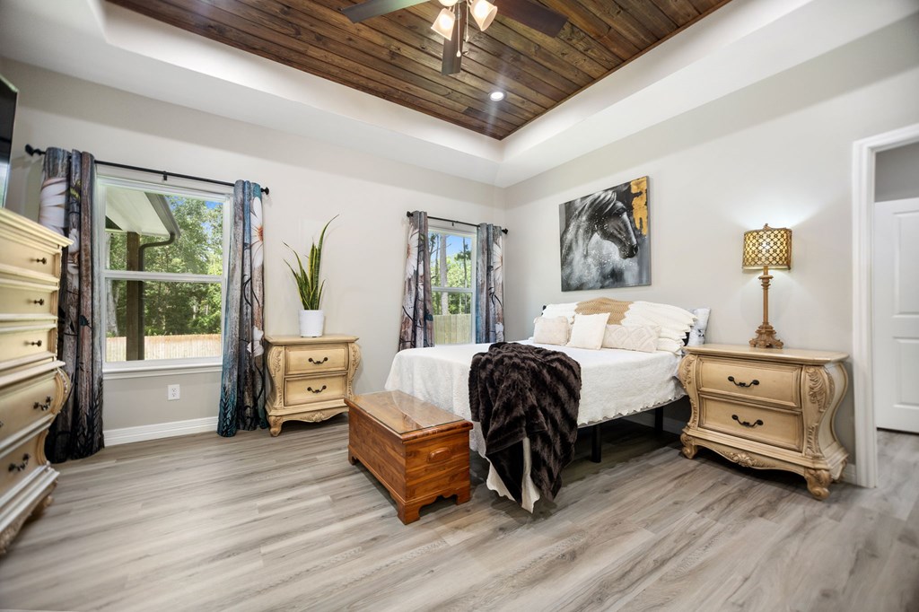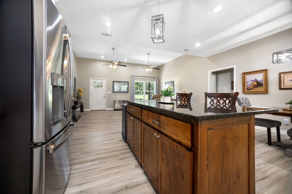 Smoke Detector, Ceiling Fan(s), Alarm System, Island Kitchen, Master - Lower Level, Boxed Ceiling, Pantry, Blinds