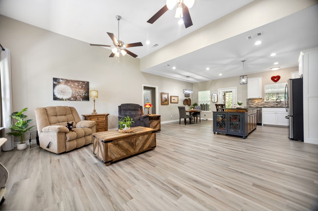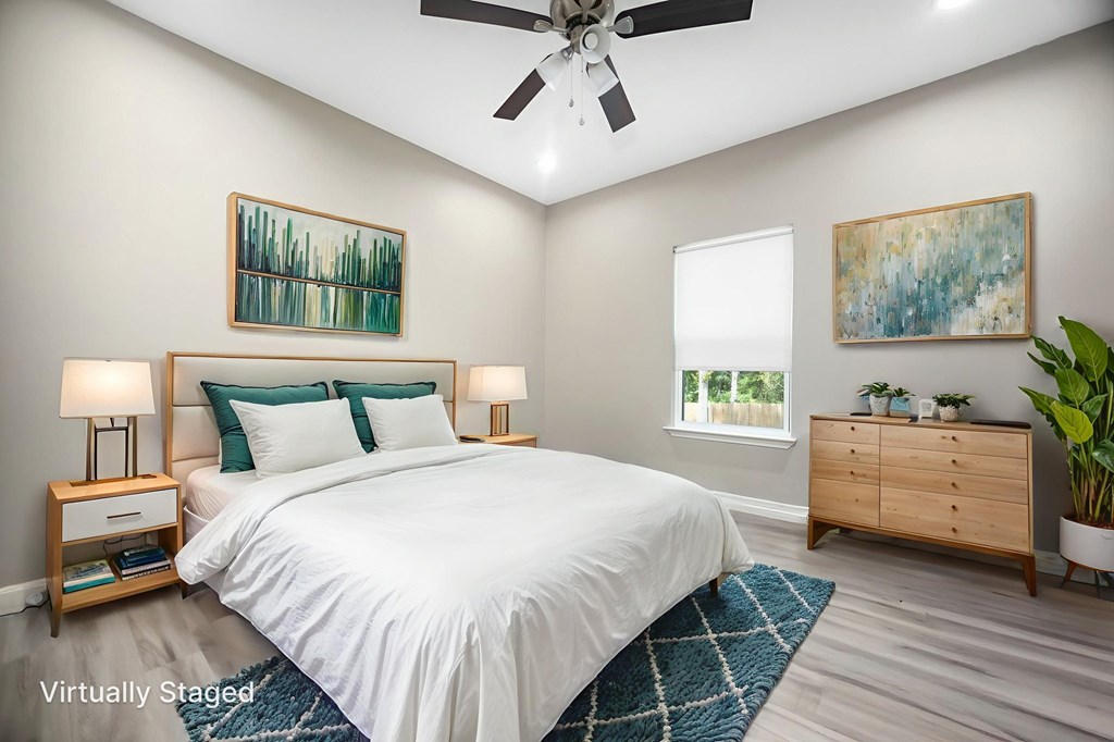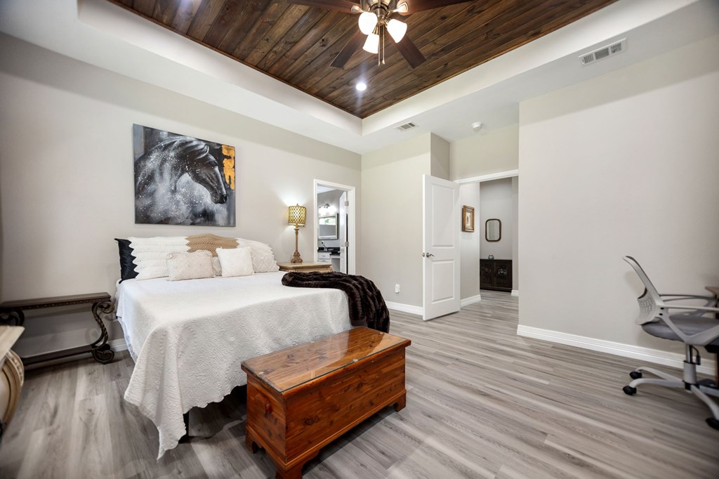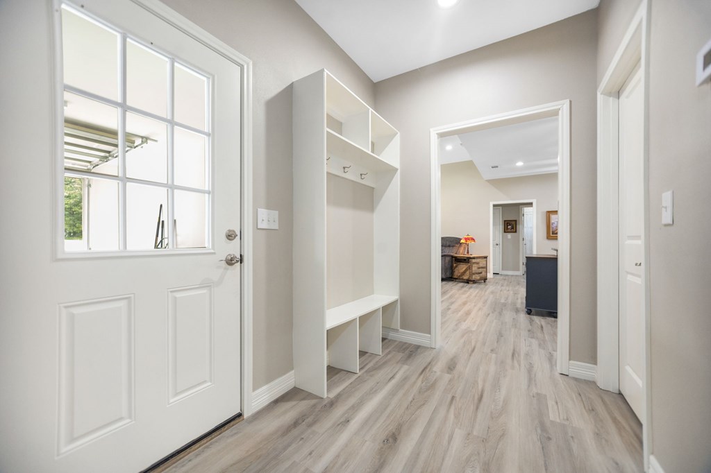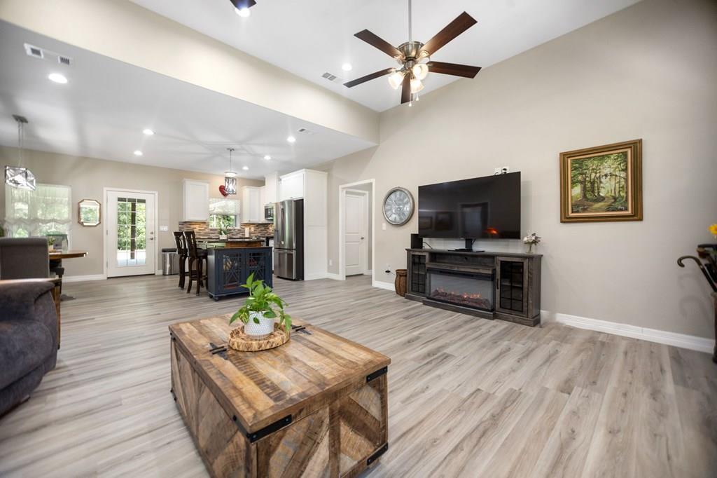 This open concept home was built late 2023 and has been gently lived in less than a year. The kitchen is a standout with its spacious island, stainless steel appliances, gas range and a walk-in pantry. Just off the kitchen, there's a mudroom leading to a large utility room with built-in cabinetry. The primary suite is elegant featuring wood-accented boxed ceilings, a large walk-in shower, and generous his-and-hers closets. Out back you will find the oversized covered patio with Bluetooth-controlled exterior lighting all ready for an outdoor kitchen for entertaining. The yard is big enough for all the kids and dogs and whatever else you want to add, it even extends beyond the fence. With energy-efficient features like spray foam insulation and a tankless water heater already in place, this home checks all the boxes. Better than new construction because it already has landscape, grass, privacy fence and window treatments. Call/text Nedra at 713-201-3100 to schedule your tour!