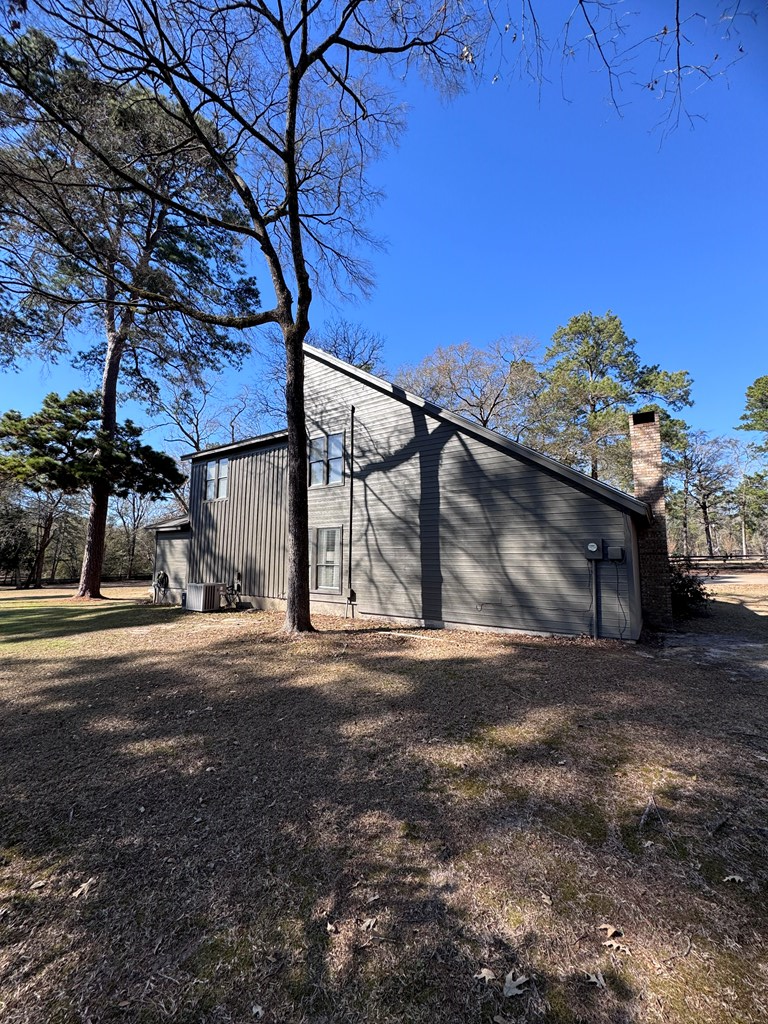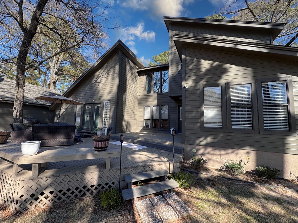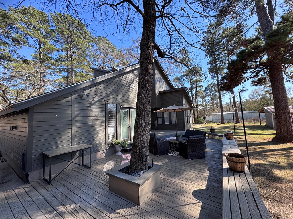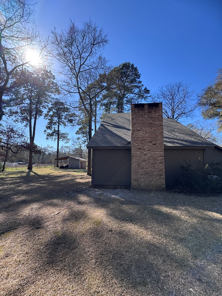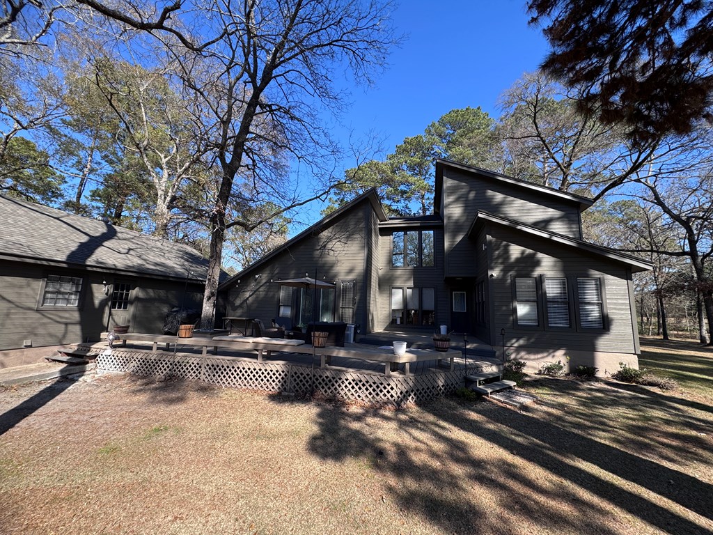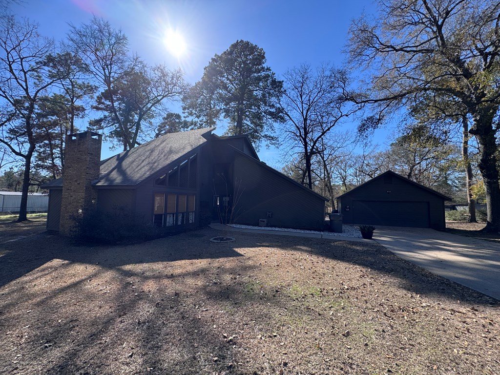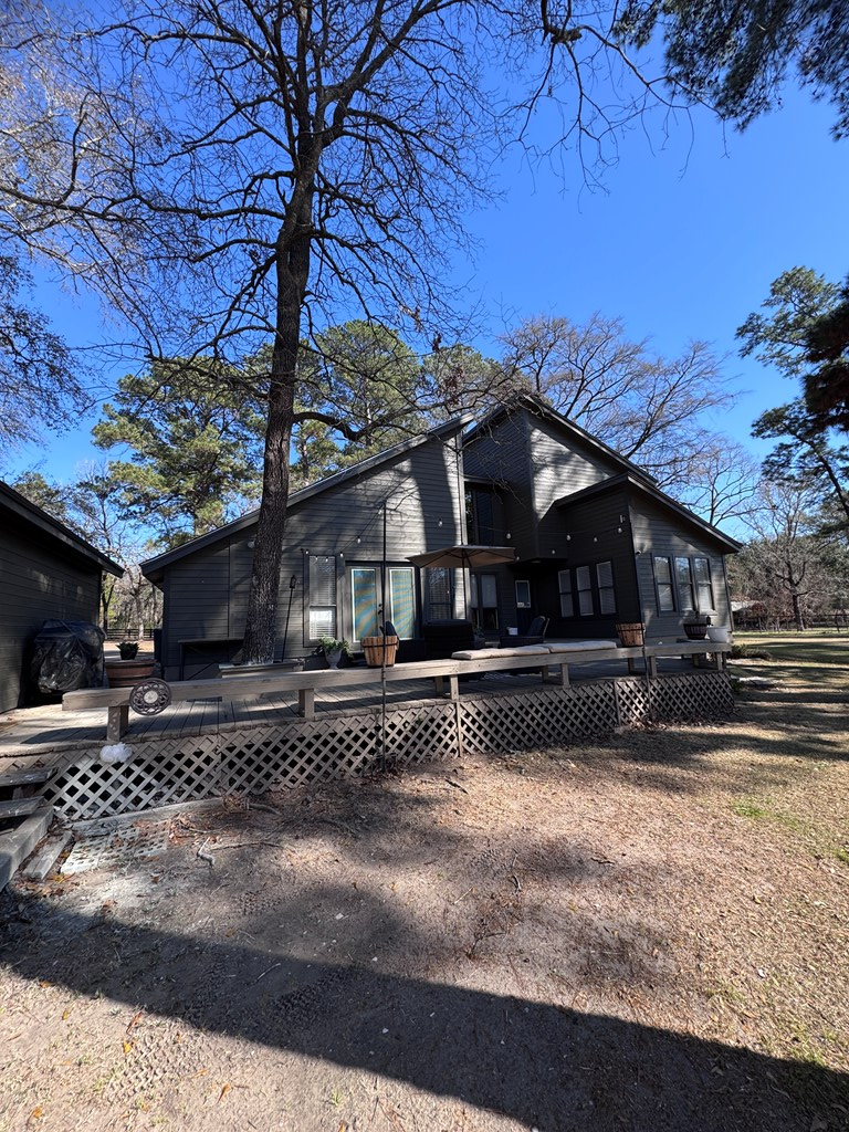 This unique, fully fenced 2 acre property offers exceptional space, privacy & thoughtful updates throughout. Recent improvements include a new roof on both the home + garage, a new HVAC unit, fresh interior/exterior paint, new flooring, granite countertops in the kitchen + both bathrooms, new sinks, updated lighting & a new tub in the primary bath. The spacious primary suite is located downstairs & features French doors that open to a large back deck with built-in bench seating: perfect for relaxing or entertaining. Also on the main level is an added fourth bedroom, ideal for a home office, craft room or flex space. Upstairs you'll find two additional bedrooms as well as a full bathroom. Additional highlights include high ceilings, abundant natural light, a wood burning fireplace, built-in bookcases, a pantry & walk-in closets providing excellent storage. Outside the property continues to impress with multiple insulated & cooled structures offering ample outdoor storage & versatility.