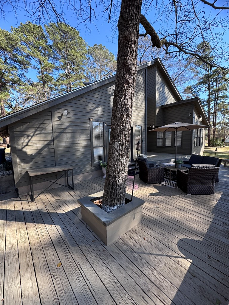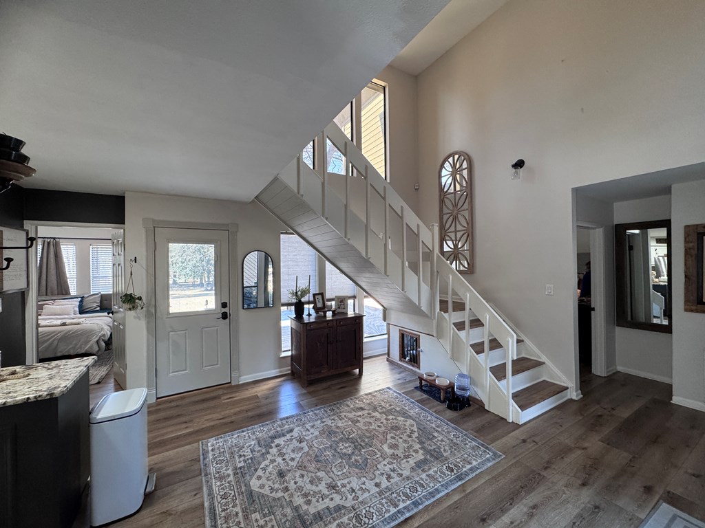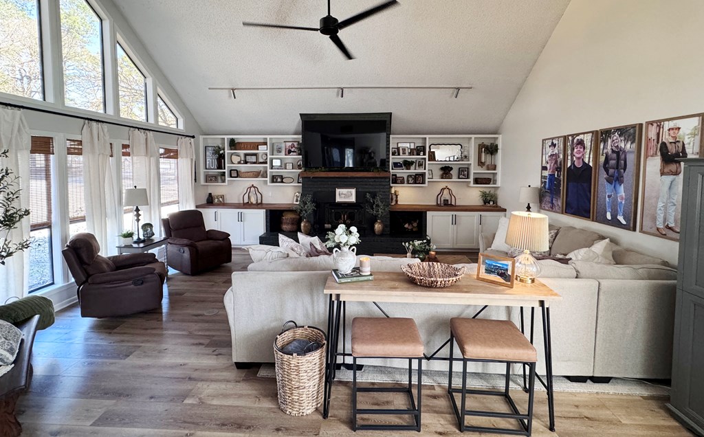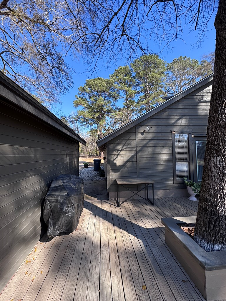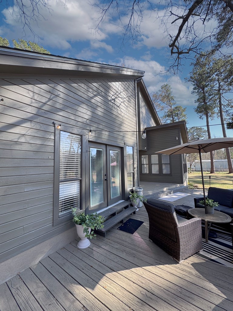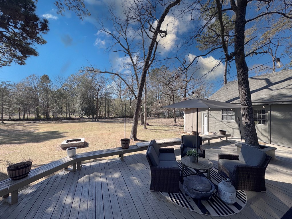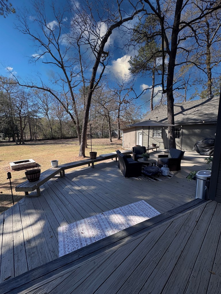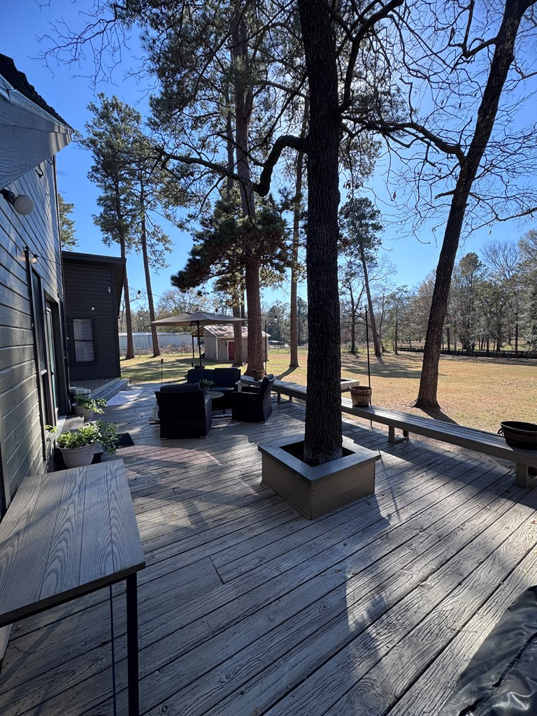 This unique, fully fenced 2 acre property offers exceptional space, privacy & thoughtful updates throughout. Recent improvements include a new roof on both the home + garage, a new HVAC unit, fresh interior/exterior paint, new flooring, granite countertops in the kitchen + both bathrooms, new sinks, updated lighting & a new tub in the primary bath. The spacious primary suite is located downstairs & features French doors that open to a large back deck with built-in bench seating: perfect for relaxing or entertaining. Also on the main level is an added fourth bedroom, ideal for a home office, craft room or flex space. Upstairs you'll find two additional bedrooms as well as a full bathroom. Additional highlights include high ceilings, abundant natural light, a wood burning fireplace, built-in bookcases, a pantry & walk-in closets providing excellent storage. Outside the property continues to impress with multiple insulated & cooled structures offering ample outdoor storage & versatility.