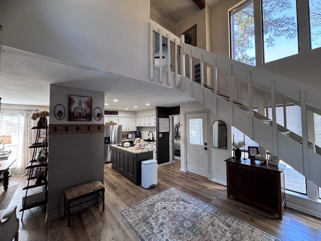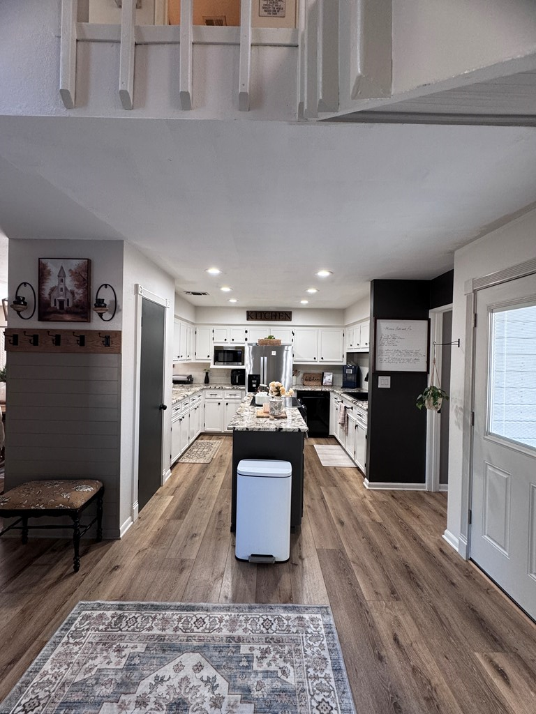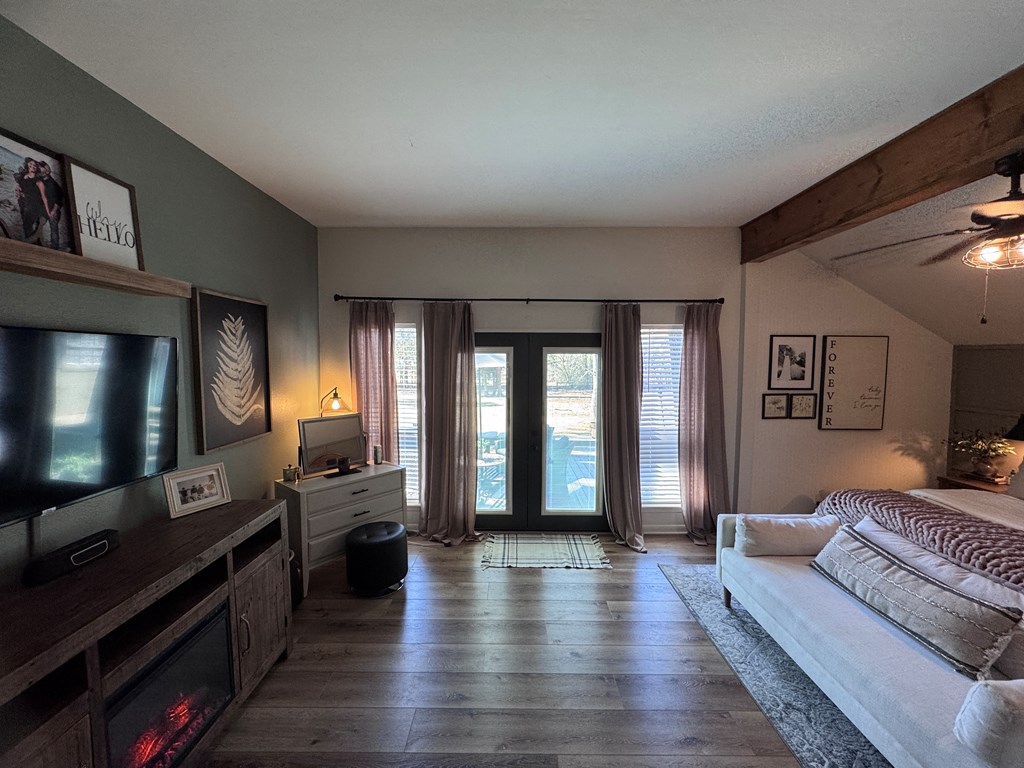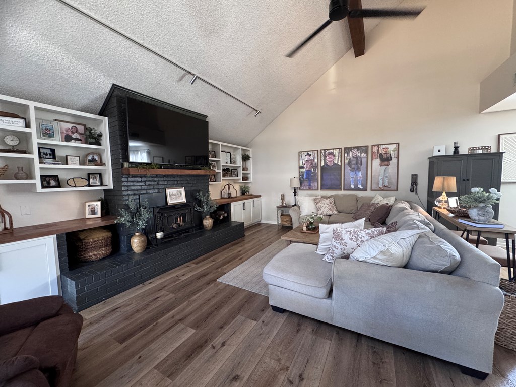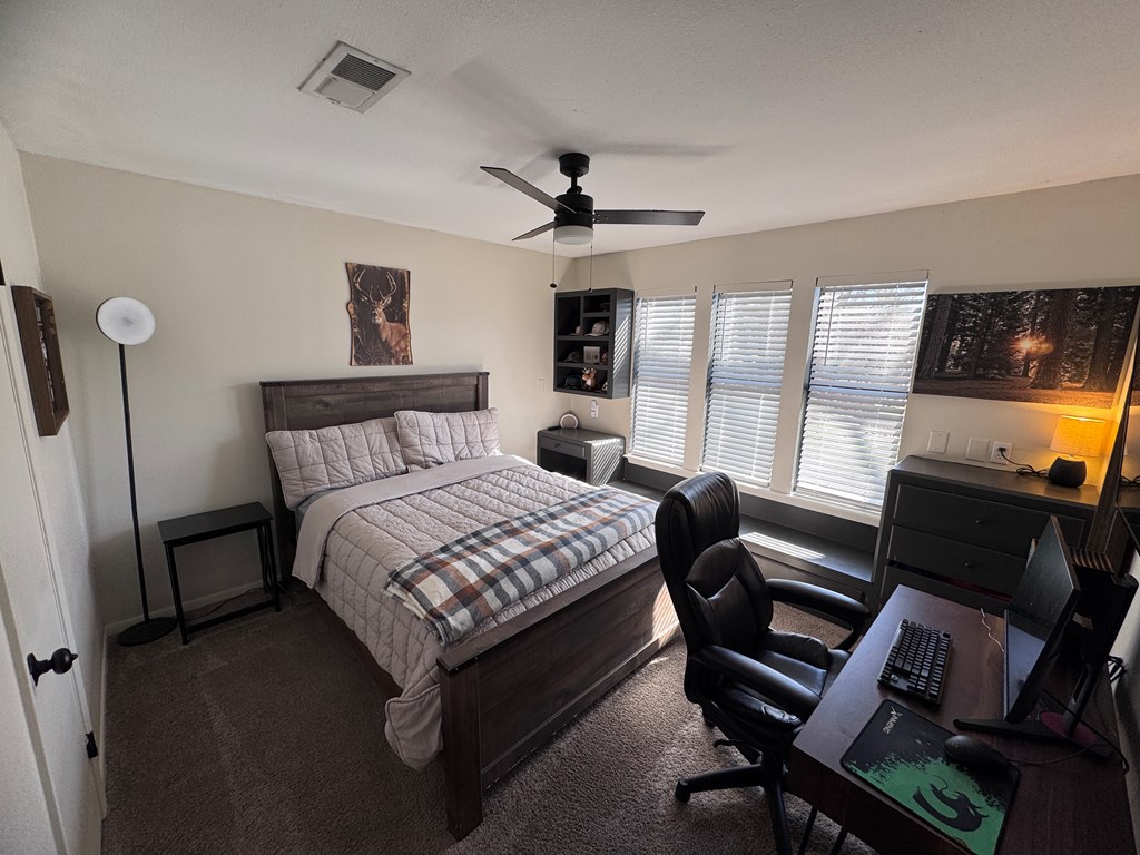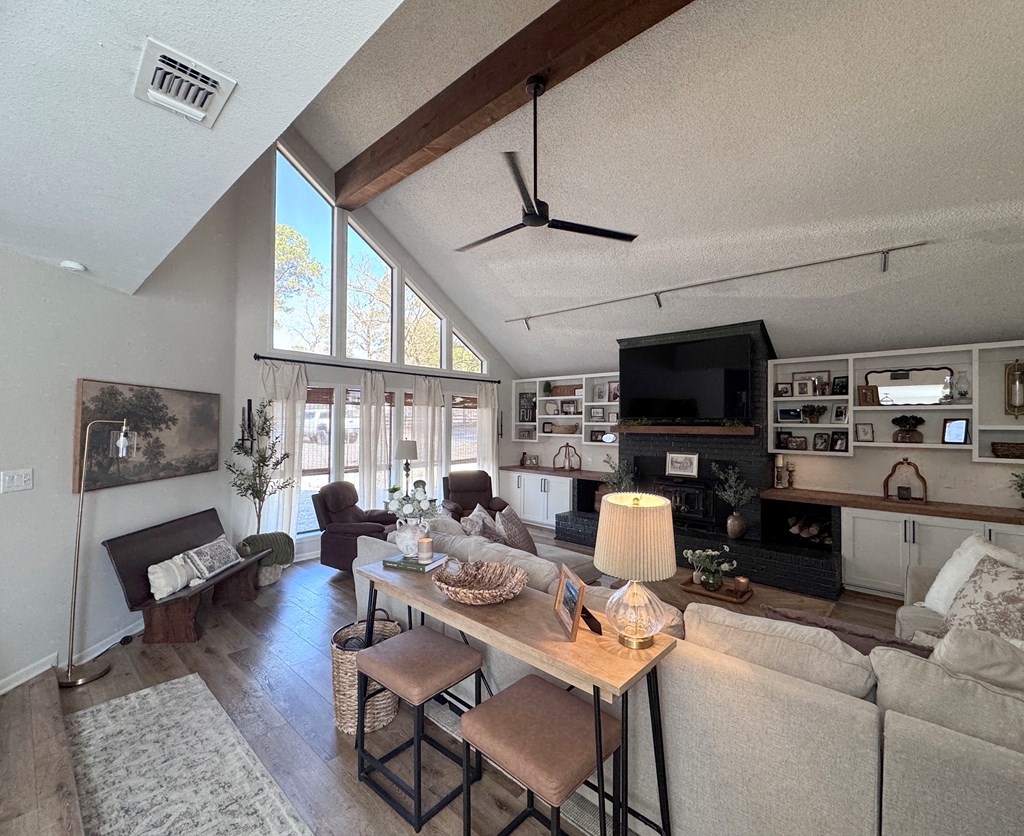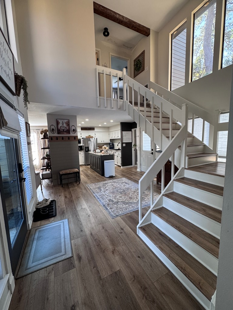 This unique, fully fenced 2 acre property offers exceptional space, privacy & thoughtful updates throughout. Recent improvements include a new roof on both the home + garage, a new HVAC unit, fresh interior/exterior paint, new flooring, granite countertops in the kitchen + both bathrooms, new sinks, updated lighting & a new tub in the primary bath. The spacious primary suite is located downstairs & features French doors that open to a large back deck with built-in bench seating: perfect for relaxing or entertaining. Also on the main level is an added fourth bedroom, ideal for a home office, craft room or flex space. Upstairs you'll find two additional bedrooms as well as a full bathroom. Additional highlights include high ceilings, abundant natural light, a wood burning fireplace, built-in bookcases, a pantry & walk-in closets providing excellent storage. Outside the property continues to impress with multiple insulated & cooled structures offering ample outdoor storage & versatility.
