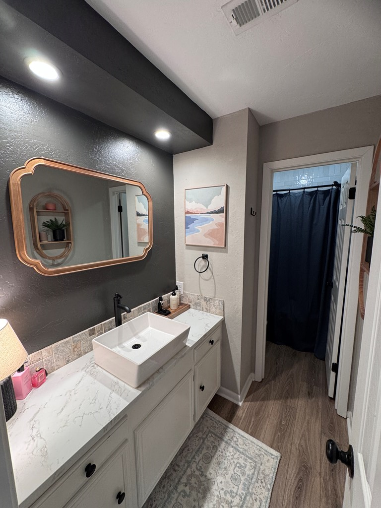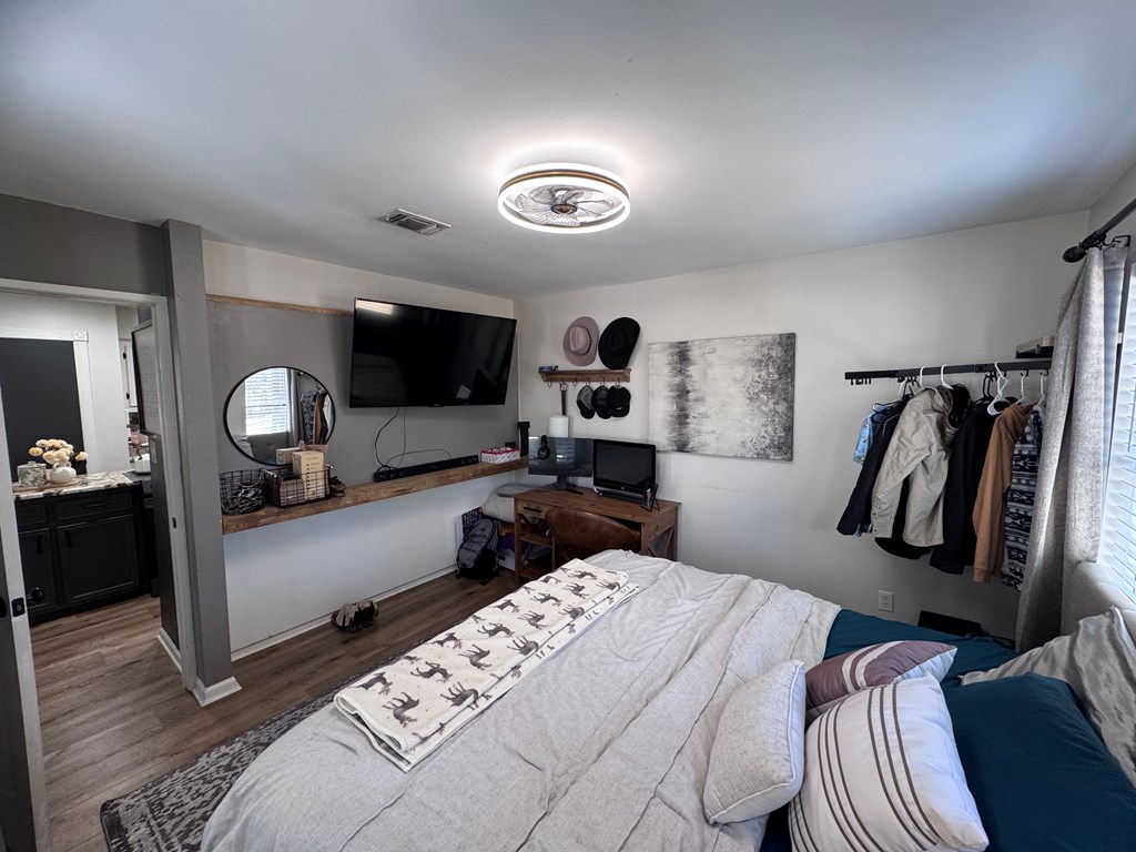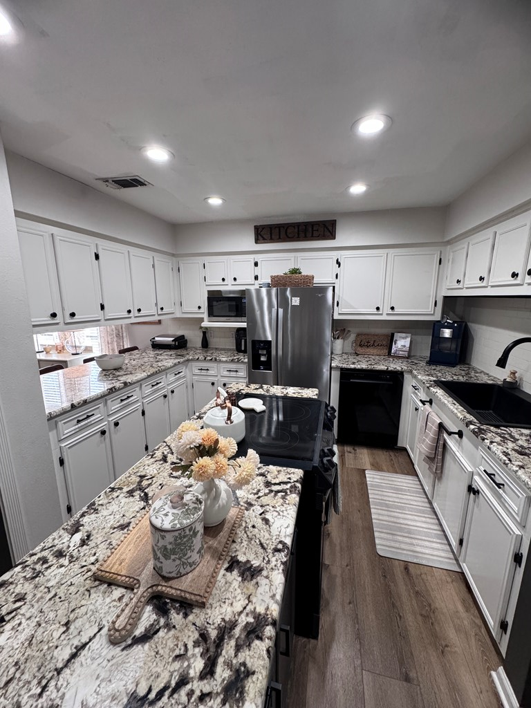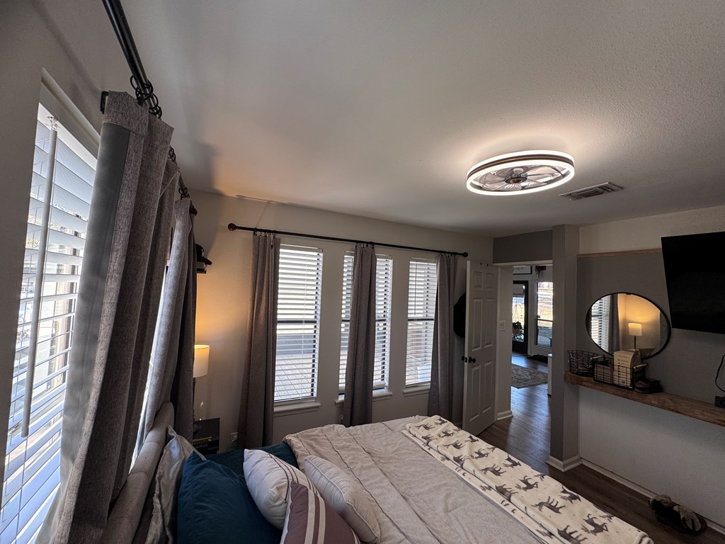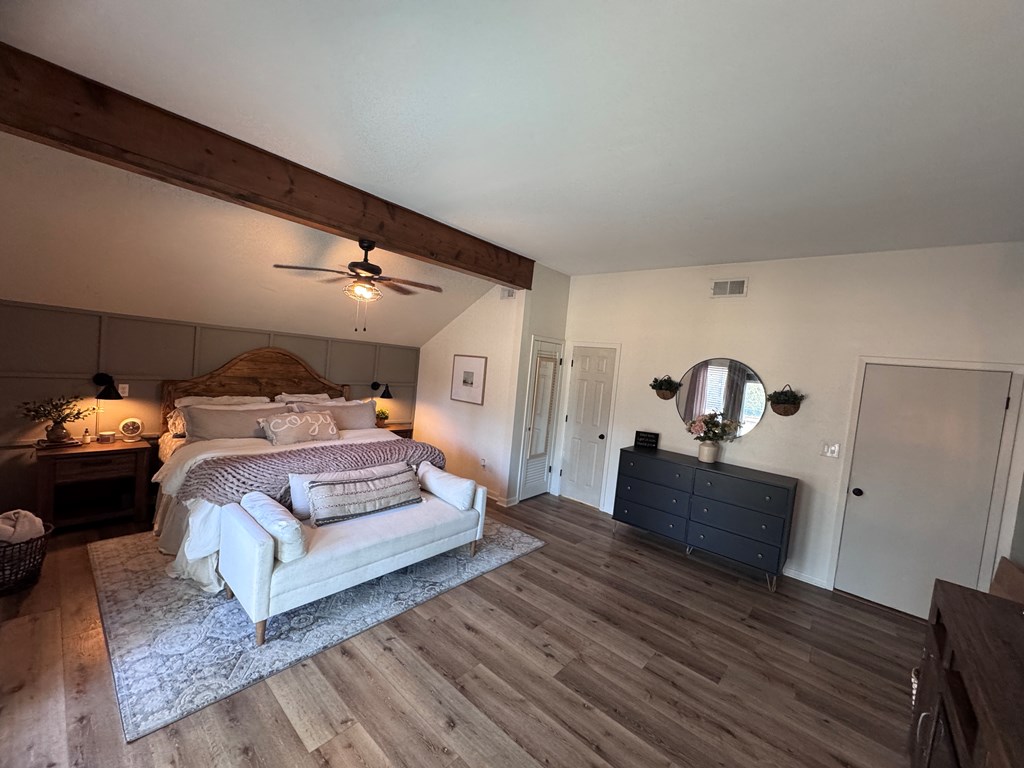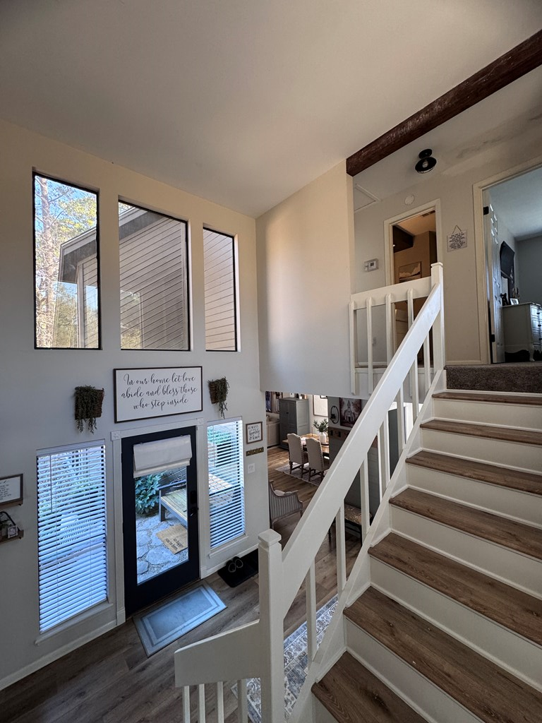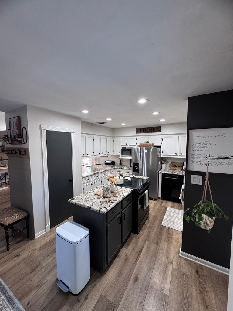 This unique, fully fenced 2 acre property offers exceptional space, privacy & thoughtful updates throughout. Recent improvements include a new roof on both the home + garage, a new HVAC unit, fresh interior/exterior paint, new flooring, granite countertops in the kitchen + both bathrooms, new sinks, updated lighting & a new tub in the primary bath. The spacious primary suite is located downstairs & features French doors that open to a large back deck with built-in bench seating: perfect for relaxing or entertaining. Also on the main level is an added fourth bedroom, ideal for a home office, craft room or flex space. Upstairs you'll find two additional bedrooms as well as a full bathroom. Additional highlights include high ceilings, abundant natural light, a wood burning fireplace, built-in bookcases, a pantry & walk-in closets providing excellent storage. Outside the property continues to impress with multiple insulated & cooled structures offering ample outdoor storage & versatility.