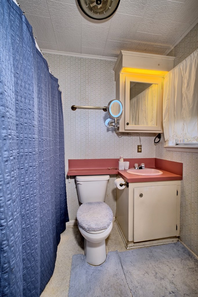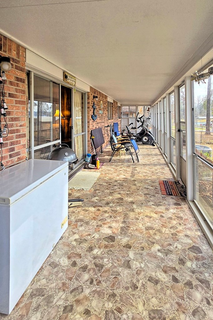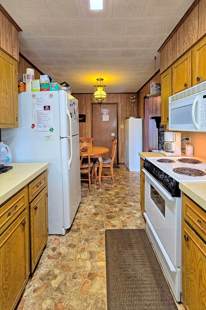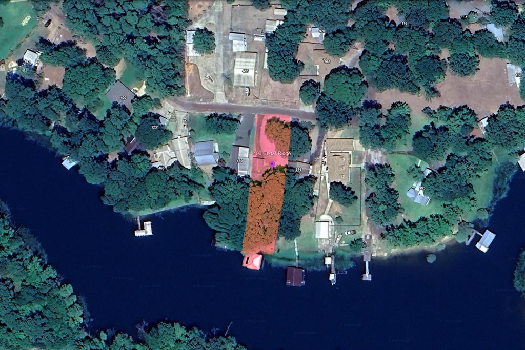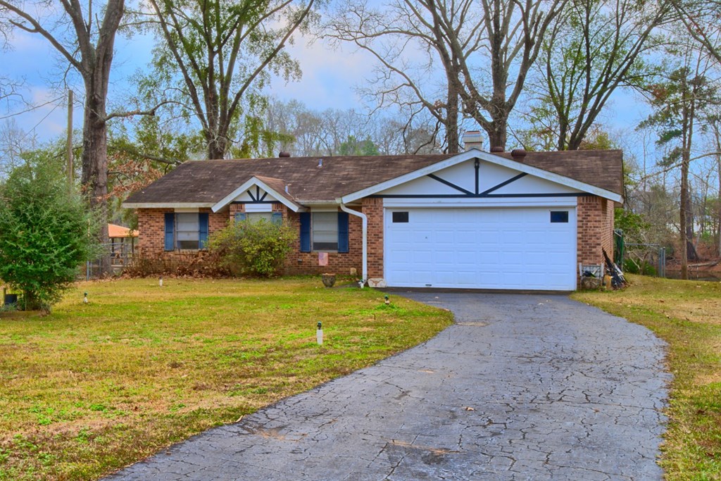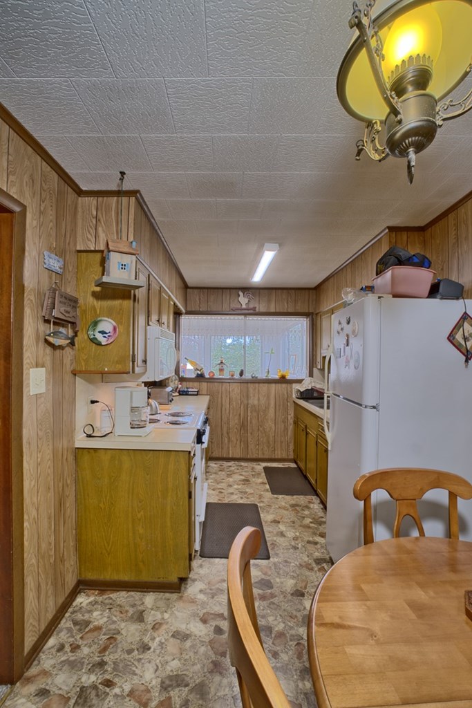 Three-bedroom, two-bath home featuring a vaulted ceiling and a cozy living room fireplace, plus a bright sunroom. The home offers an attached garage and asphalt driveway. Property includes a boathouse and a gently sloping lot leading to the water. Home is being sold fully furnished and as-is.