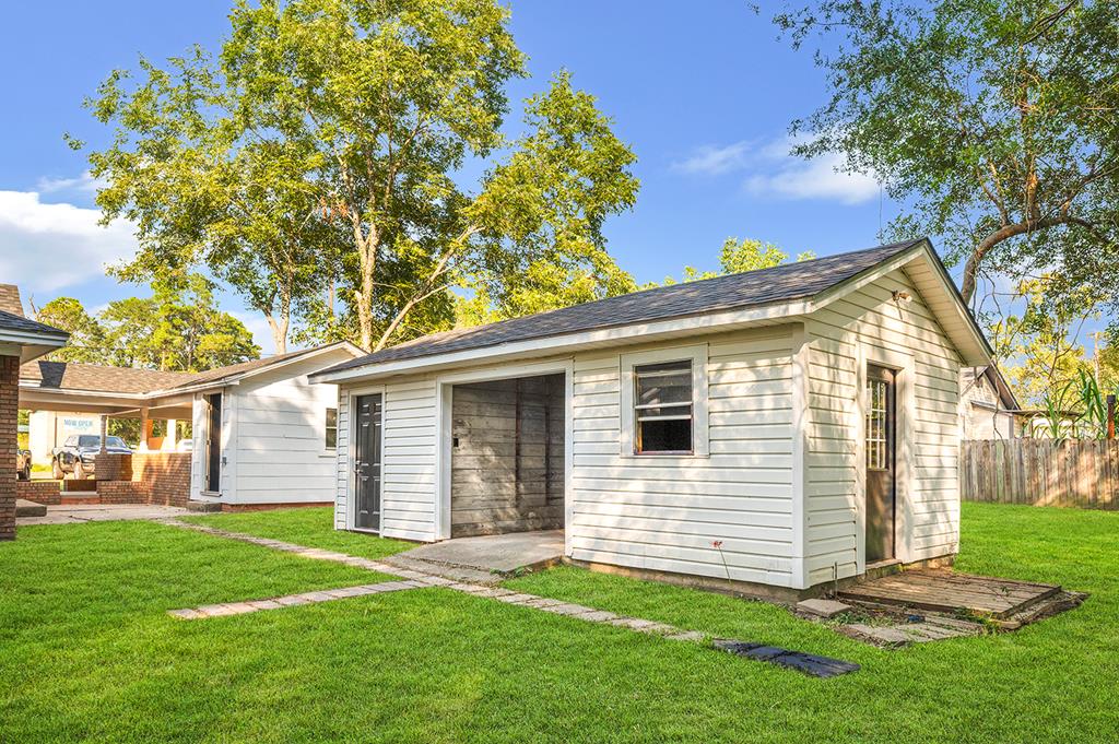 Charming and modernized 3 bedroom, 2 bath home just minutes from downtown Nacogdoches, offering 1,514 sq. ft. of living space with all the bells and whistles. The home features a brand-new roof, a new custom bathroom, new windows throughout, a cozy fireplace, a functional two-hallway layout, and a beautifully finished sunroom. The attic has been completely spray foamed for efficiency, and the property is equipped with natural gas. What truly makes this property stand out are the three sheds, all with electricity—two built on slabs that could easily be converted into guest houses and the third perfect for storage or a workshop. With four separate exits leading to the sides and back of the property, this home is as functional as it is inviting. This is a move-in ready home in a desirable location near the heart of Nacogdoches with unique features, modern updates, and more.