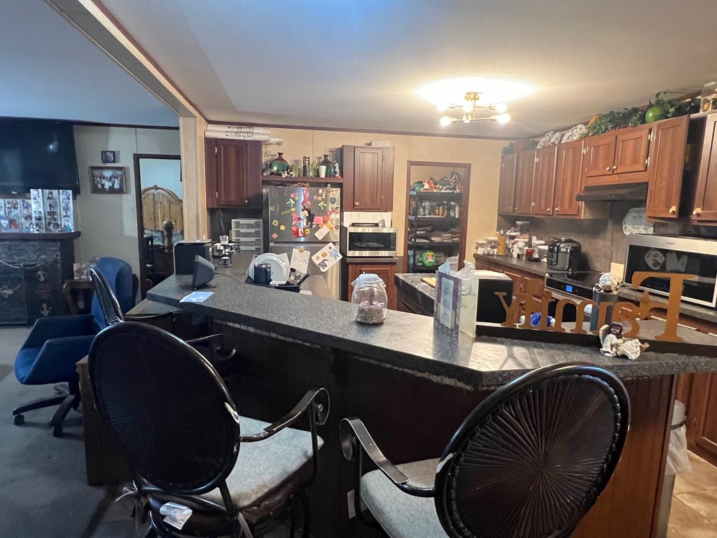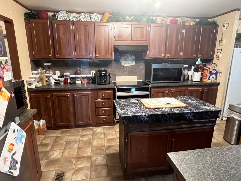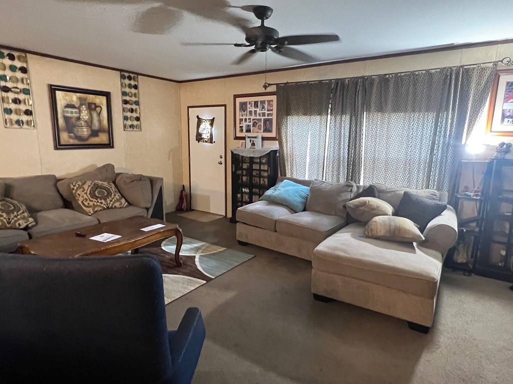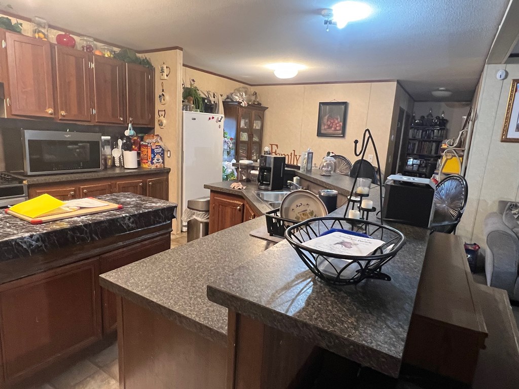 Just right for Retirement! Well kept manufactured home, 3/2, has kitchen island, breakfast bar and all kitchen appliances. Large living room, laundry room. Located at a dead-end road. Also has storage building and lots of yard space. Priced Right!