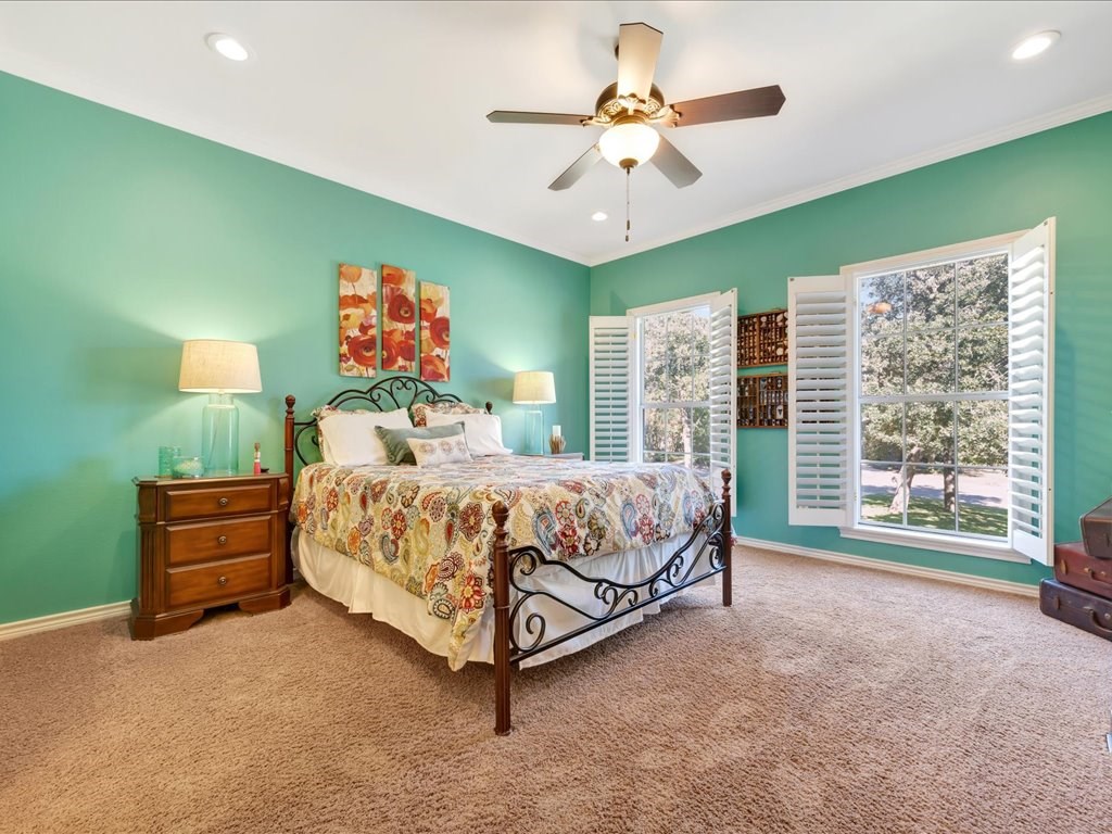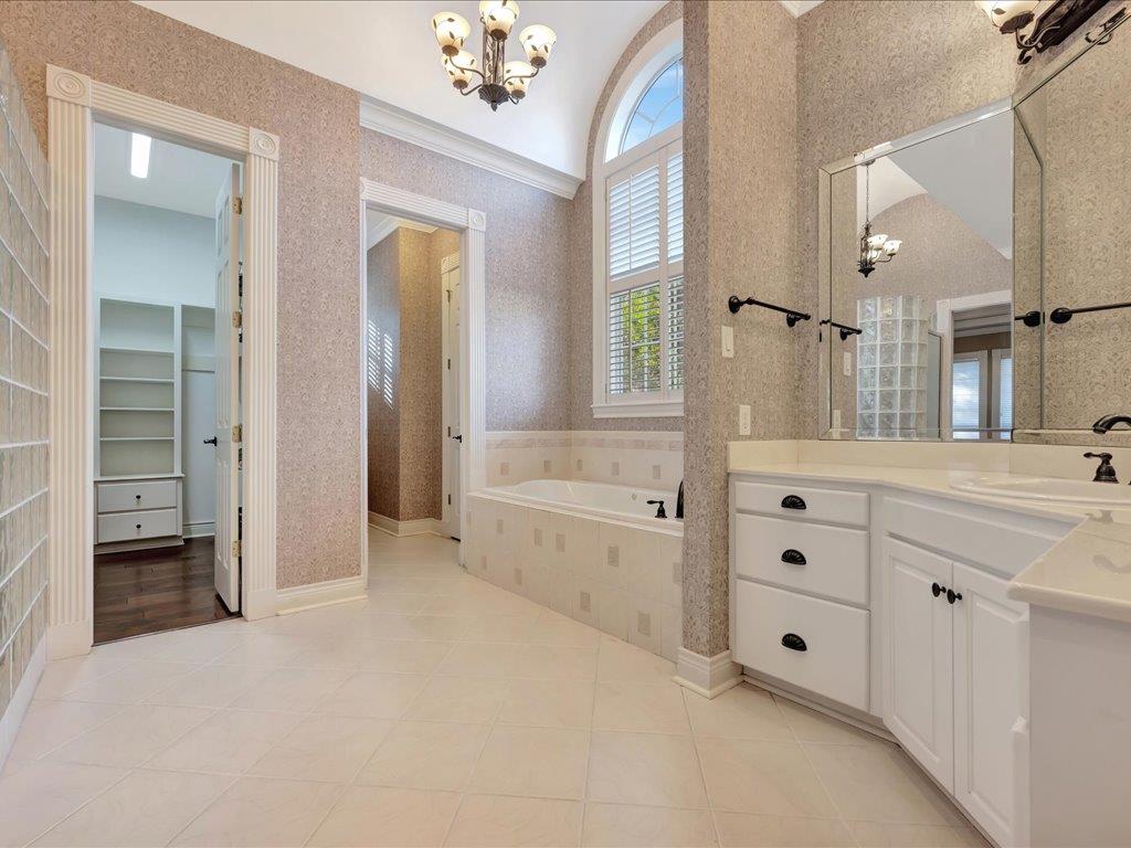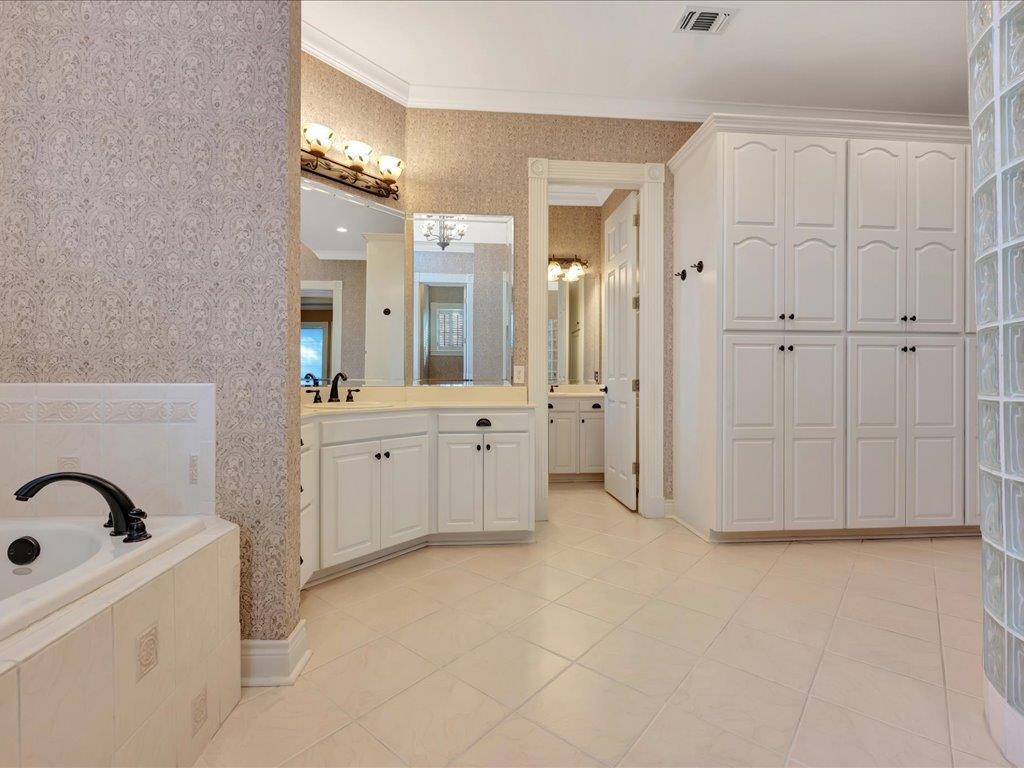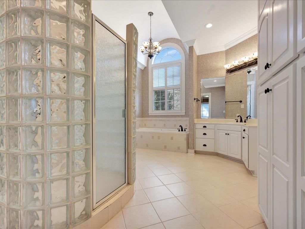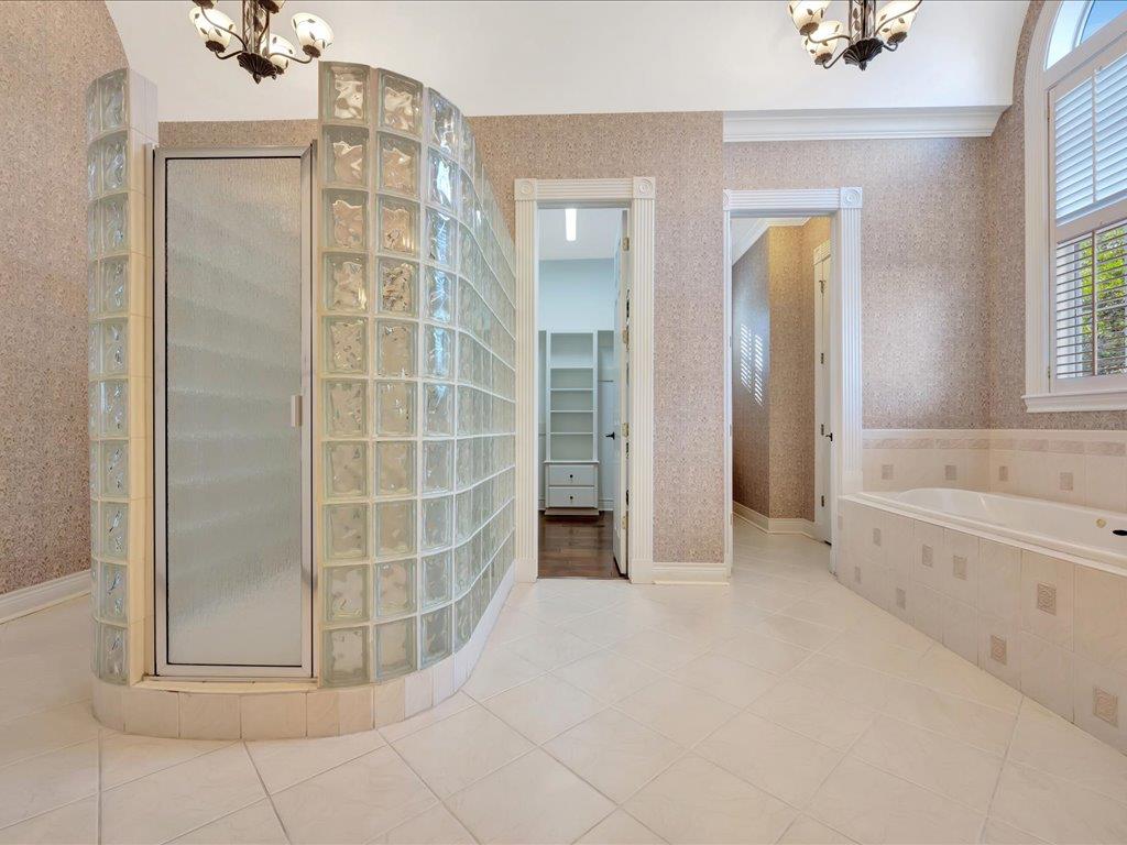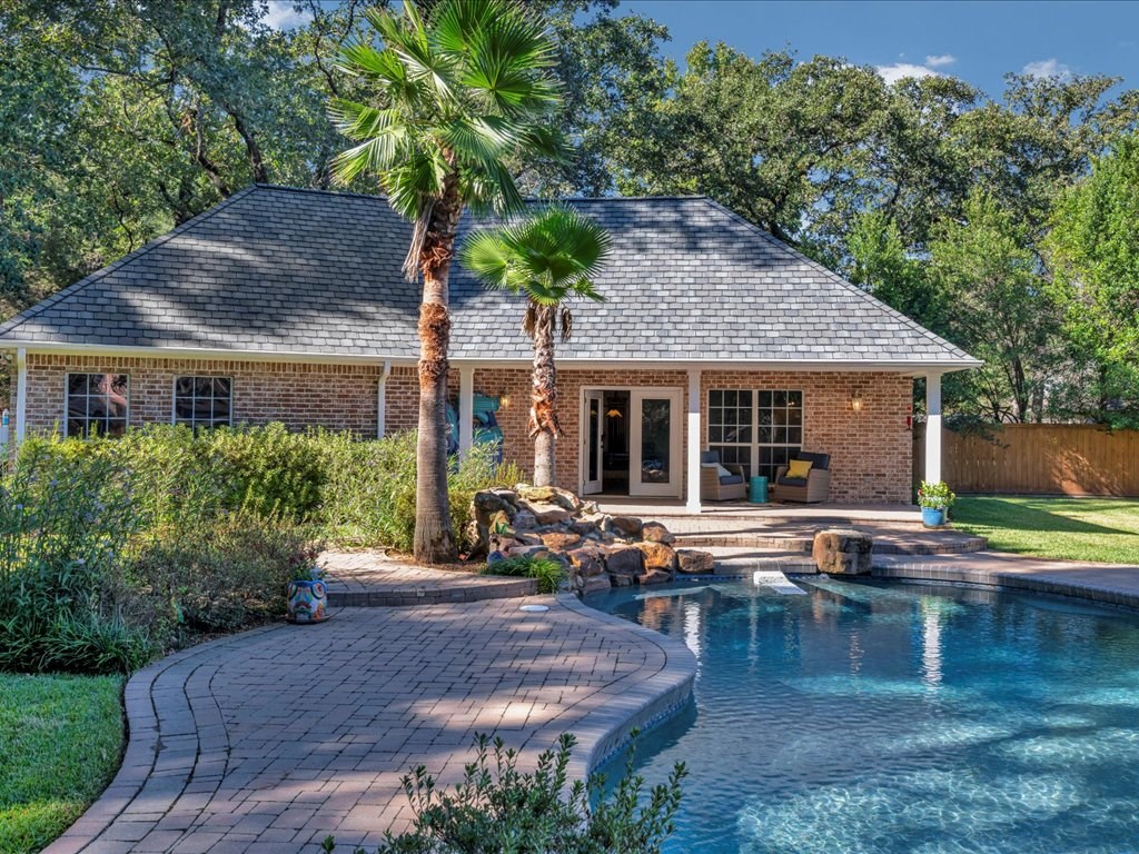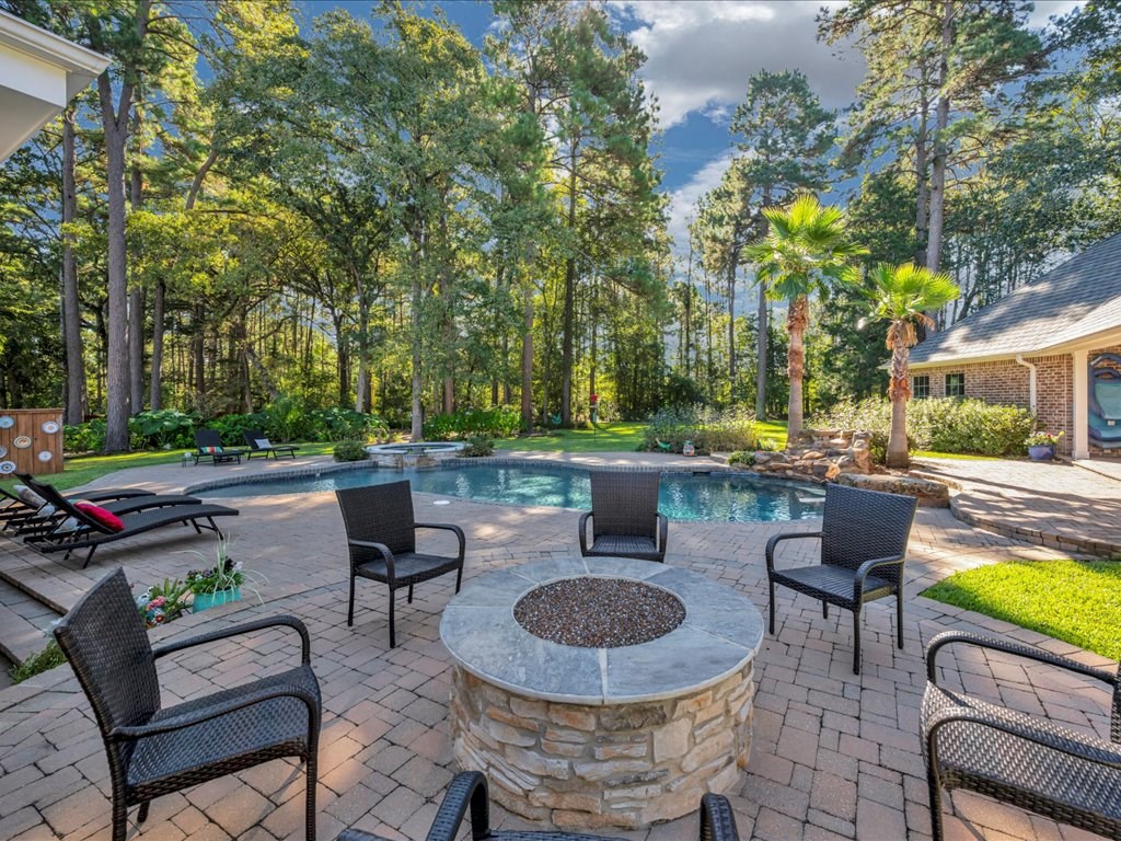 Set on a prestigious 1.7-acre parcel in the coveted Waterford Park subdivision, this 1999-built two-story estate exudes timeless elegance and modern refinement. Spanning 4,258 square feet, the home offers 4 bedrooms and 3.5 baths in a sophisticated, thoughtfully designed layout. Elevated ceilings, crown moldings, and a first floor primary suite create a bright, airy atmosphere, while the exterior's gorgeous styling and circular drive convey a sense of arrival worthy of a luxury residence. The backyard is a true entertainer's paradise, seamlessly blending indoor and outdoor living. A deep, covered patio, heated and cooled for year-round use, opens to a Pebble Tec pool with a hot tub and a gas firepit—perfect for alfresco gatherings and quiet evening ambiance. The pool house features a kitchenette, a three-piece bathroom, and a dedicated office, providing versatile space for guests, a home gym, or a private work area. The roof was recently replaced with a 50 year shingle.