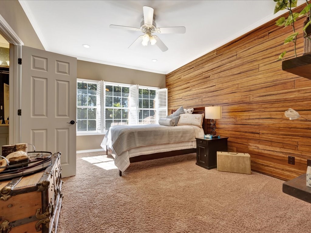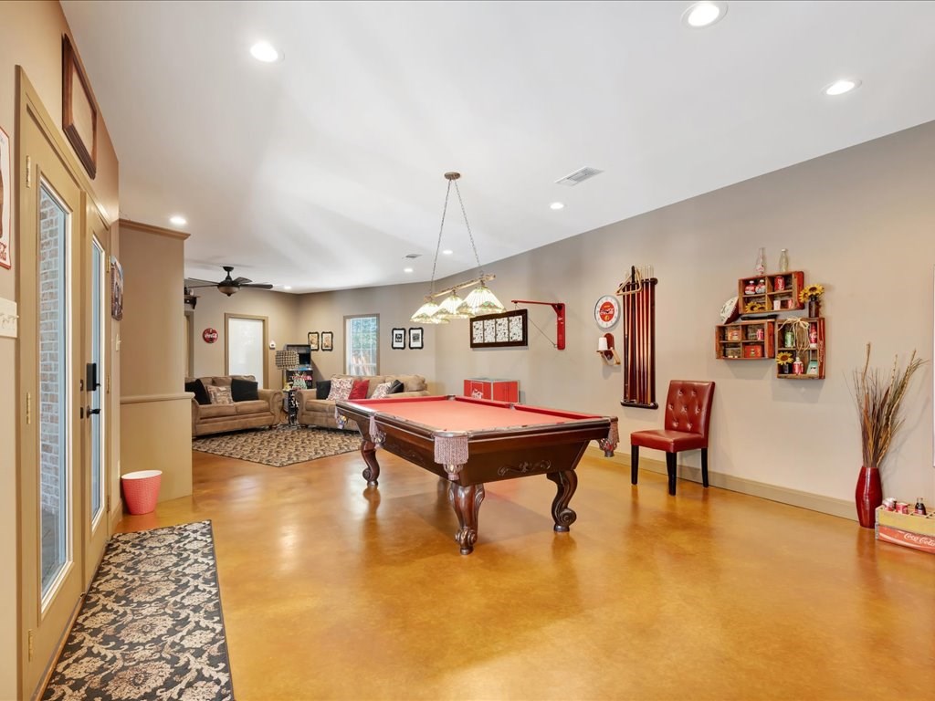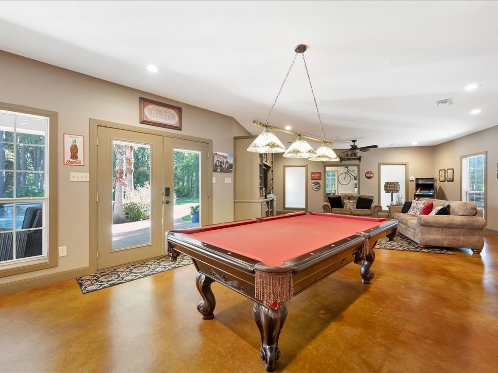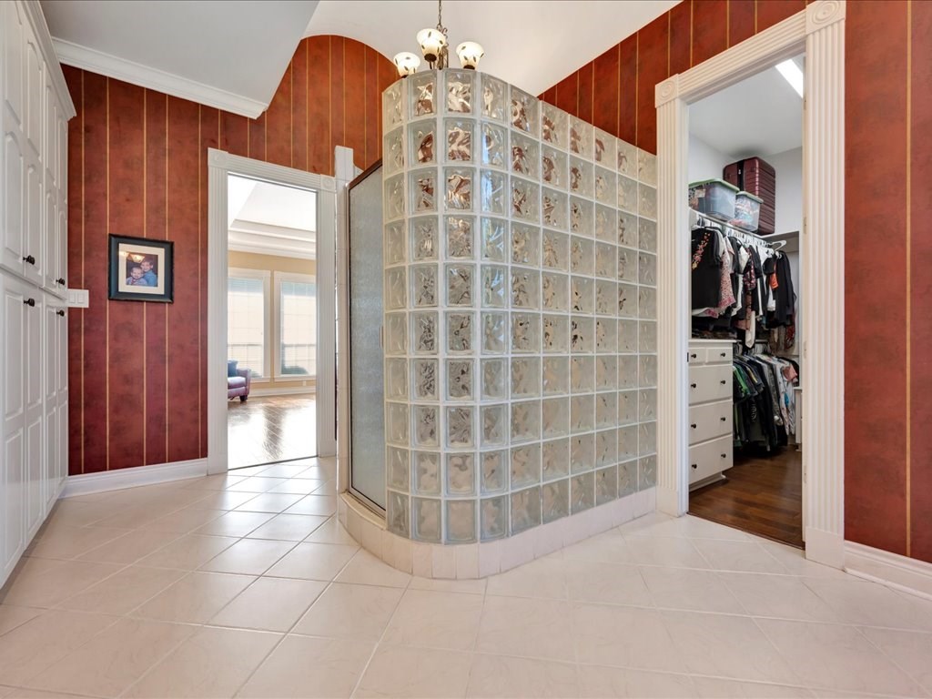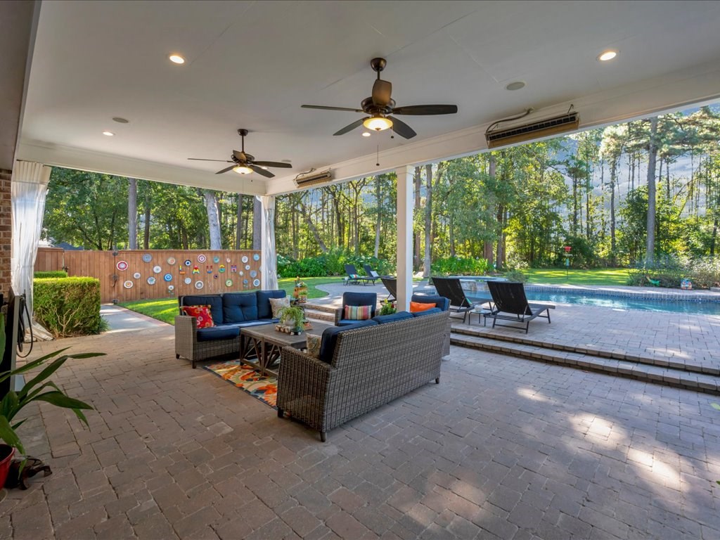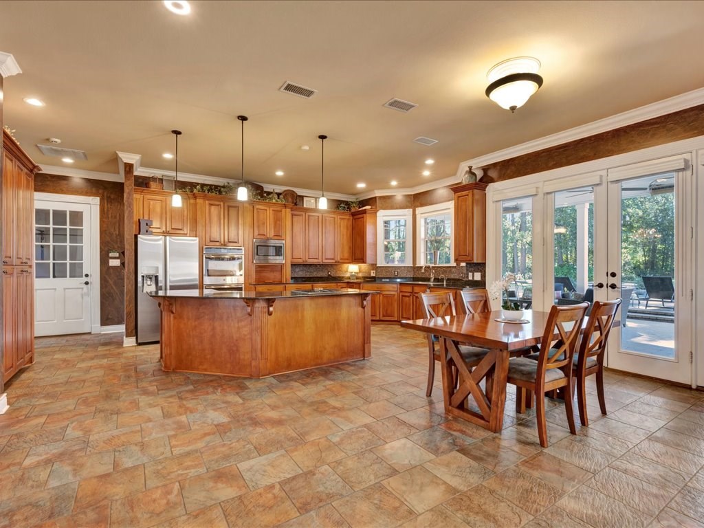 Set on a prestigious 1.7-acre parcel in the coveted Waterford Park subdivision, this 1999-built two-story estate exudes timeless elegance and modern refinement. Spanning 4,258 square feet, the home offers 4 bedrooms and 3.5 baths in a sophisticated, thoughtfully designed layout. Elevated ceilings, crown moldings, and a first floor primary suite create a bright, airy atmosphere, while the exterior's gorgeous styling and circular drive convey a sense of arrival worthy of a luxury residence. The backyard is a true entertainer's paradise, seamlessly blending indoor and outdoor living. A deep, covered patio, heated and cooled for year-round use, opens to a Pebble Tec pool with a hot tub and a gas firepit—perfect for alfresco gatherings and quiet evening ambiance. The pool house features a kitchenette, a three-piece bathroom, and a dedicated office, providing versatile space for guests, a home gym, or a private work area. The roof was recently replaced with a 50 year shingle.