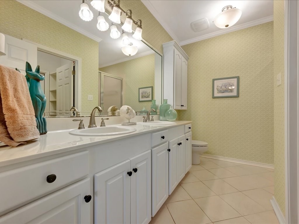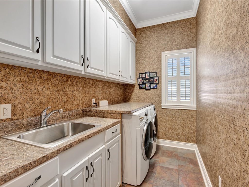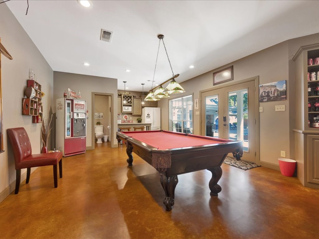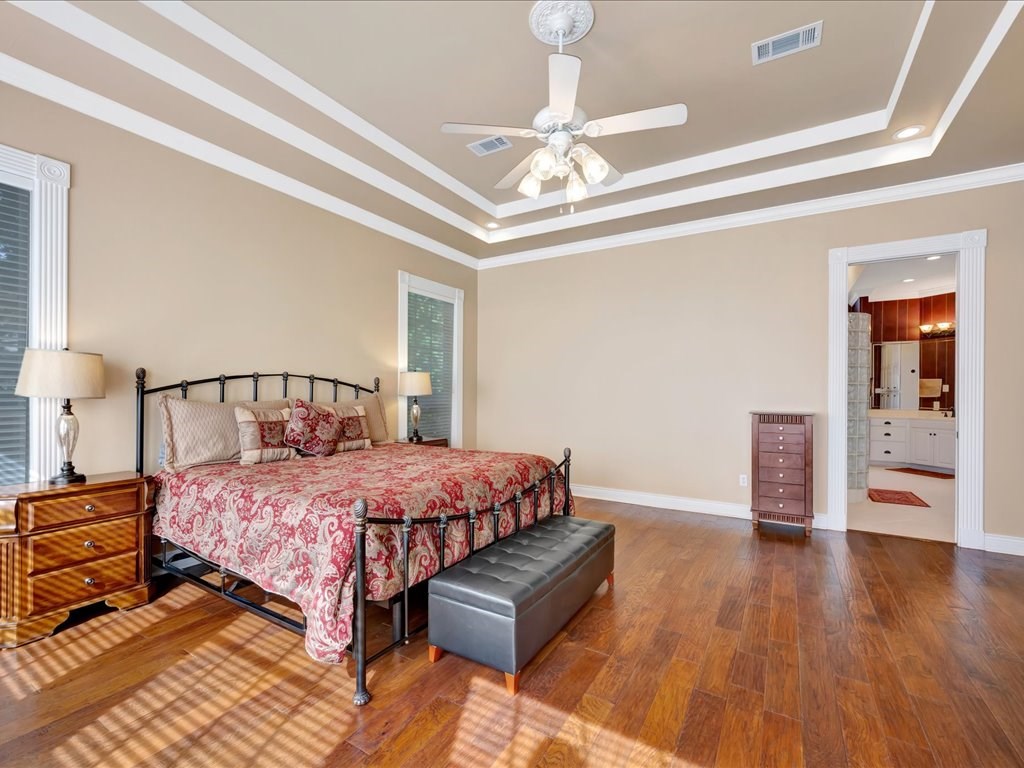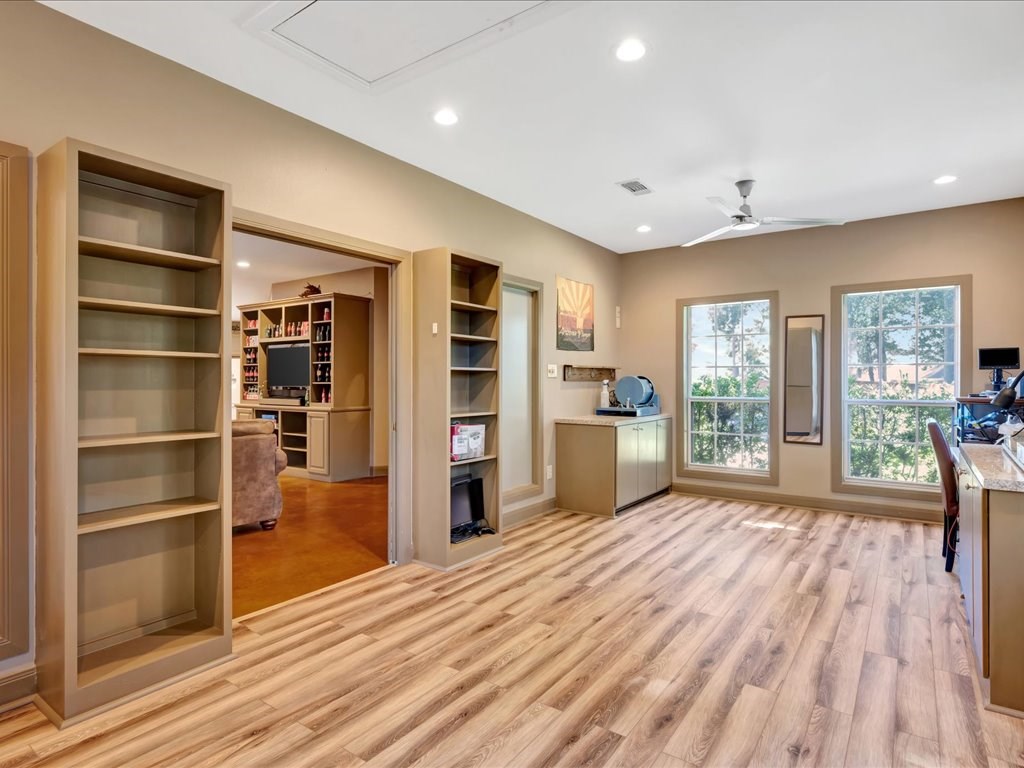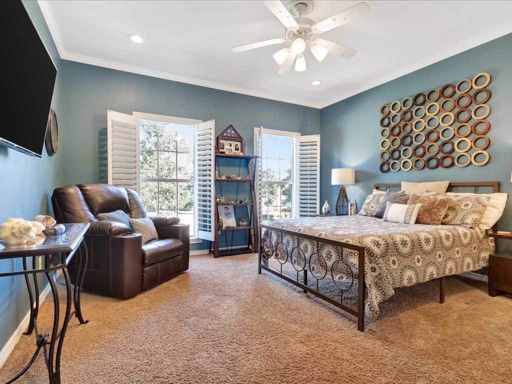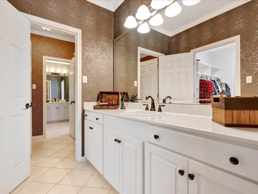 Set on a prestigious 1.7-acre parcel in the coveted Waterford Park subdivision, this 1999-built two-story estate exudes timeless elegance and modern refinement. Spanning 4,258 square feet, the home offers 4 bedrooms and 3.5 baths in a sophisticated, thoughtfully designed layout. Elevated ceilings, crown moldings, and a first floor primary suite create a bright, airy atmosphere, while the exterior's gorgeous styling and circular drive convey a sense of arrival worthy of a luxury residence. The backyard is a true entertainer's paradise, seamlessly blending indoor and outdoor living. A deep, covered patio, heated and cooled for year-round use, opens to a Pebble Tec pool with a hot tub and a gas firepit—perfect for alfresco gatherings and quiet evening ambiance. The pool house features a kitchenette, a three-piece bathroom, and a dedicated office, providing versatile space for guests, a home gym, or a private work area. The roof was recently replaced with a 50 year shingle.