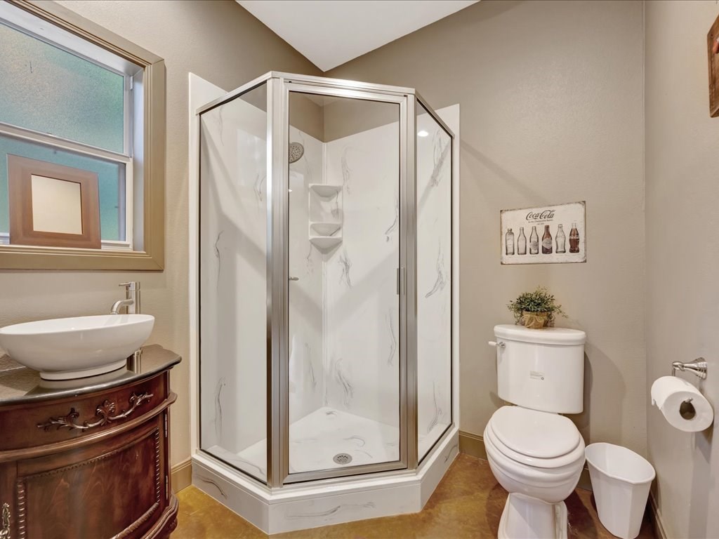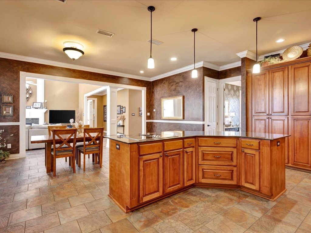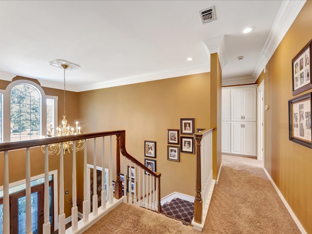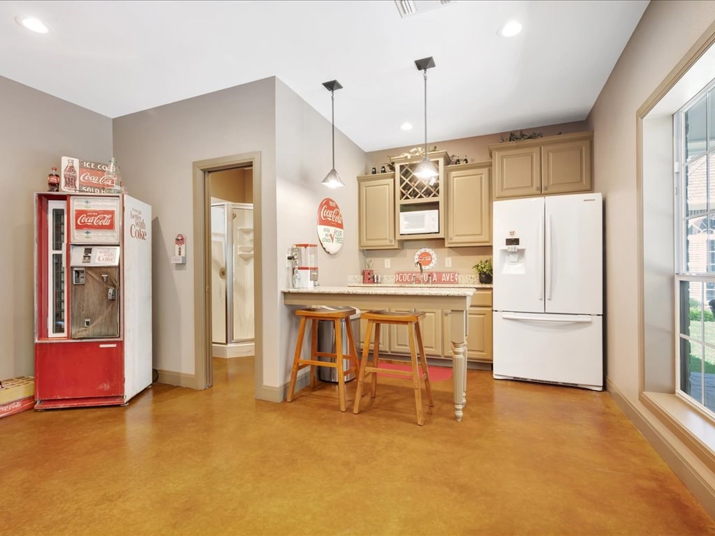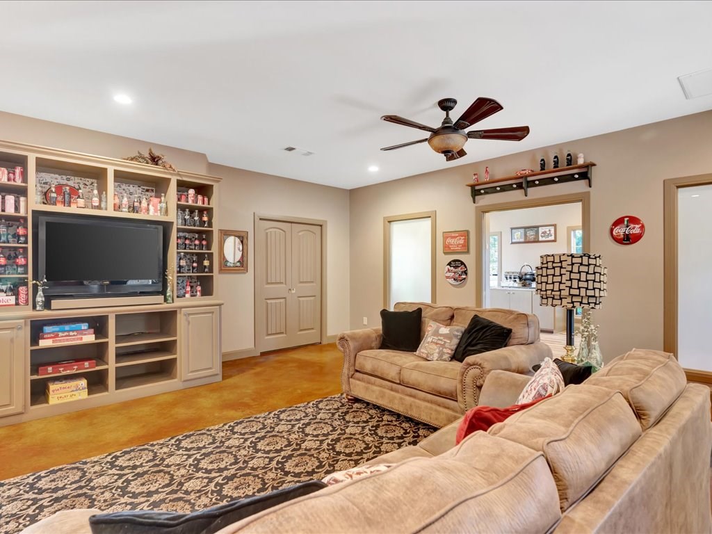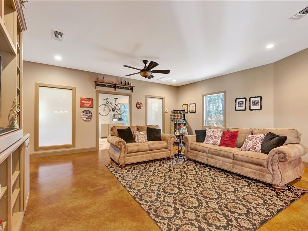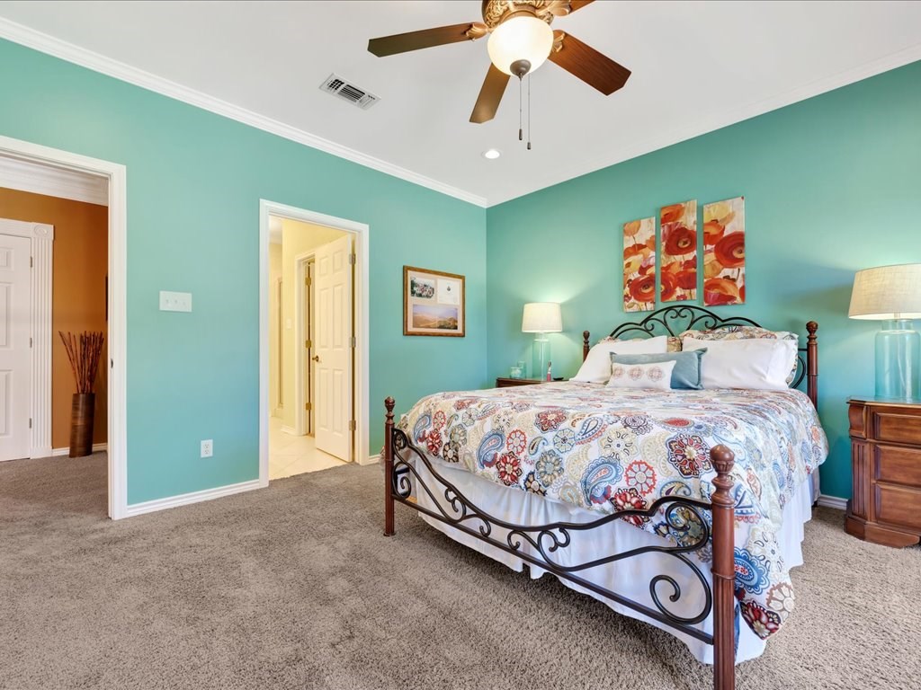 Set on a prestigious 1.7-acre parcel in the coveted Waterford Park subdivision, this 1999-built two-story estate exudes timeless elegance and modern refinement. Spanning 4,258 square feet, the home offers 4 bedrooms and 3.5 baths in a sophisticated, thoughtfully designed layout. Elevated ceilings, crown moldings, and a first floor primary suite create a bright, airy atmosphere, while the exterior's gorgeous styling and circular drive convey a sense of arrival worthy of a luxury residence. The backyard is a true entertainer's paradise, seamlessly blending indoor and outdoor living. A deep, covered patio, heated and cooled for year-round use, opens to a Pebble Tec pool with a hot tub and a gas firepit—perfect for alfresco gatherings and quiet evening ambiance. The pool house features a kitchenette, a three-piece bathroom, and a dedicated office, providing versatile space for guests, a home gym, or a private work area. The roof was recently replaced with a 50 year shingle.