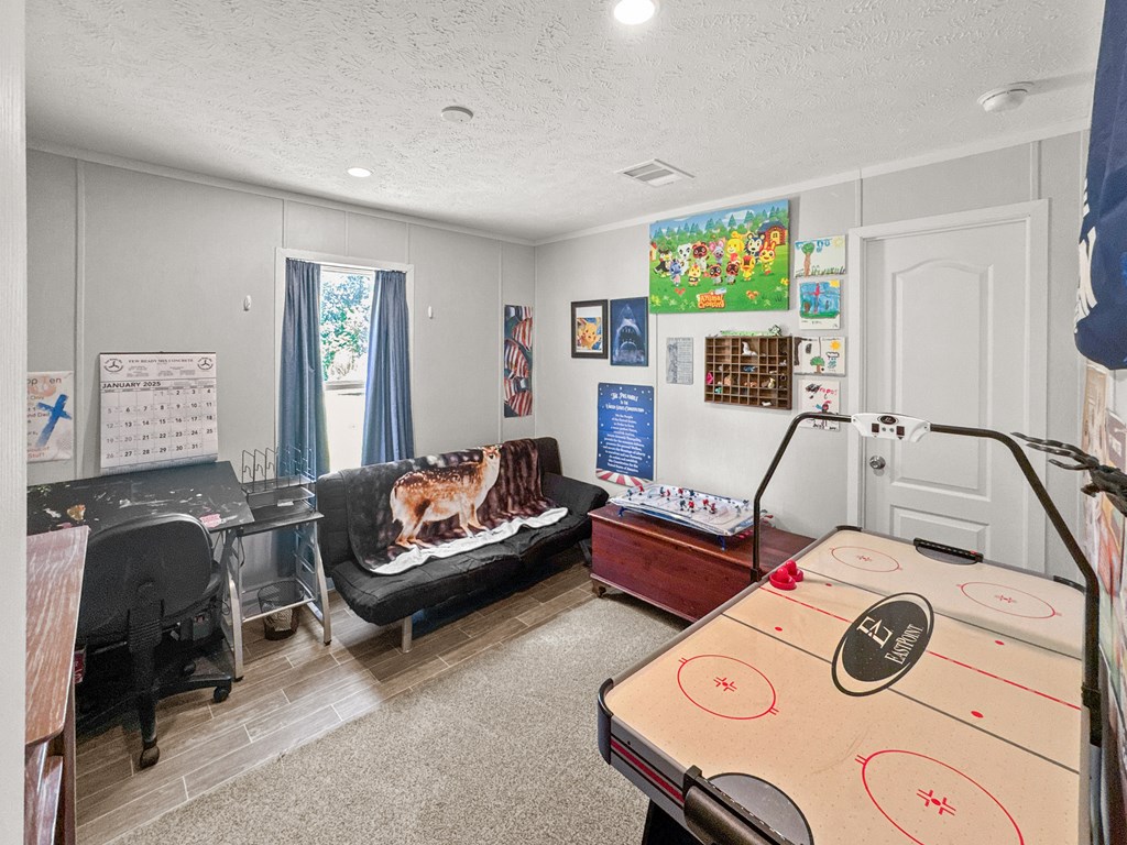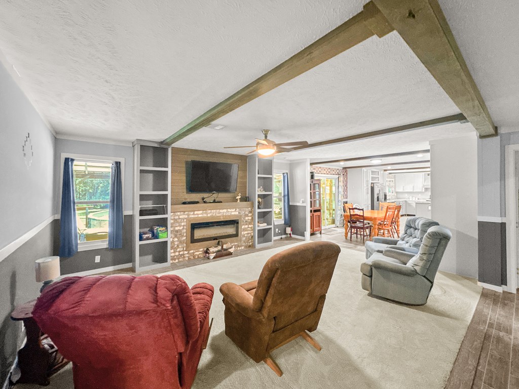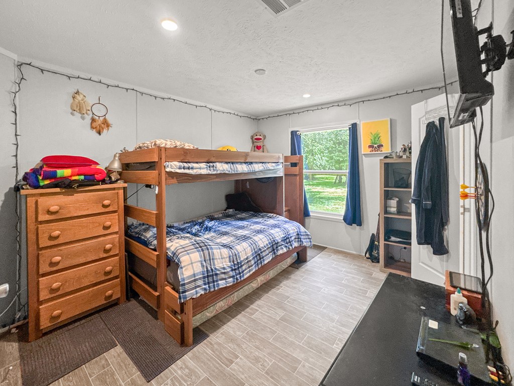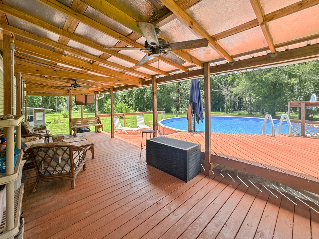 Escape to the country! Everything you need and more. Pristine 4 Bed, 3 Bath 32'x76' home on 5 acres. Home is less than 5 years old built in 2021 with enormous 30x50 shop includes electric, walk in and bay doors ready for your RV with 30 and 50 amp hook ups and a separate septic! Insulated and enclosed 24x24 converted garage with water/electric hook up and window unit perfect for a man cave or for extra parking. Attached double carport for even more coverage and parking space! Above ground 27' pool with covered pump house, vinyl liner, and 300# sand filter. Stocked pond, fenced back yard, gated front entry way and solar Ring security system. The inside boasts of an electric fireplace, two living spaces, beautiful brick facade bar, and luxury shower in primary bath. Patio doors open to private oasis which include covered deck and pool. There is even a greenhouse for all your gardening needs. This home truly has everything! Option to purchase additional land may be available!!